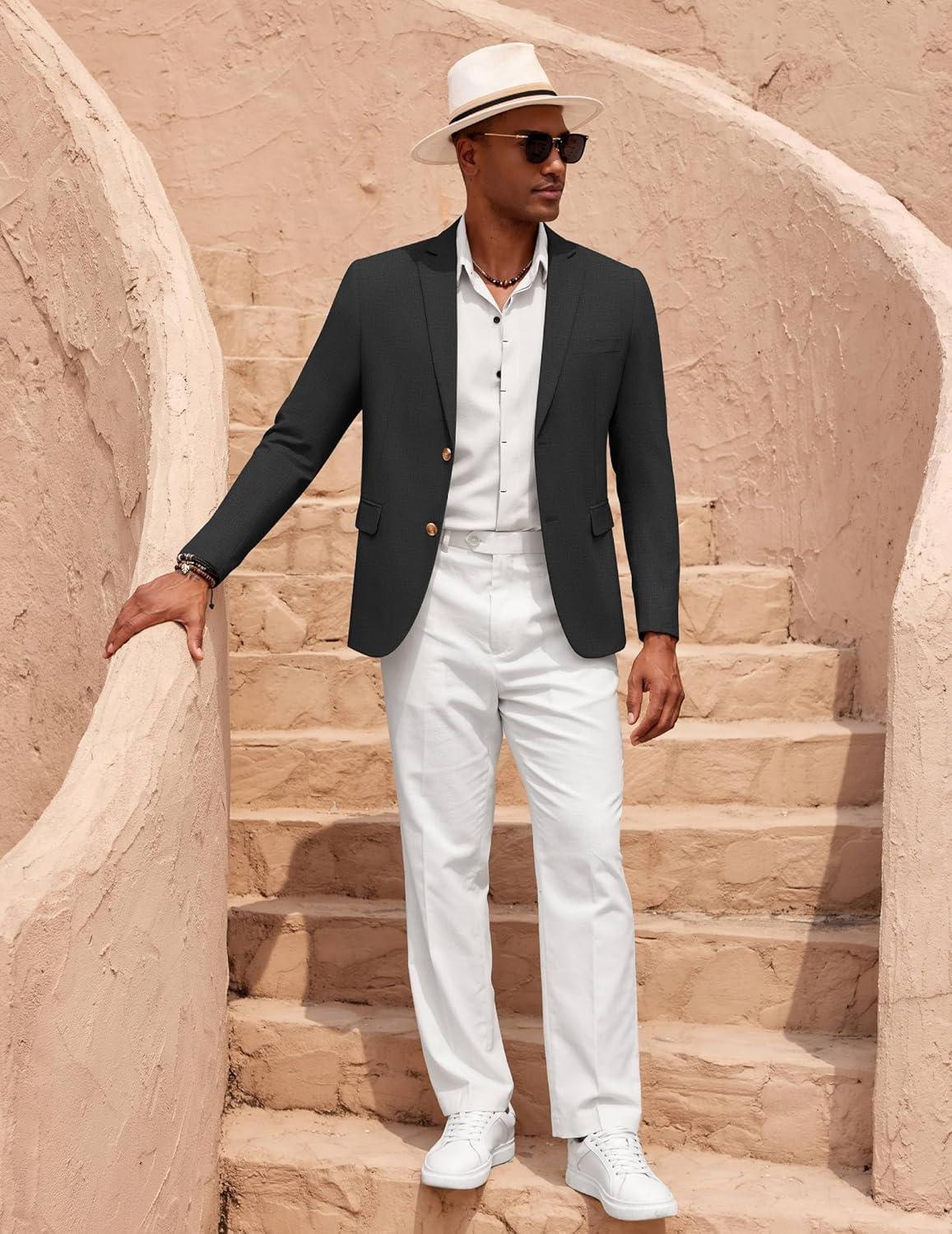 COOFANDY Mens Casual Cotton Linen Blazer Lightweight Linen Sport Coat Two Button Suit Jacket(Dark Grey)