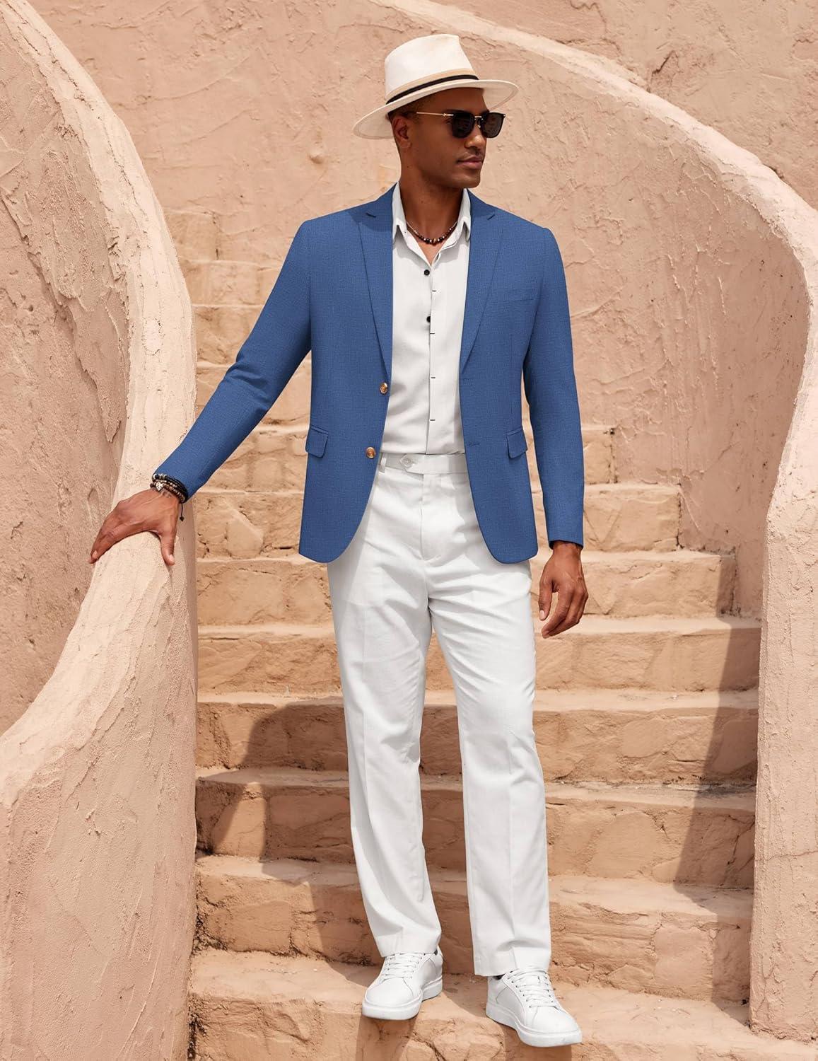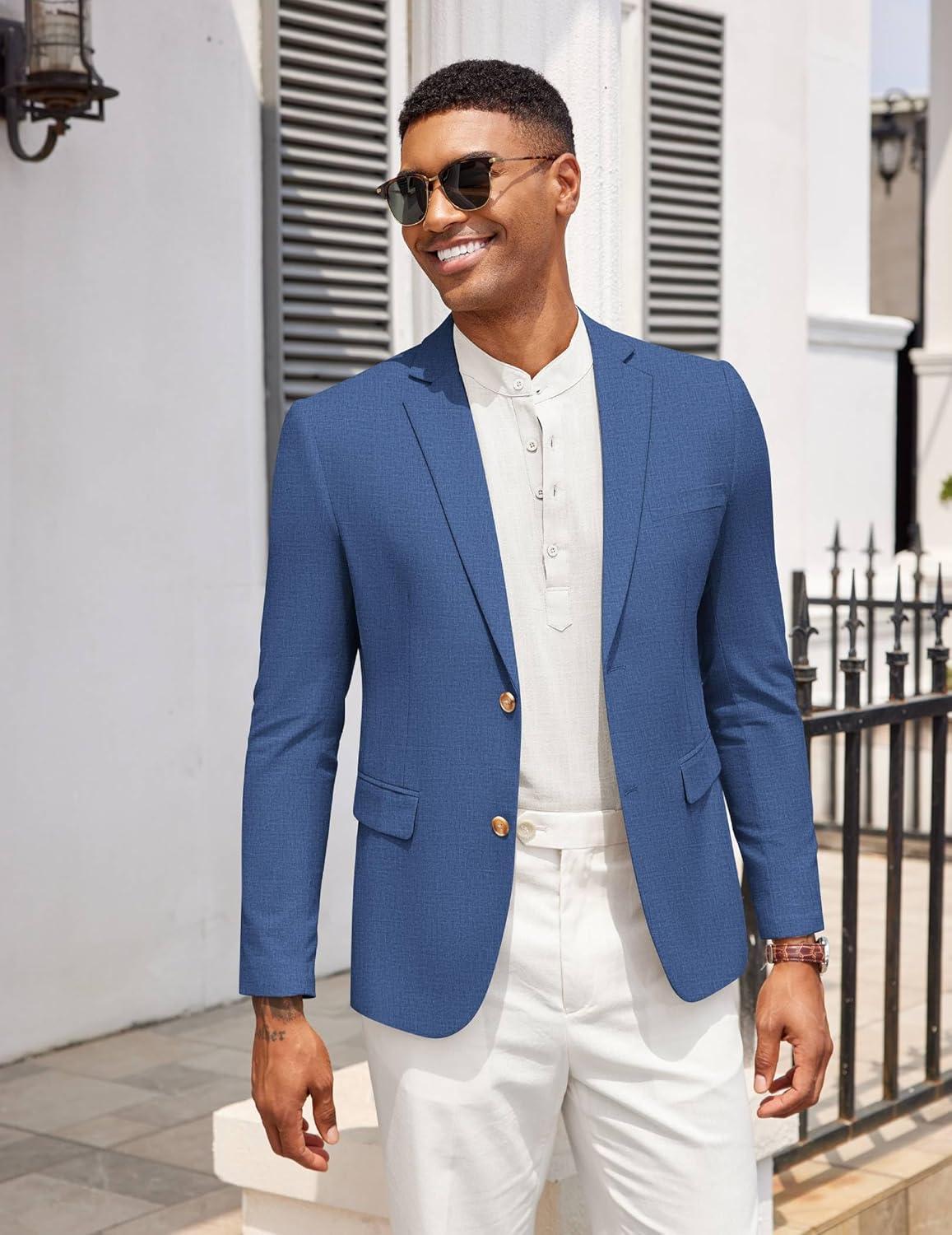 COOFANDY Mens Casual Cotton Linen Blazer Lightweight Linen Sport Coat Two Button Suit Jacket(Blue)