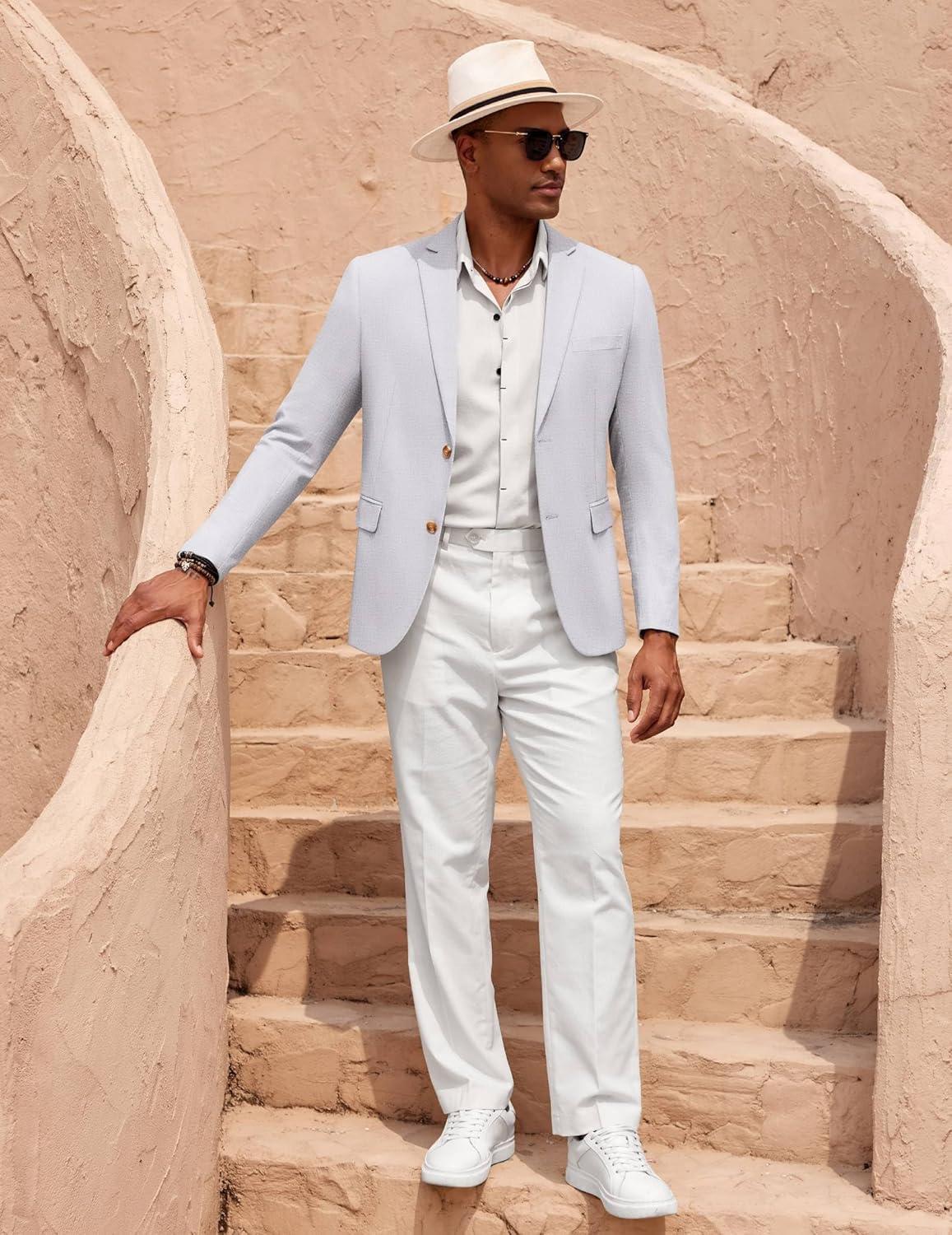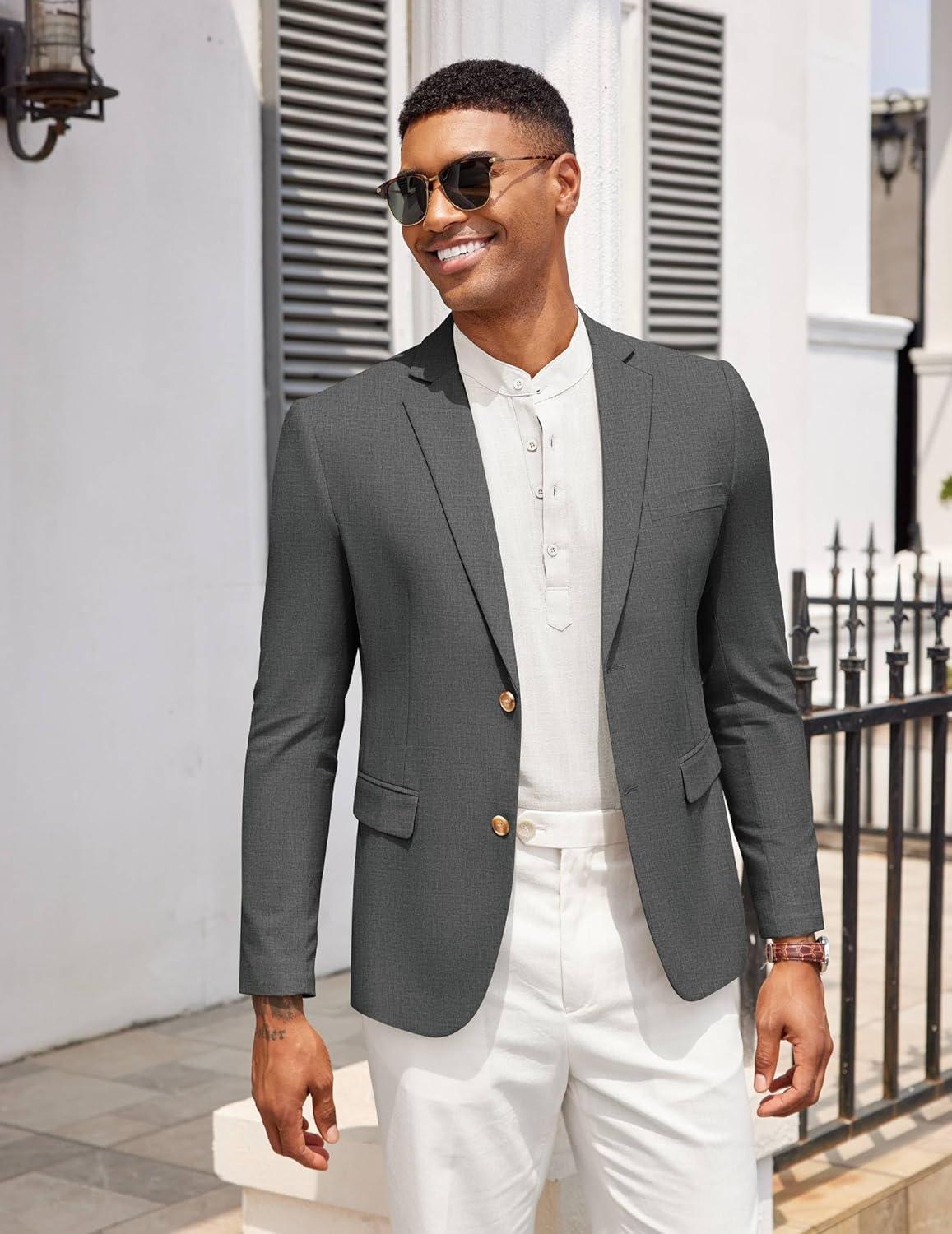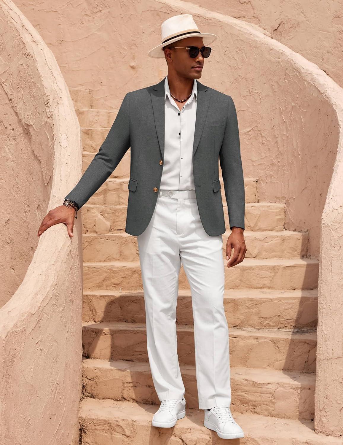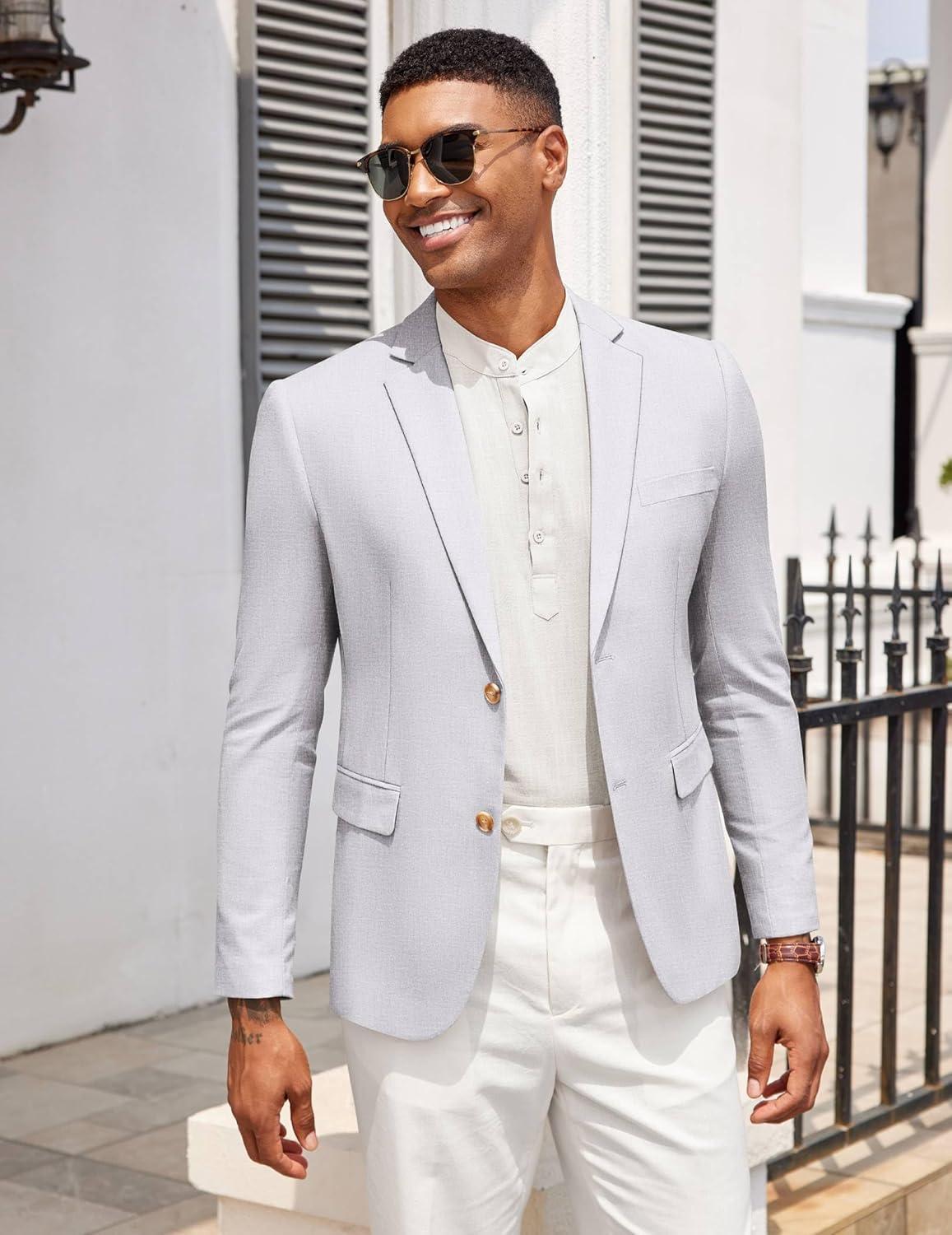 COOFANDY Mens Casual Cotton Linen Blazer Lightweight Linen Sport Coat Two Button Suit Jacket(Light Grey)