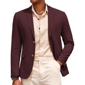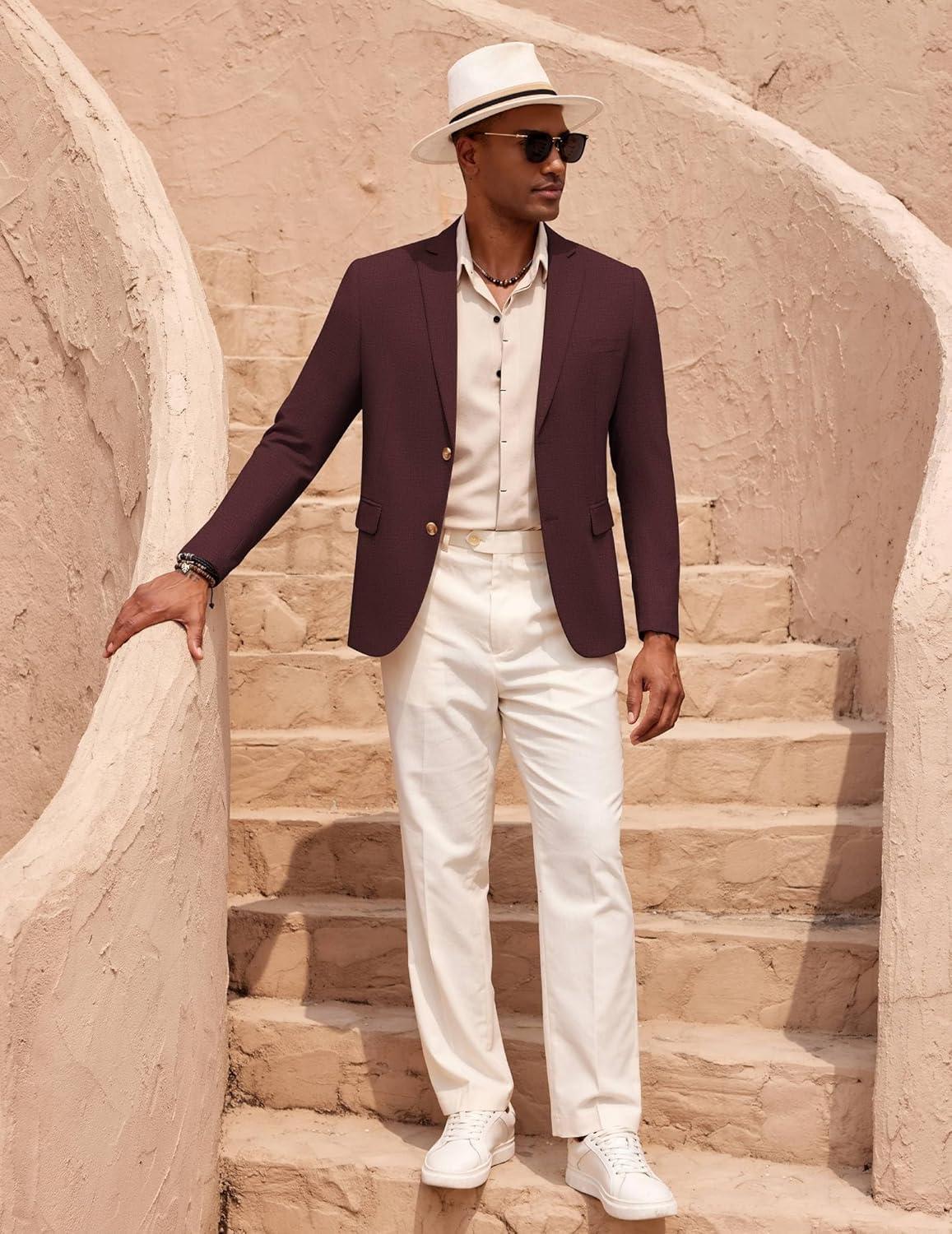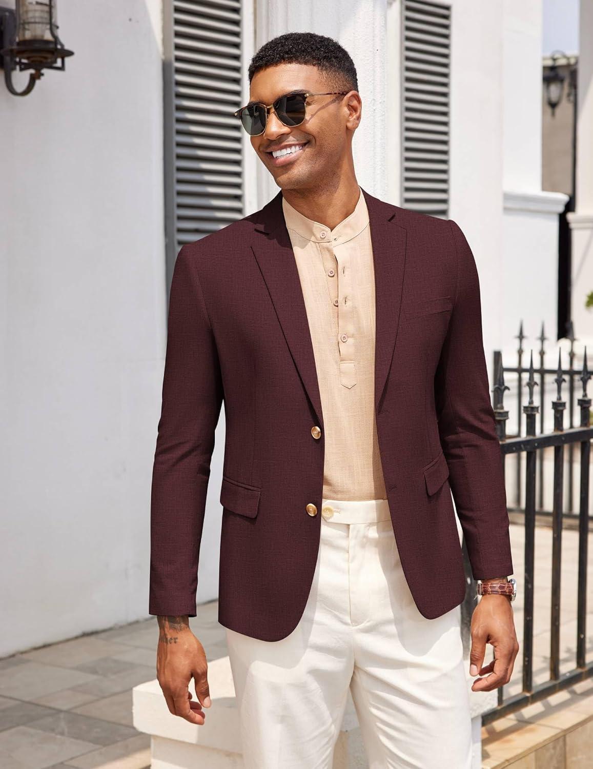 COOFANDY Mens Casual Cotton Linen Blazer Lightweight Linen Sport Coat Two Button Suit Jacket(Dark Red)