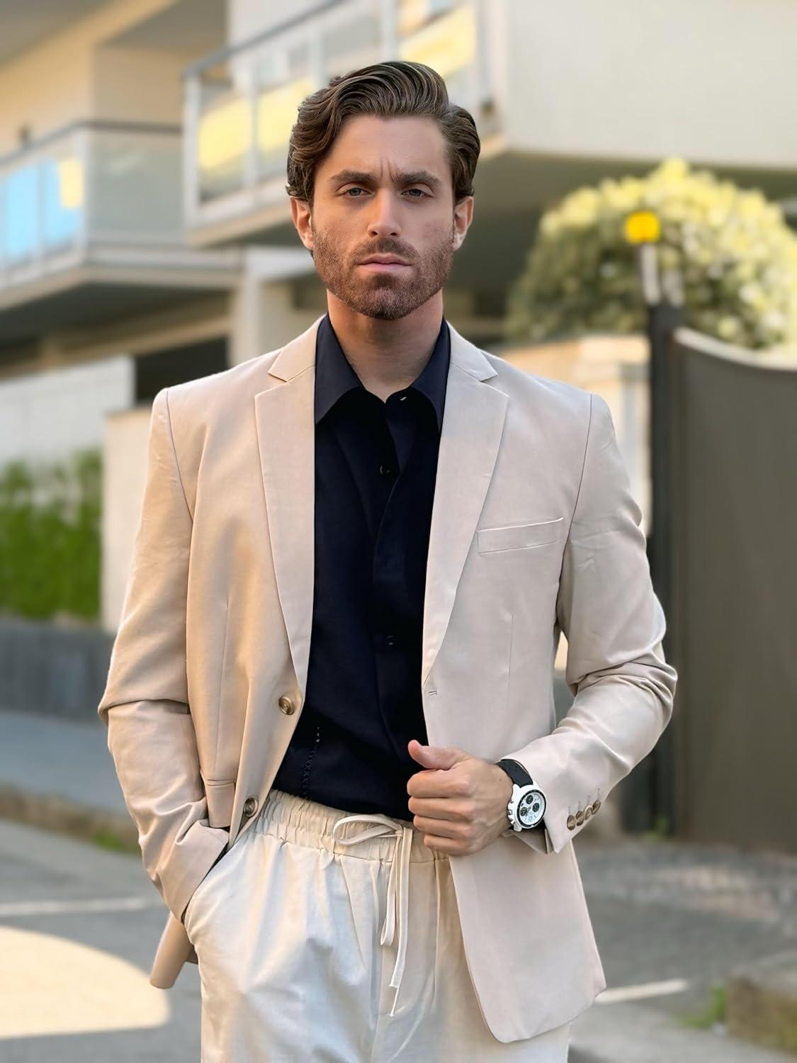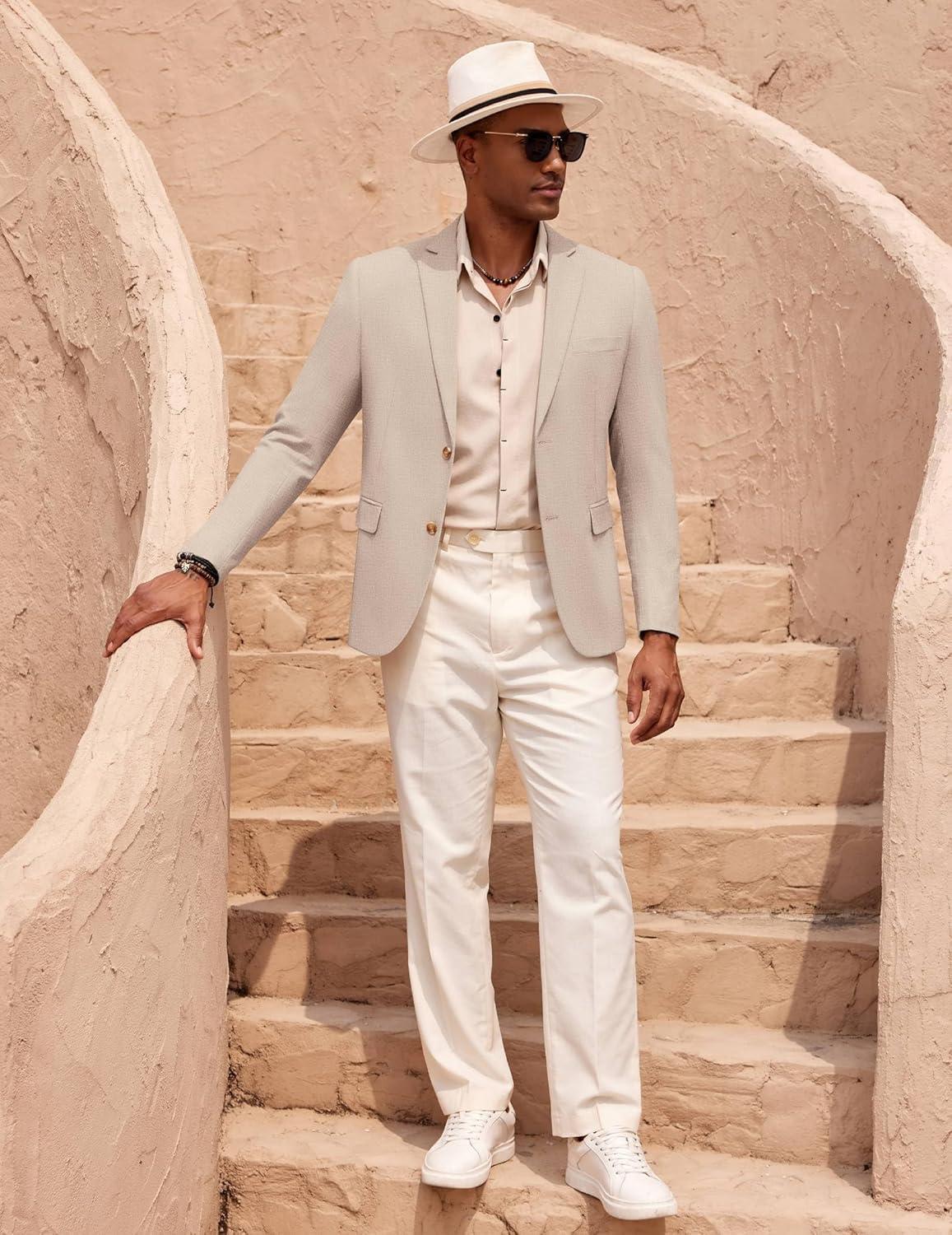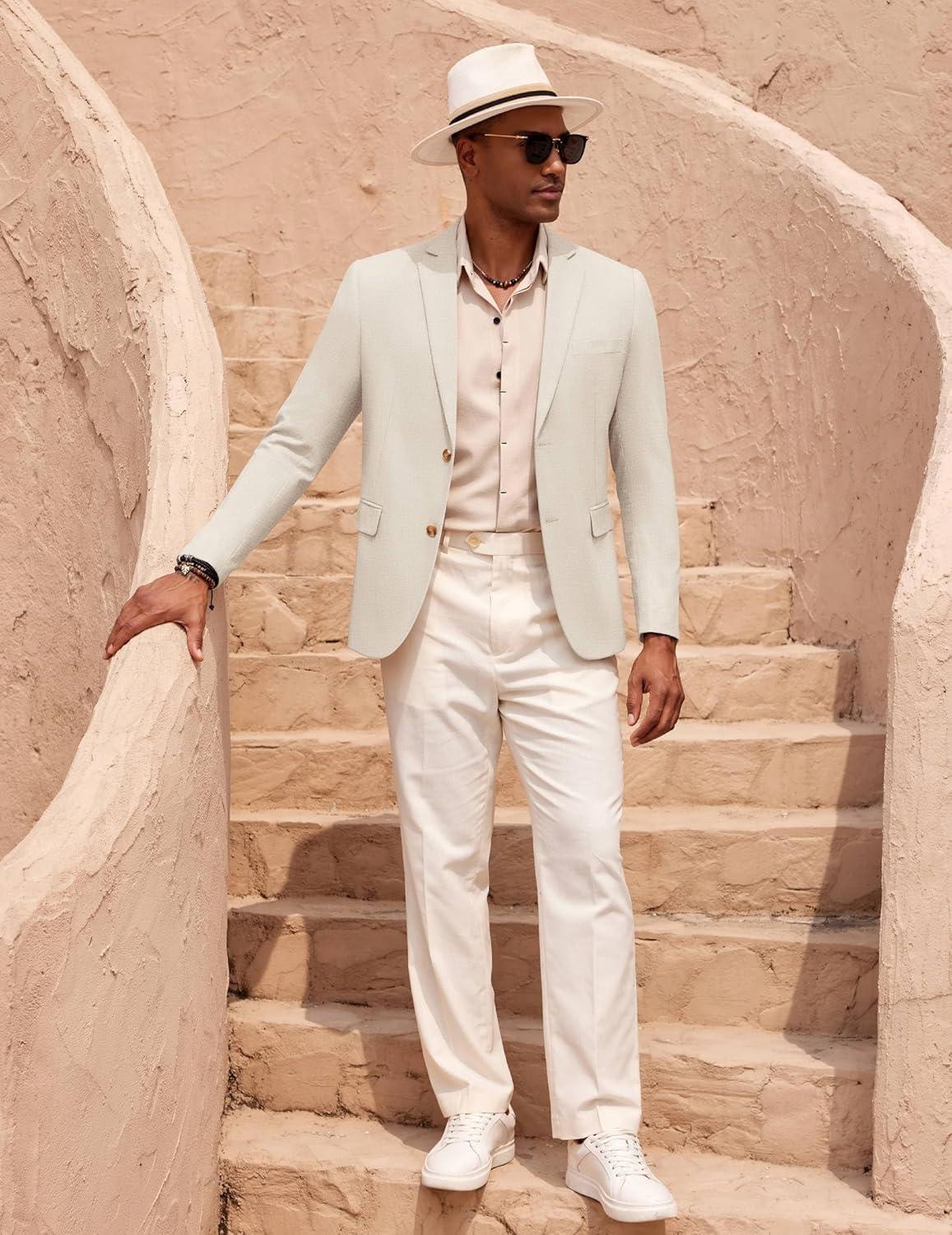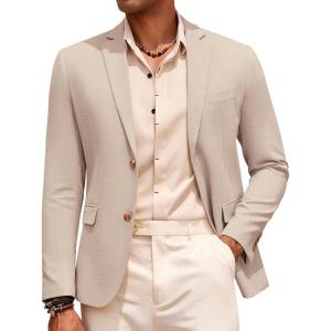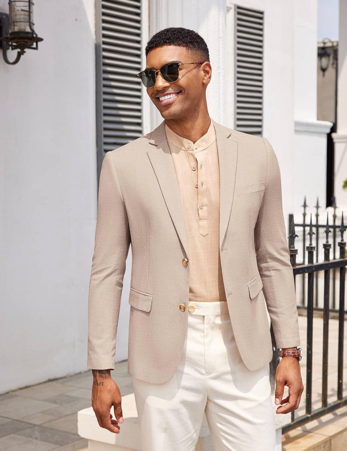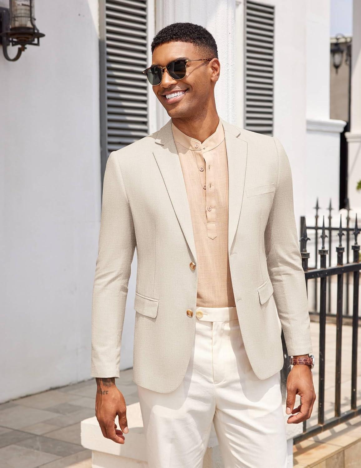 COOFANDY Mens Casual Cotton Linen Blazer Lightweight Linen Sport Coat Two Button Suit Jacket(Beige)