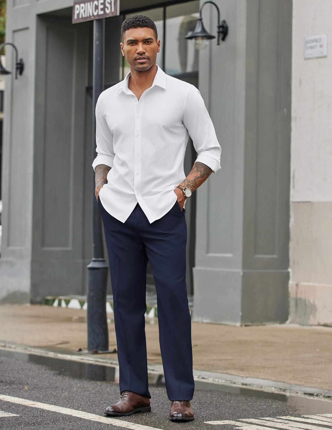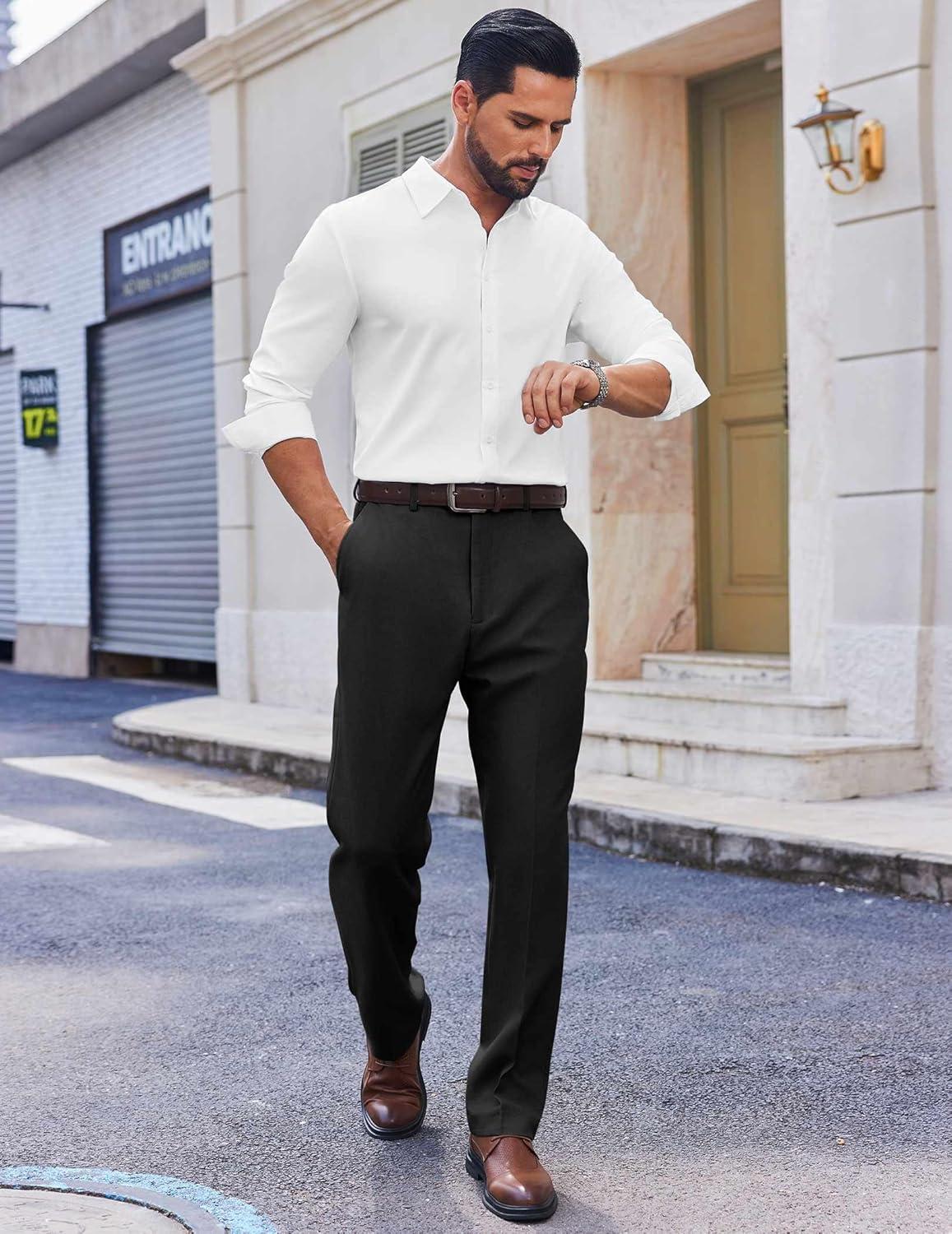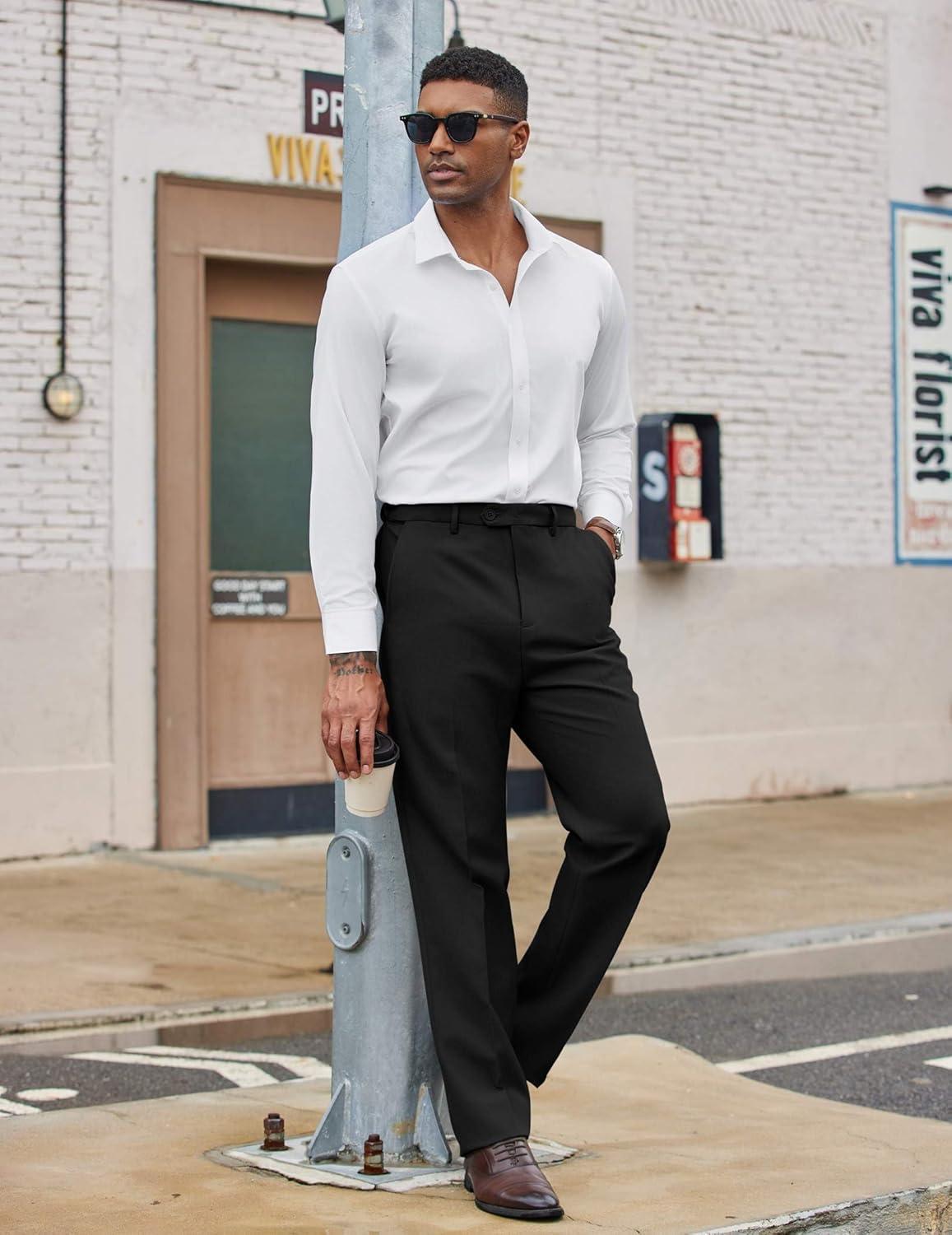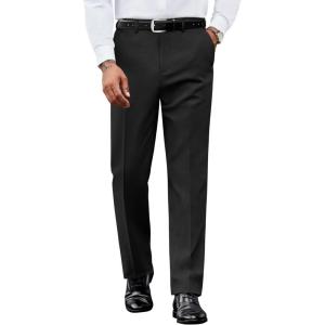 COOFANDY Mens Dress Pants Regular Fit Flat Front Pant Expandable Waist Casual Slacks(Black)