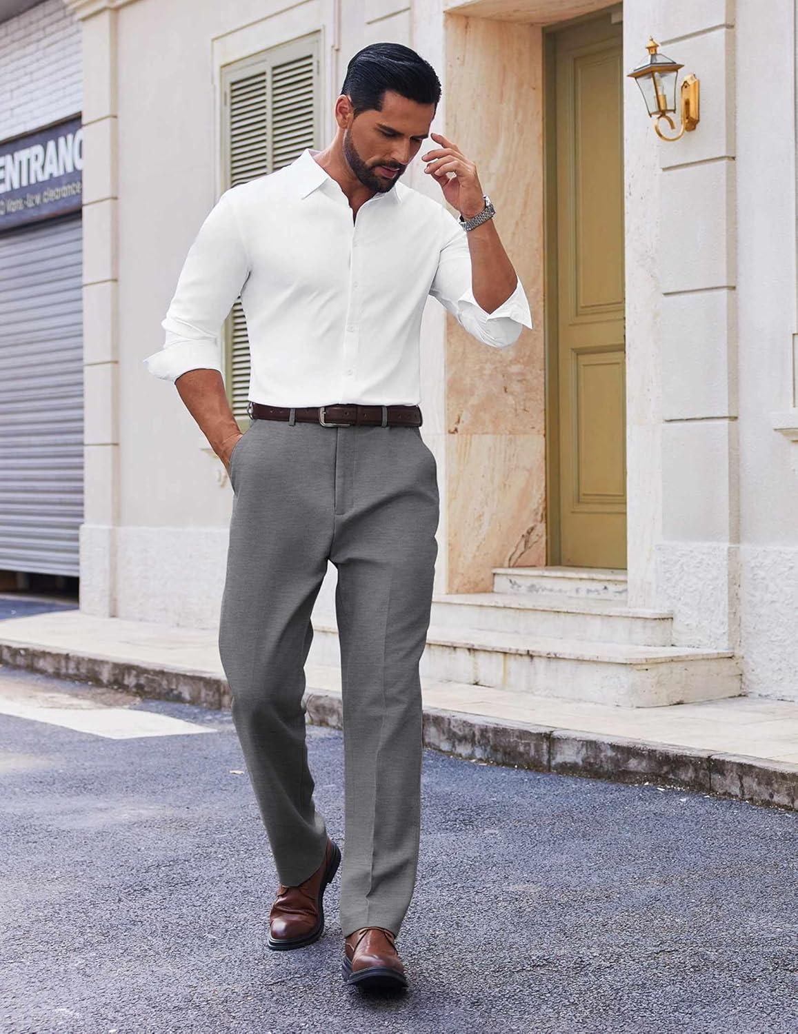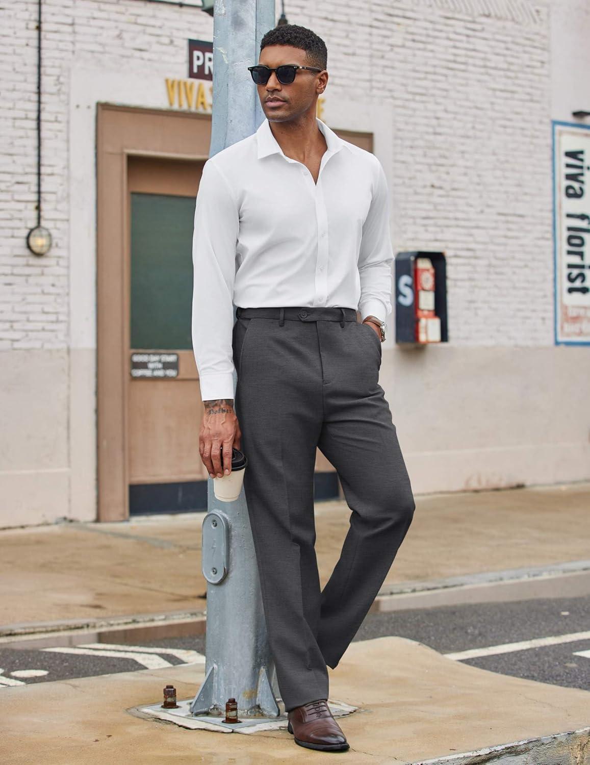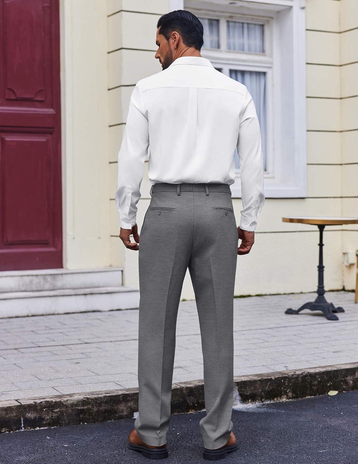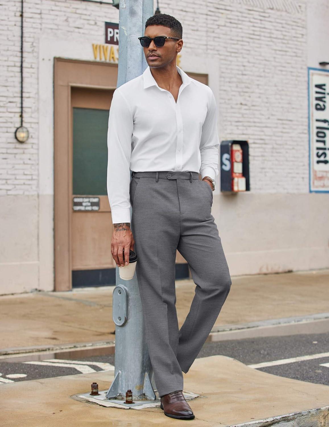COOFANDY Mens Dress Pants Regular Fit Flat Front Pant Expandable Waist Casual Slacks(Gray)
