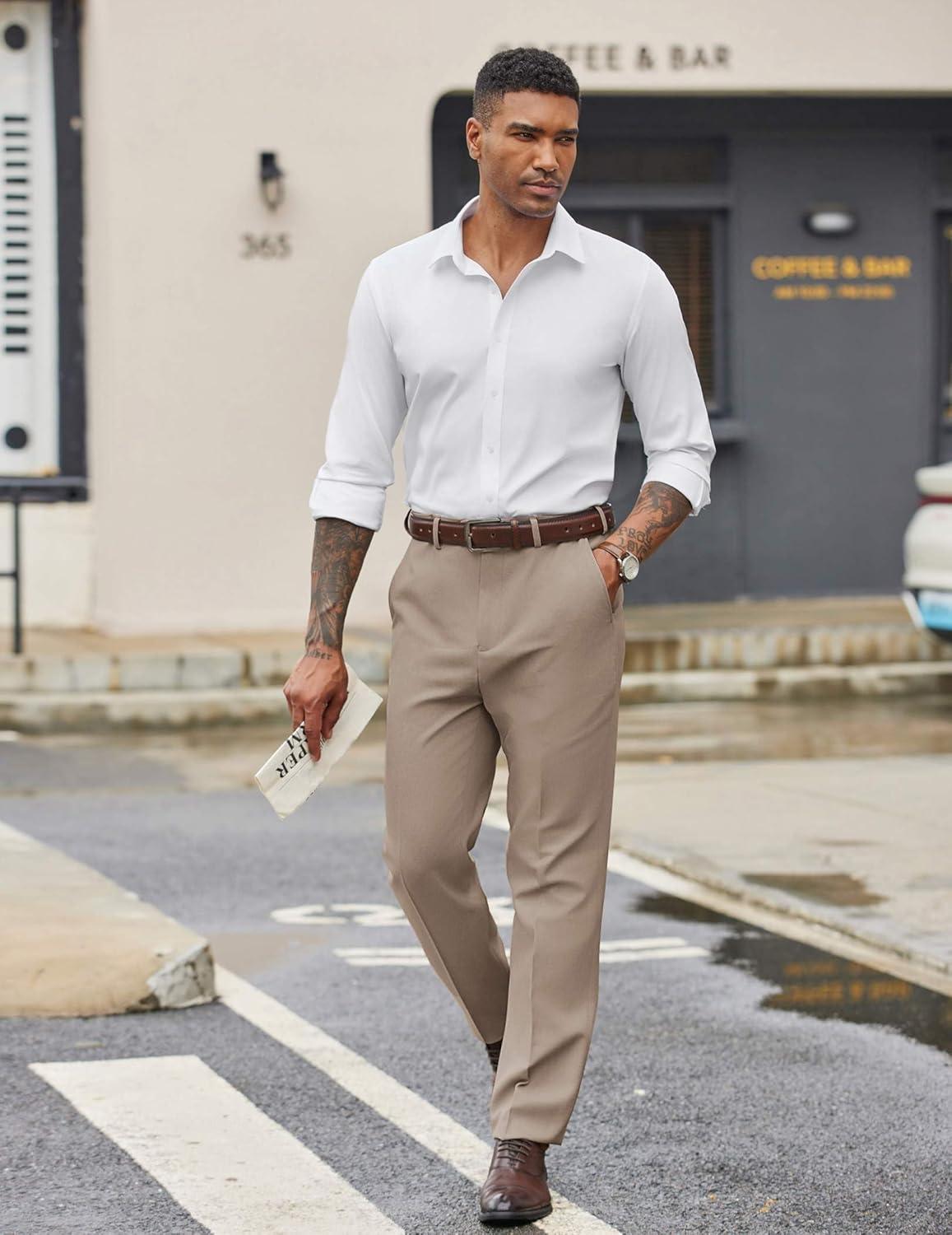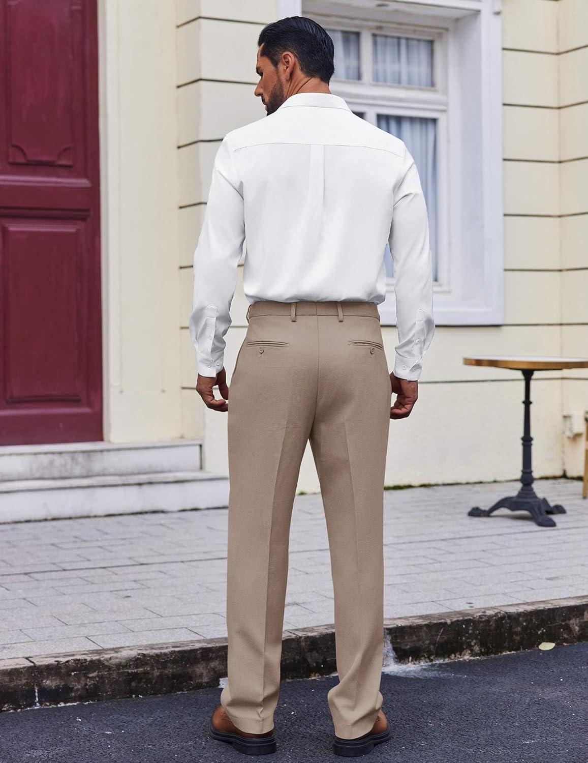 COOFANDY Mens Dress Pants Regular Fit Flat Front Pant Expandable Waist Casual Slacks(Khaki)