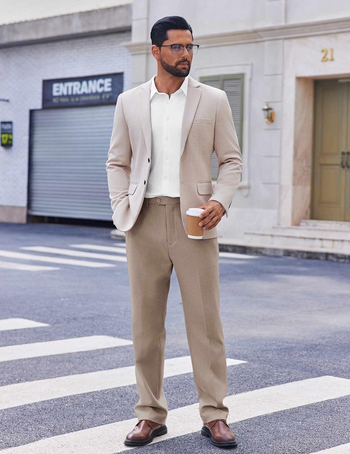 COOFANDY Mens Causal Blazer Two Button Suit Jackets Lightweight Slim Fit Sports Coats(Light Khaki)