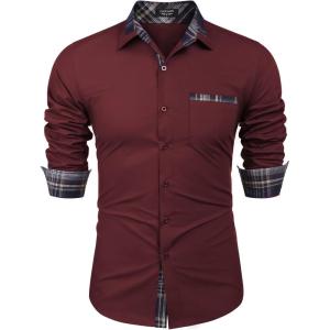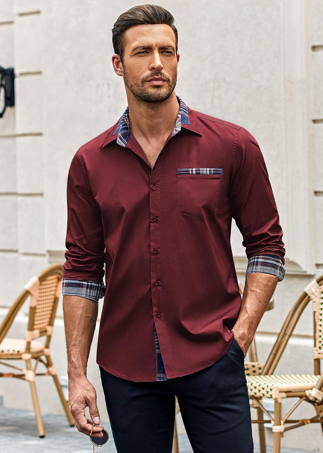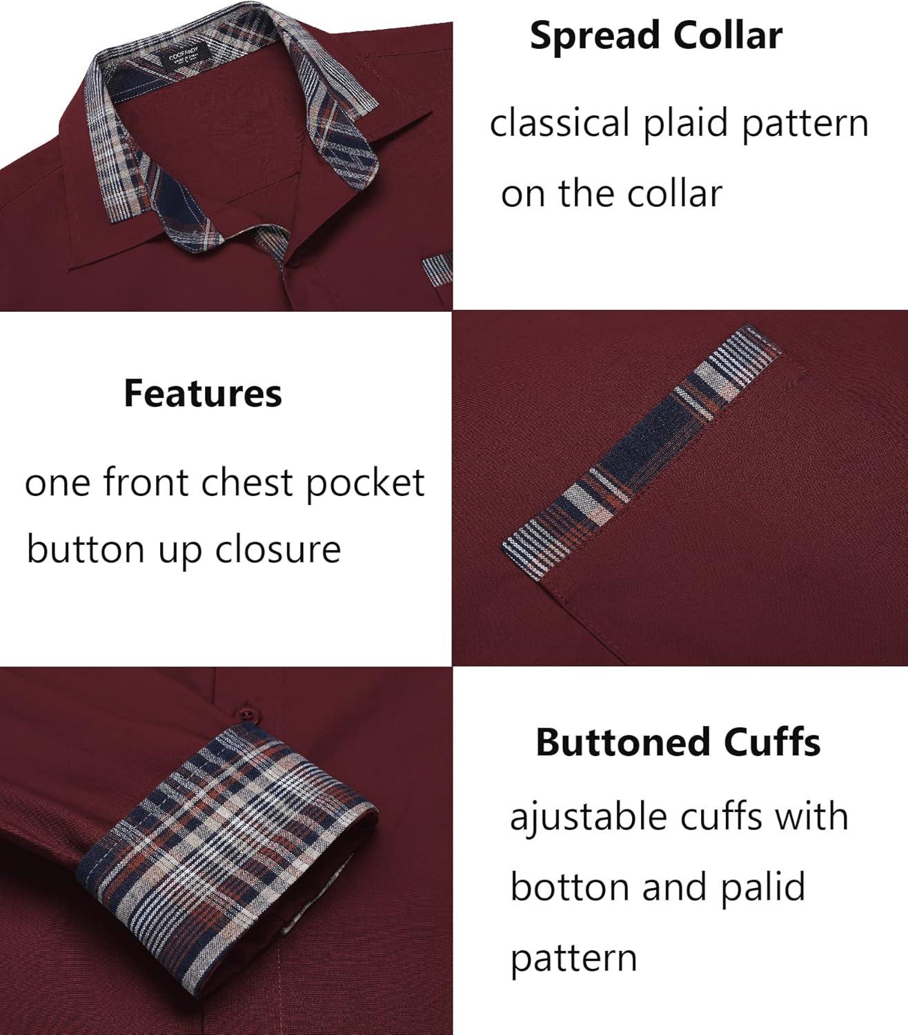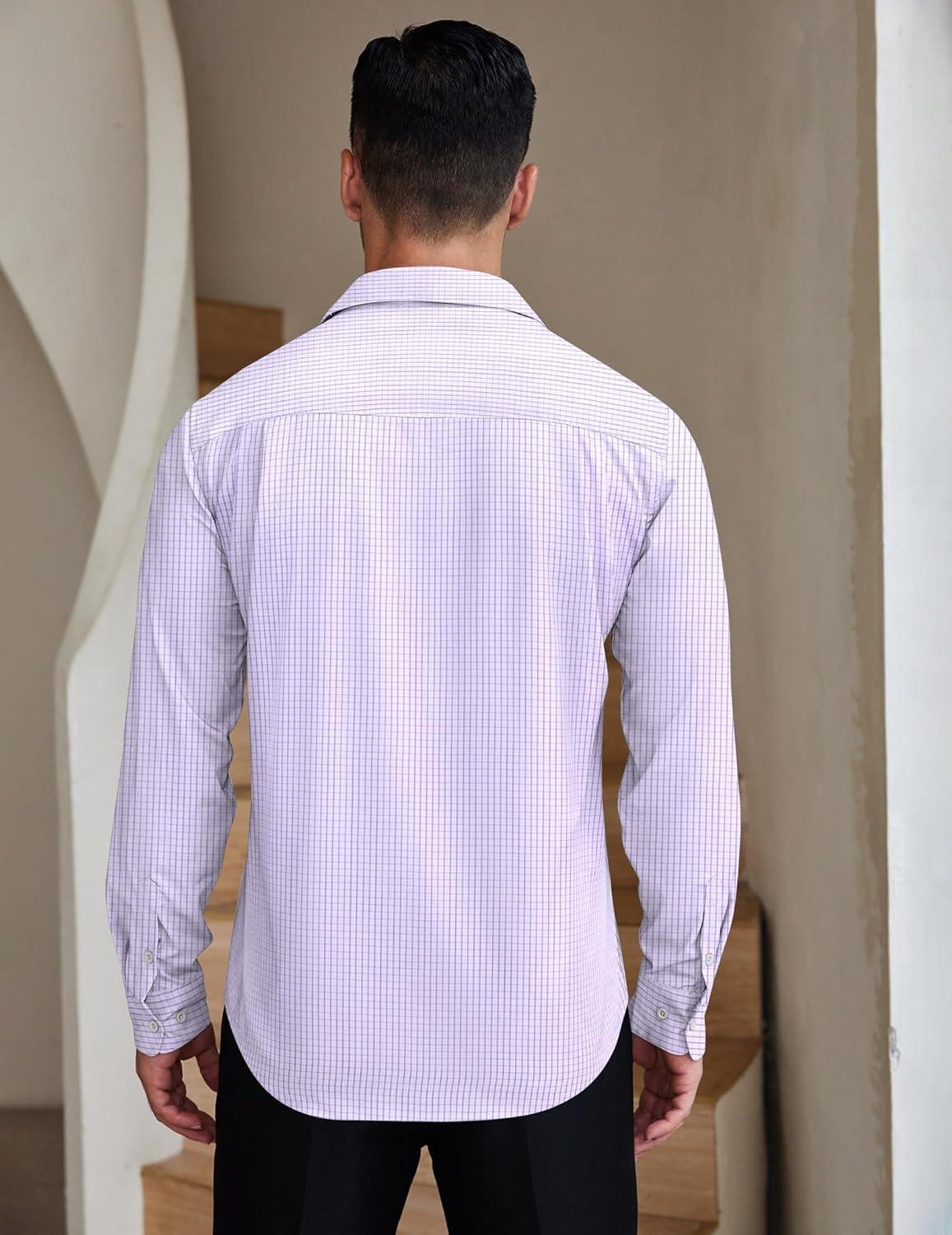 COOFANDY Mens Dress Shirts Wrinkle Free Long Sleeve Button Down Shirts Formal Business Shirt(Purple Middle Plaid)