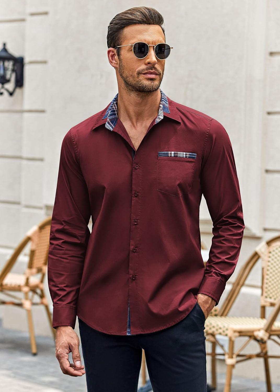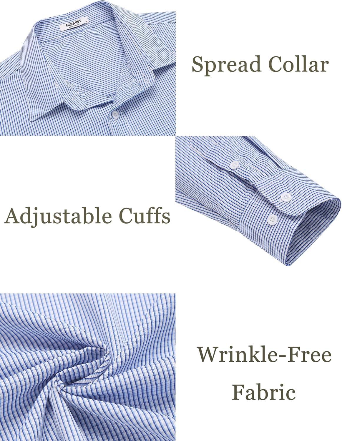 COOFANDY Mens Dress Shirts Wrinkle Free Long Sleeve Button Down Shirts Formal Business Shirt(Blue Small Plaid)