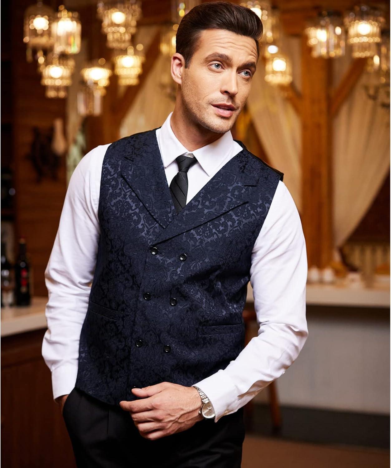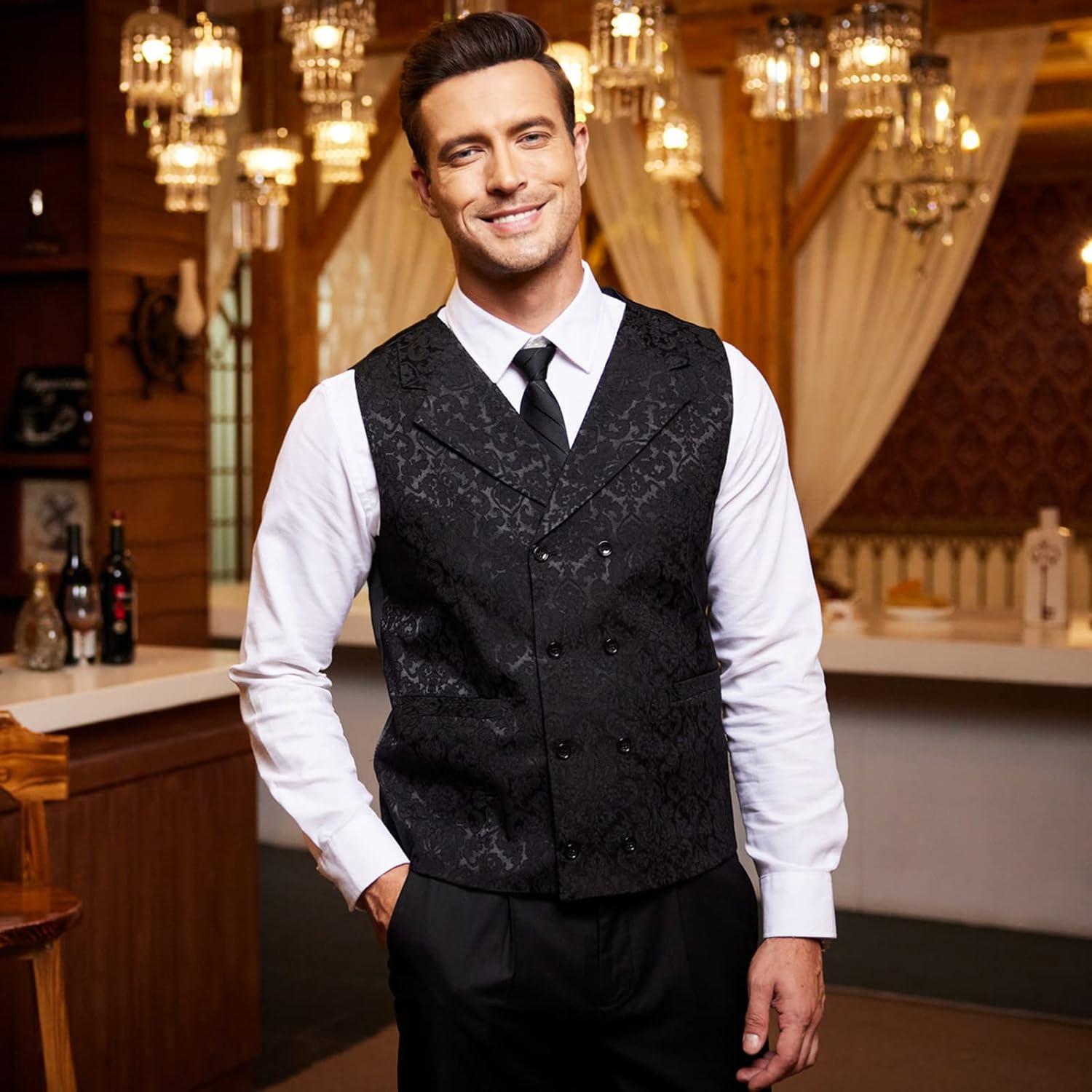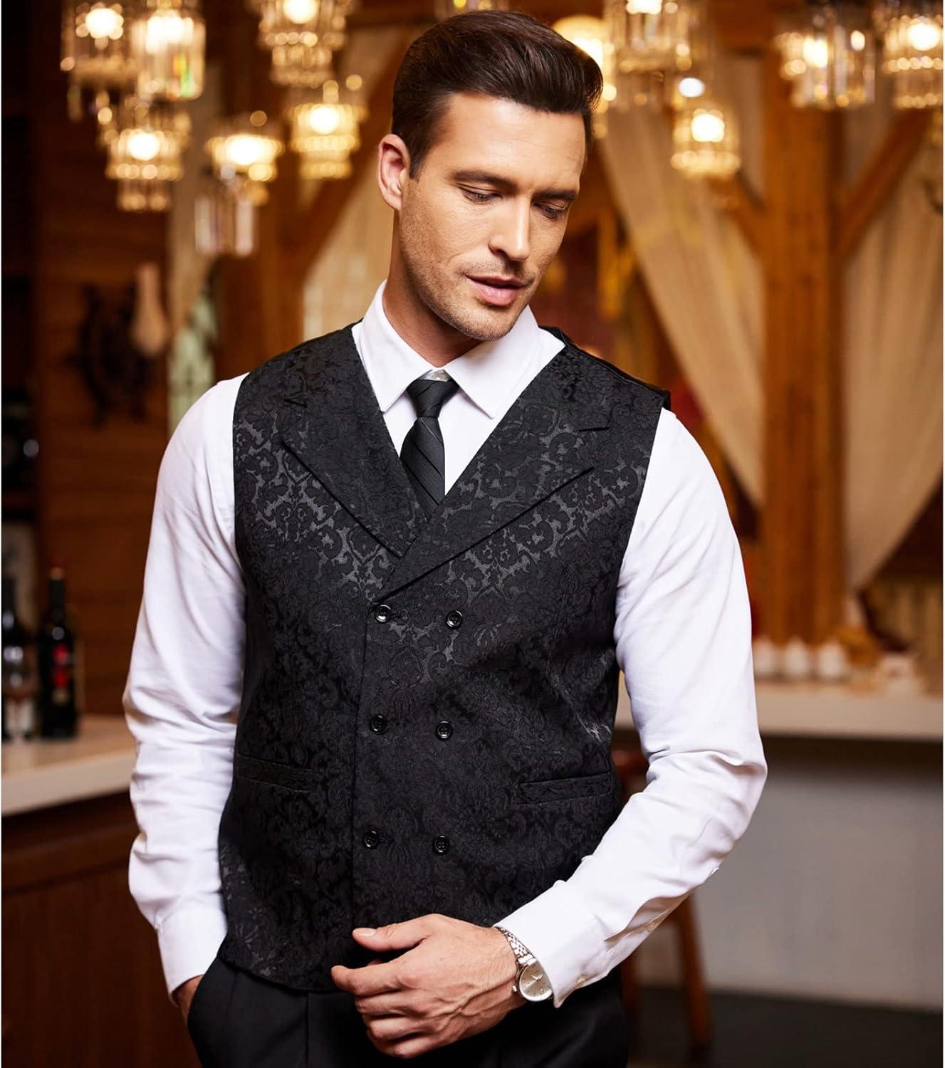 COOFANDY Mens Halloween Victorian Vest Steampunk Double Breasted Suit Vest Slim Fit Brocade Paisley Floral Waistcoat(Black)