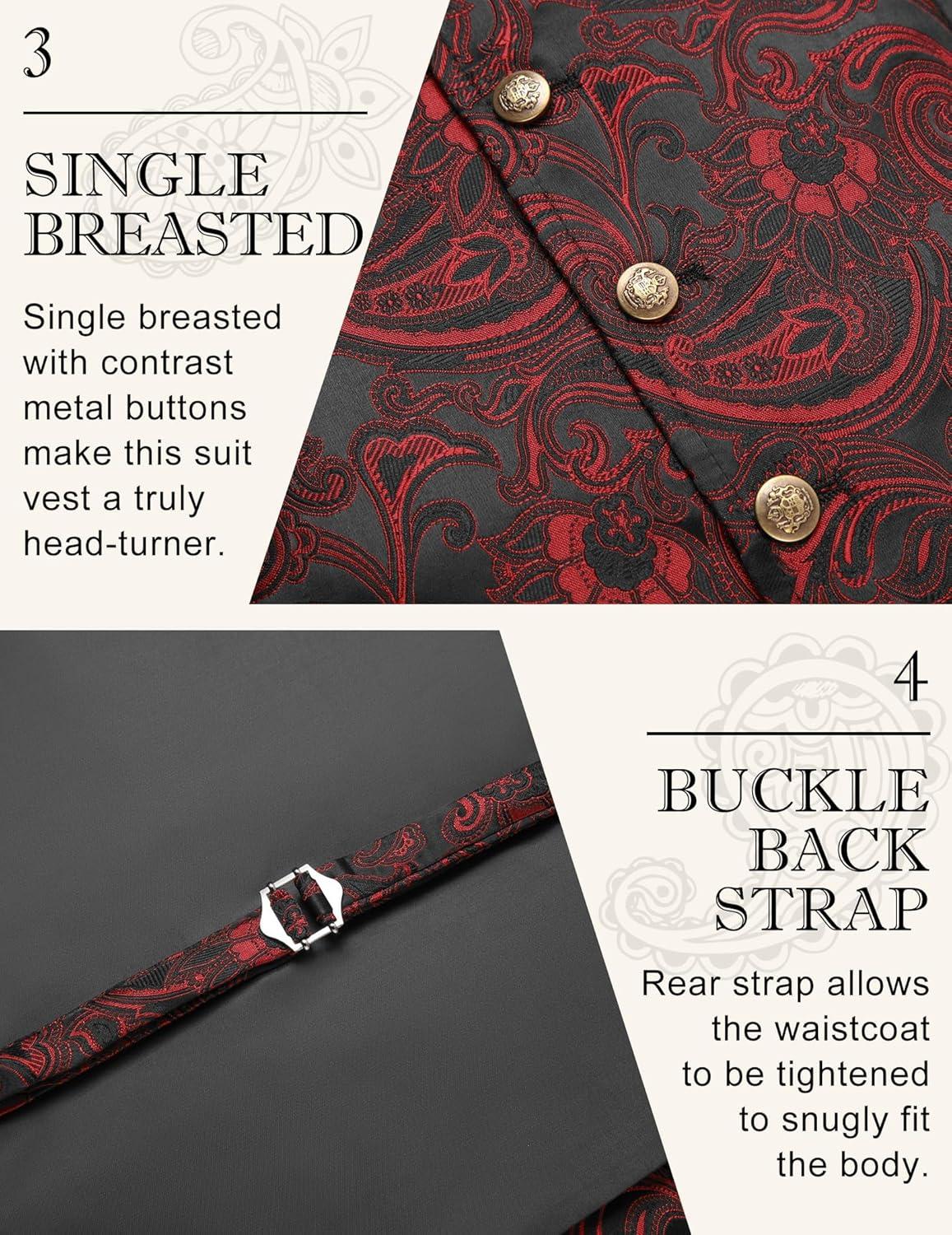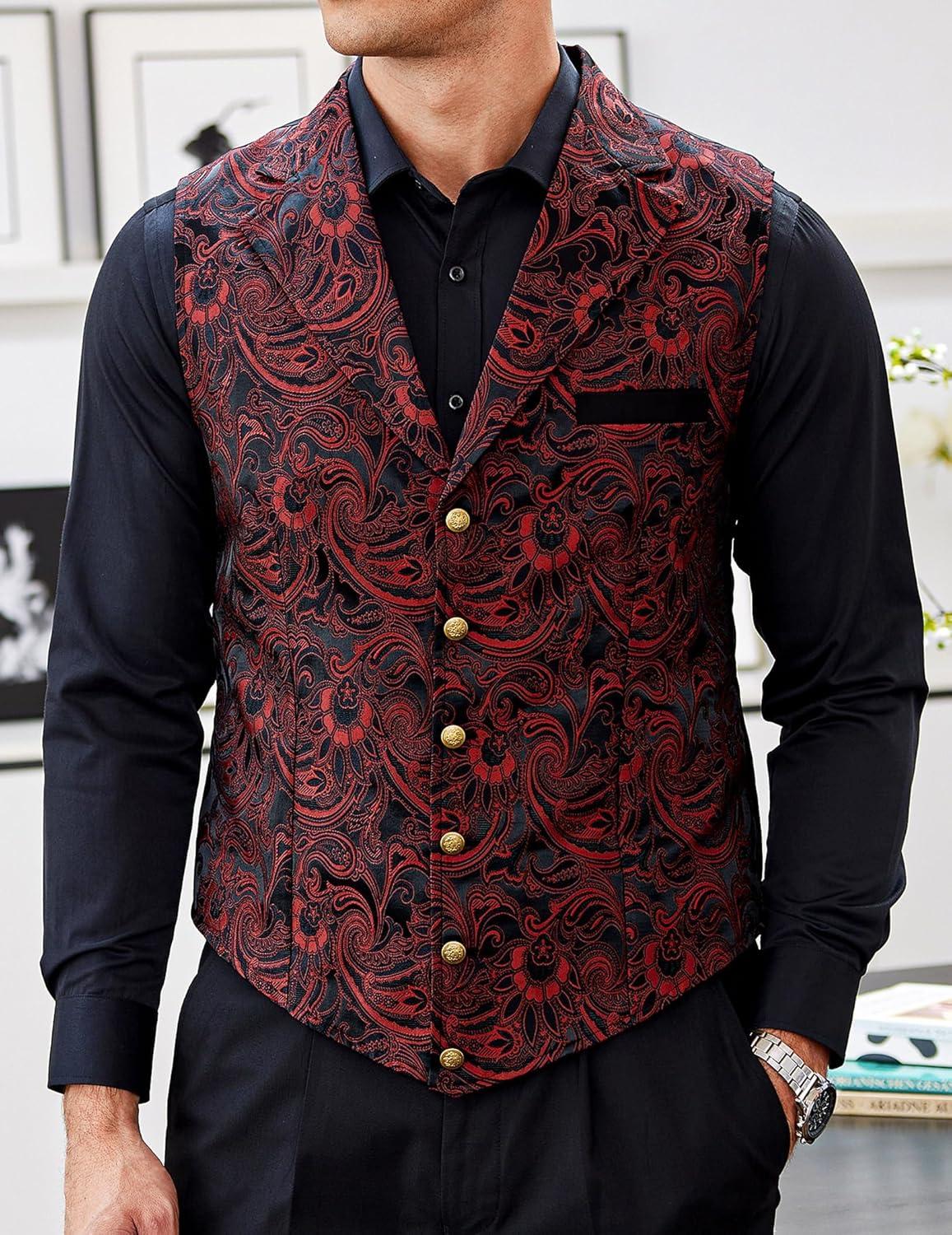 COOFANDY Mens Suit Vest Paisley Floral Victorian Vests Gothic Steampunk Formal Waistcoat Tuxedo Vests with Notched Lapels