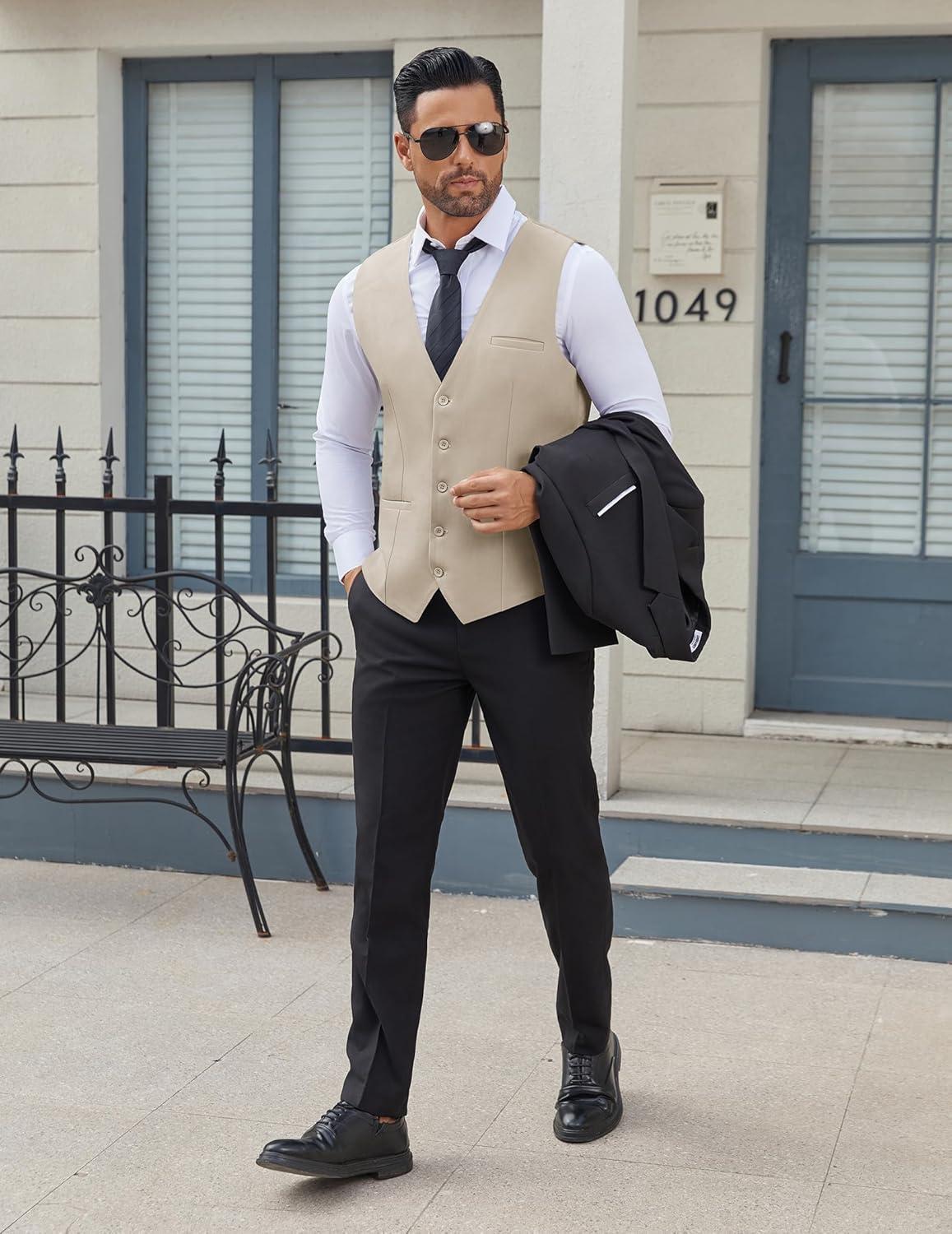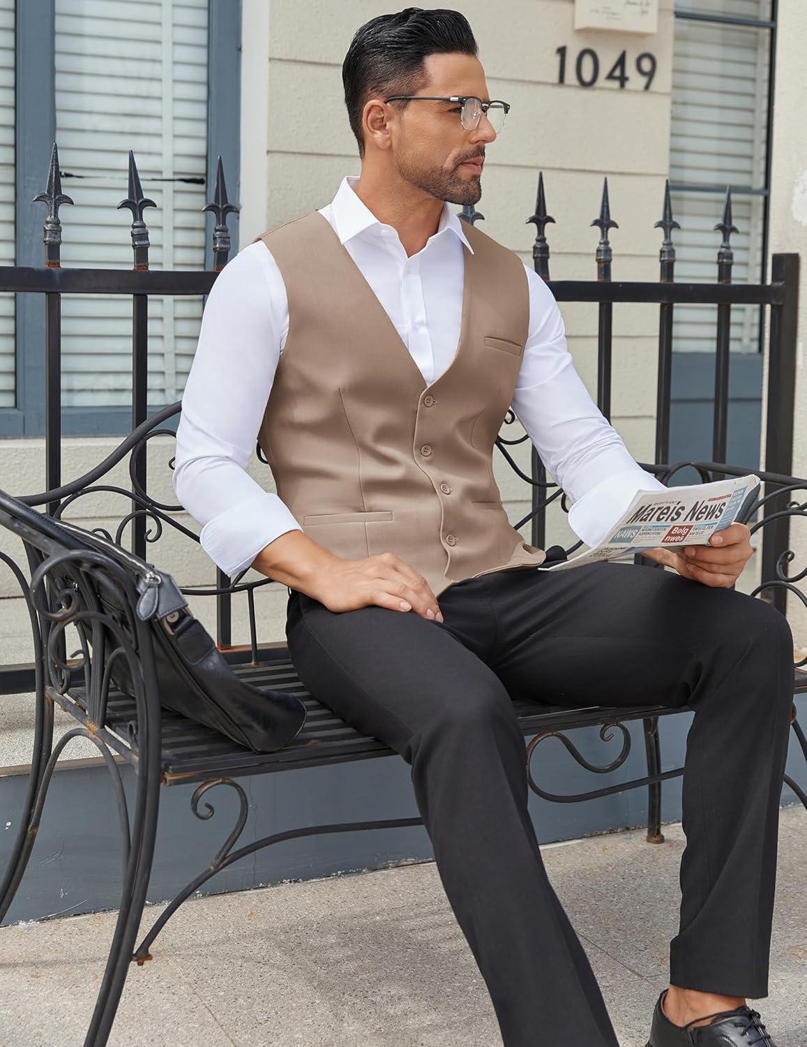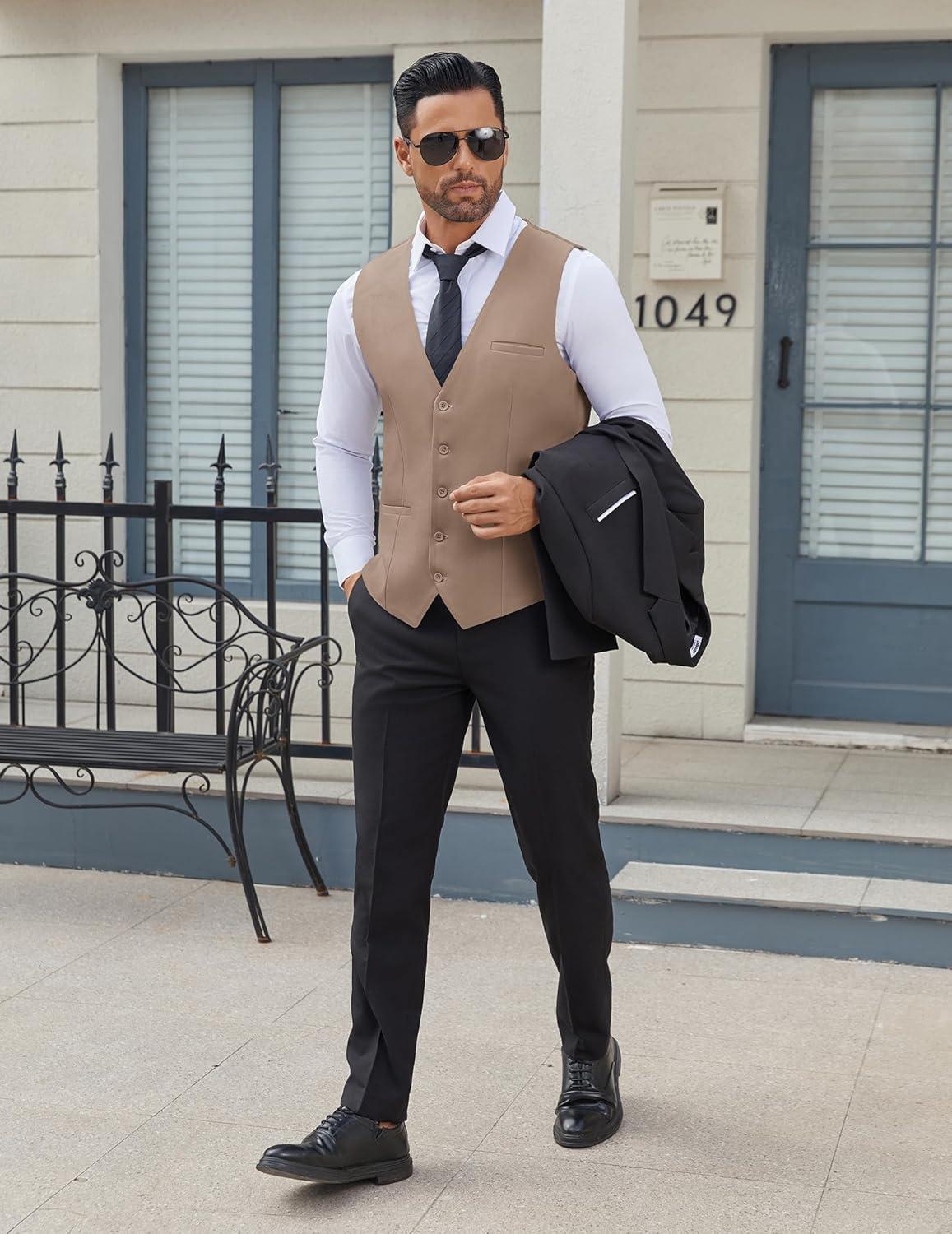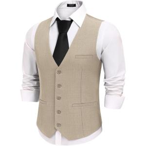 COOFANDY Men’s Business Suit Vests Slim Fit Formal Dress Waistcoat Groomsman Vest For Wedding(Khaki)