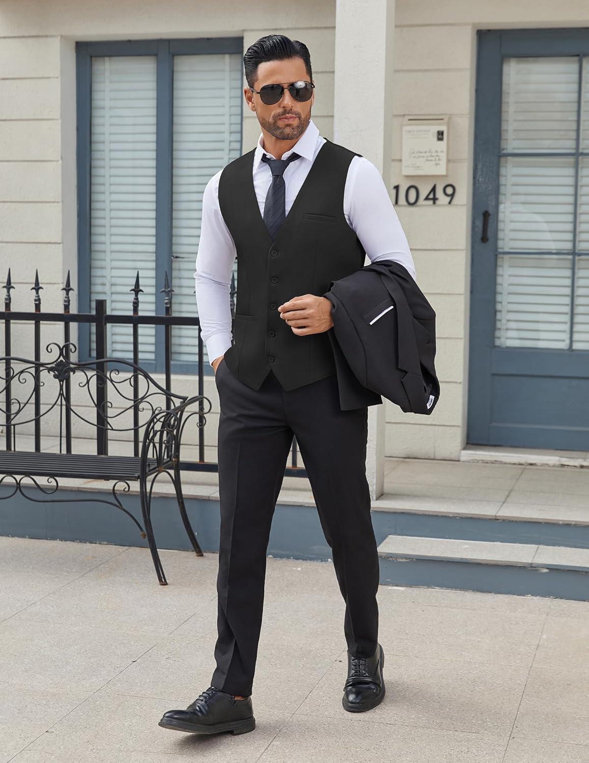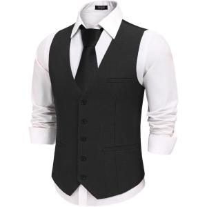 COOFANDY Men’s Business Suit Vests Slim Fit Formal Dress Waistcoat Groomsman Vest For Wedding(Black)