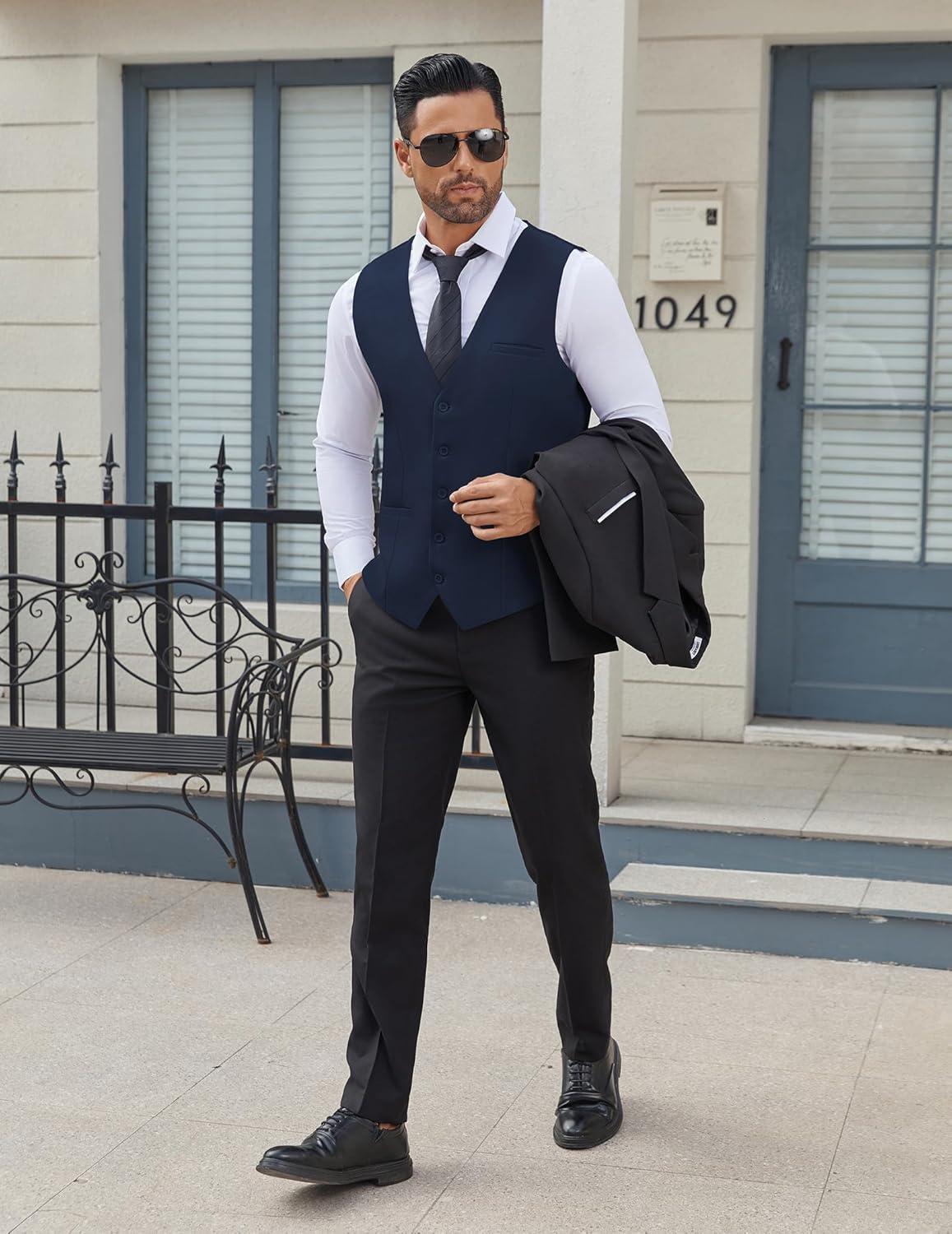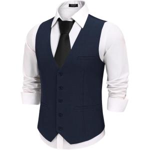 COOFANDY Men’s Business Suit Vests Slim Fit Formal Dress Waistcoat Groomsman Vest For Wedding(Navy Blue)