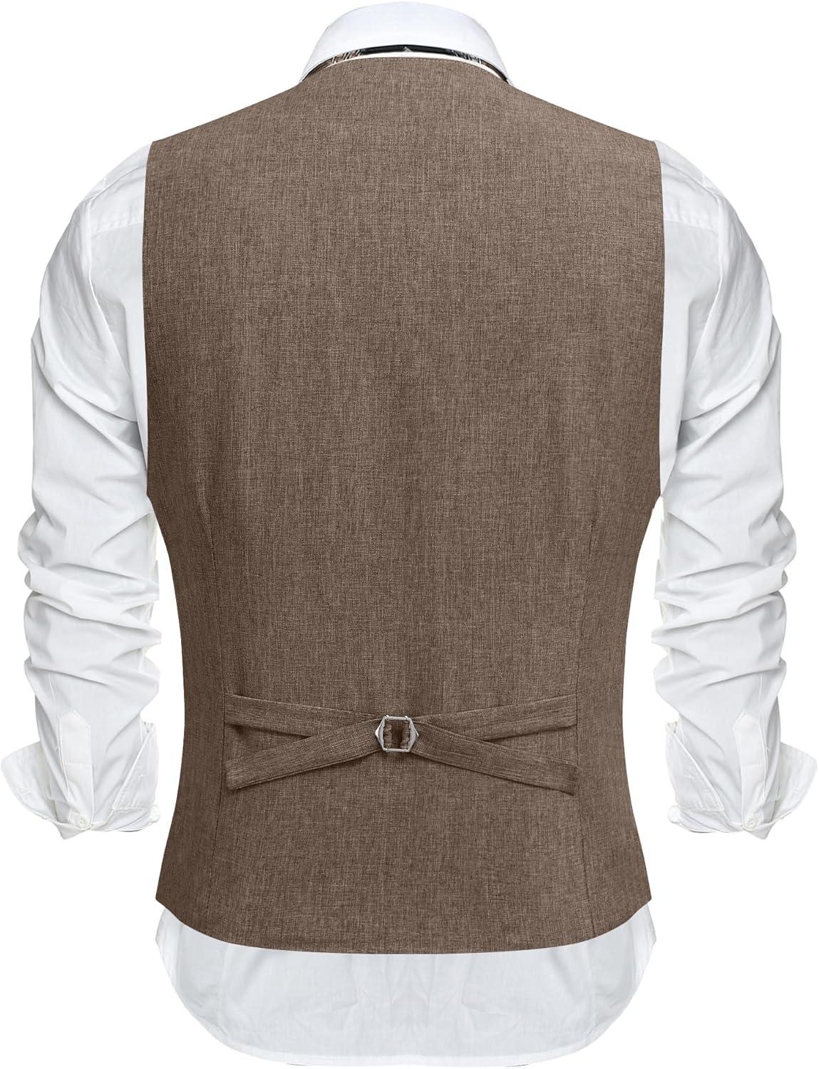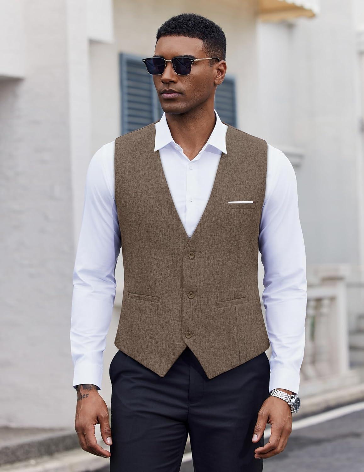 COOFANDY Men’s Suit Vest Slim Fit Casual Business Vests Lightweight V-Neck Formal Dress Waistcoat for Wedding Prom(Brown)