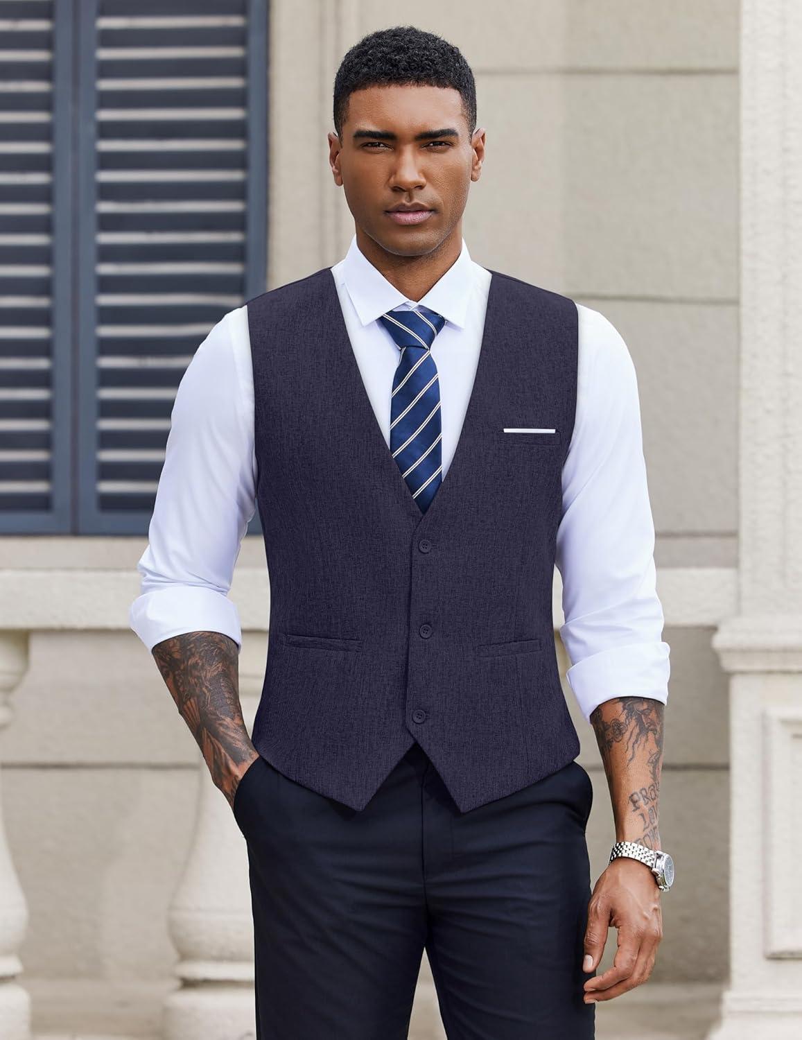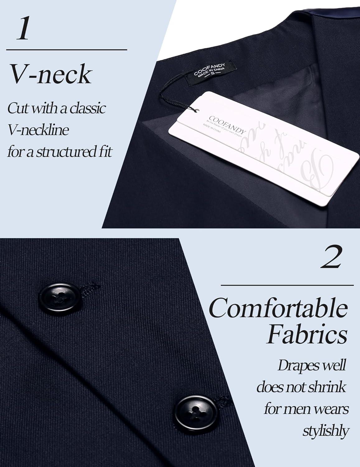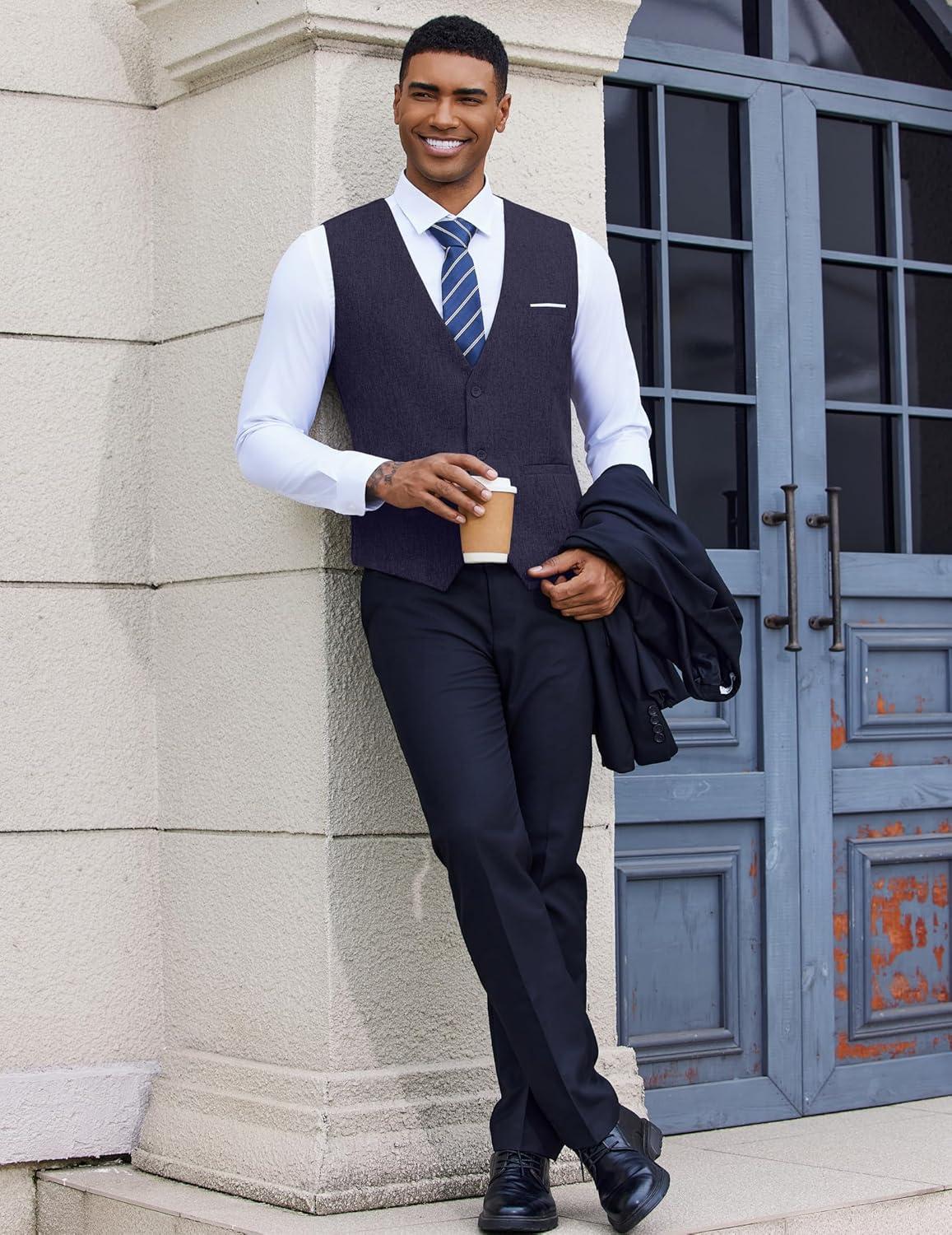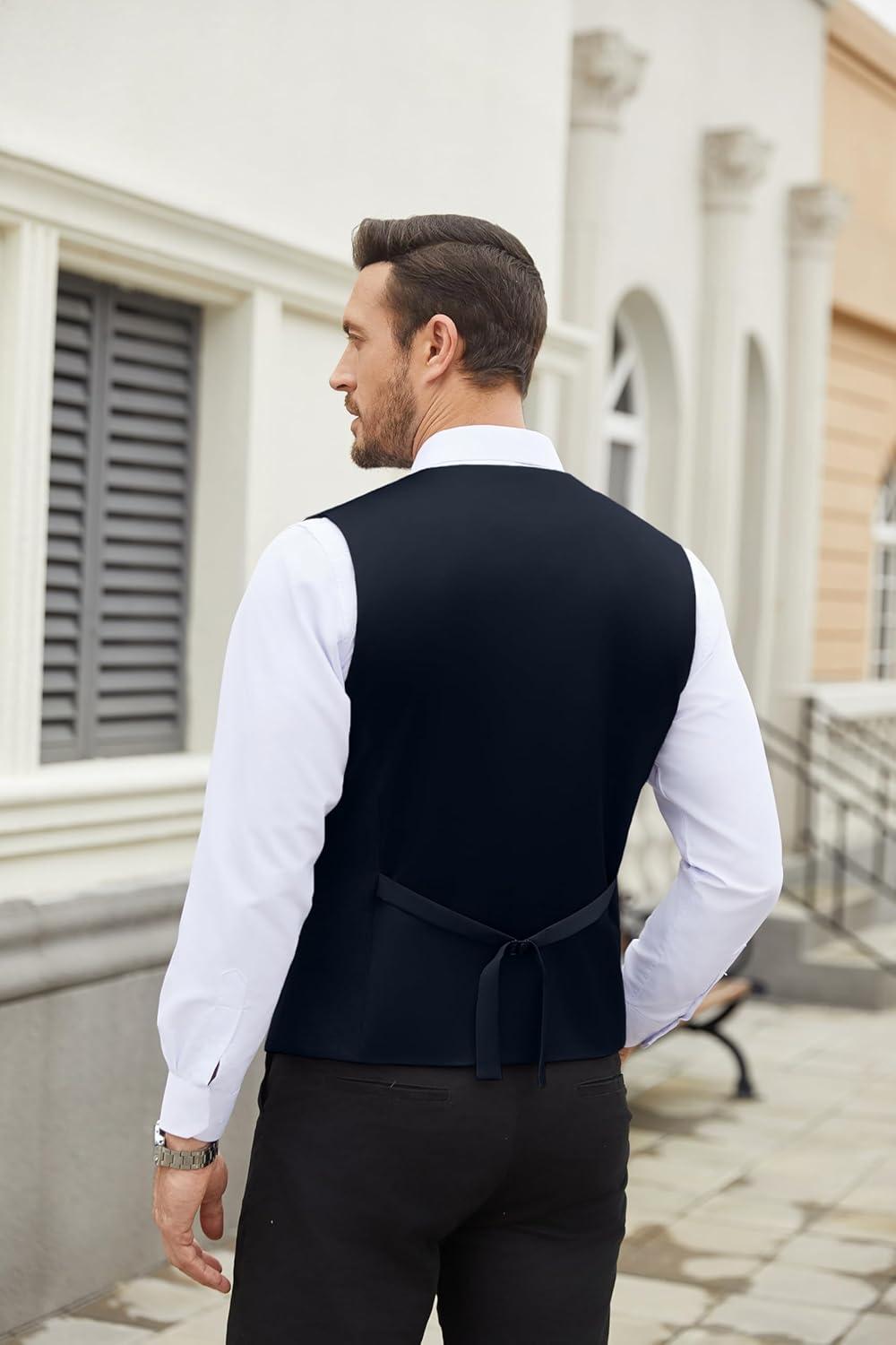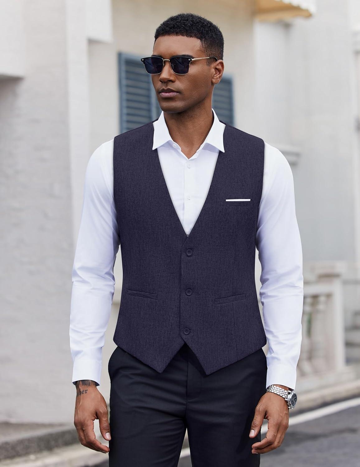 COOFANDY Men’s Suit Vest Slim Fit Business Formal Waistcoat Casual Dress Vest(A-black)