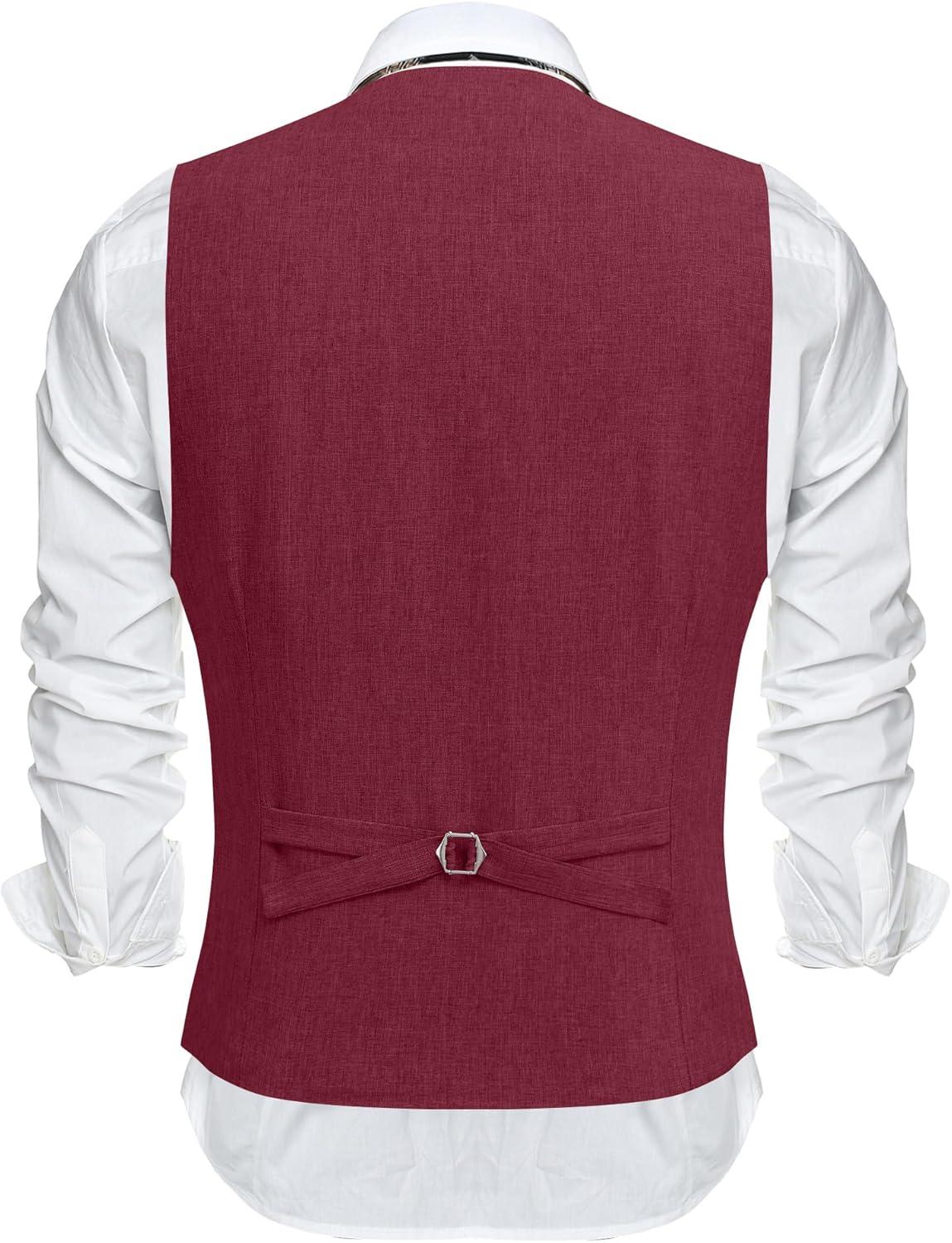 COOFANDY Men’s Business Suit Vests Slim Fit Formal Dress Waistcoat Groomsman Vest For Wedding(Wine Red)