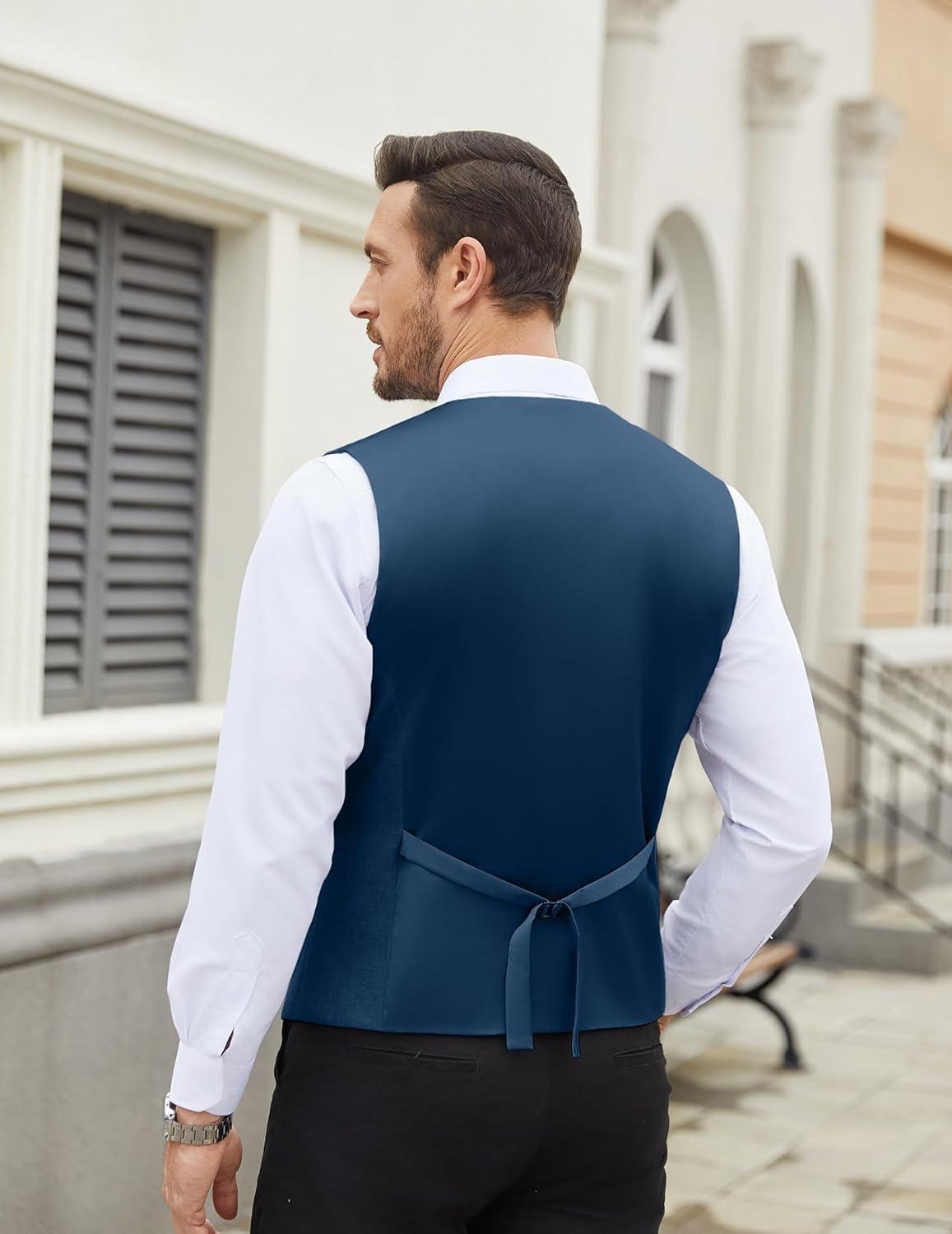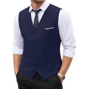 COOFANDY Men’s Suit Vest Slim Fit Business Formal Waistcoat Casual Dress Vest(Navy Blue)