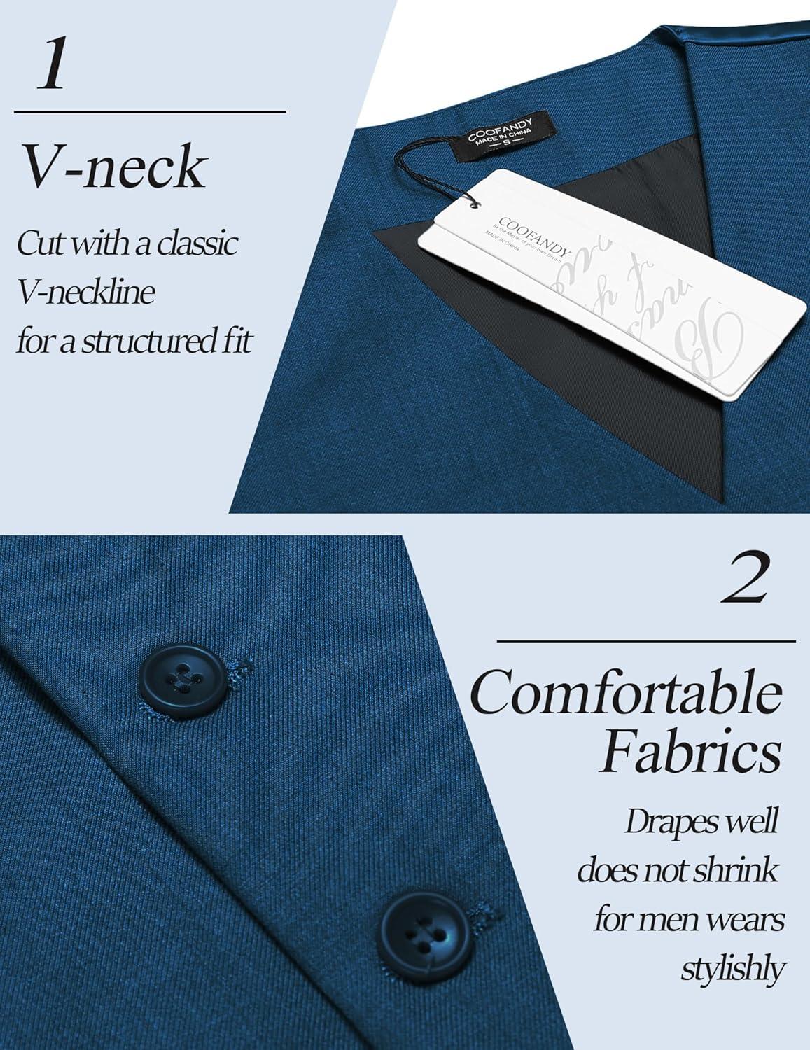 COOFANDY Men’s Suit Vest Slim Fit Business Formal Waistcoat Casual Dress Vest(Peacock Blue)