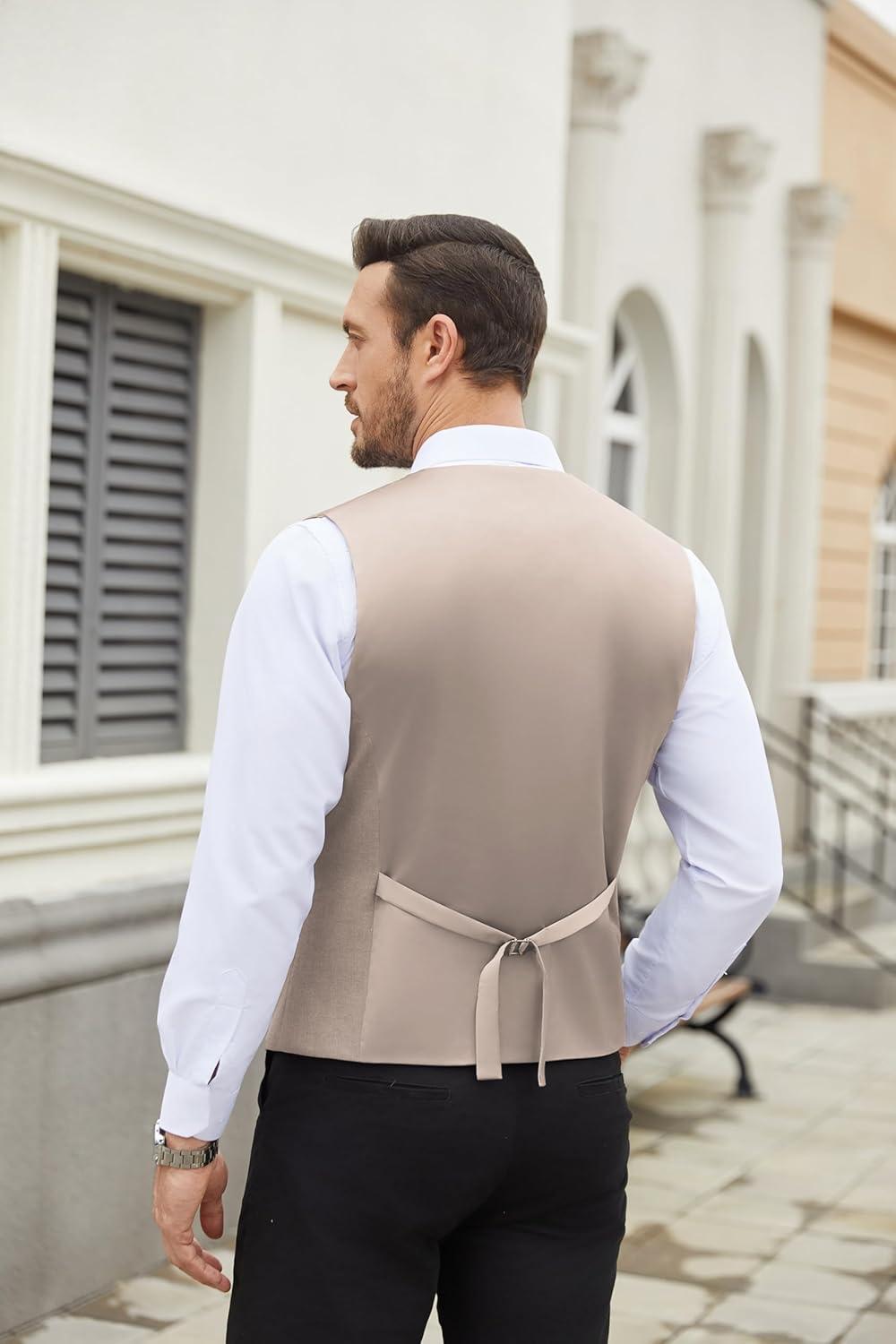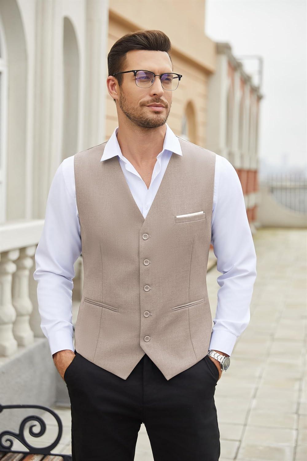 COOFANDY Men’s Suit Vest Slim Fit Business Formal Waistcoat Casual Dress Vest(Light Khaki)