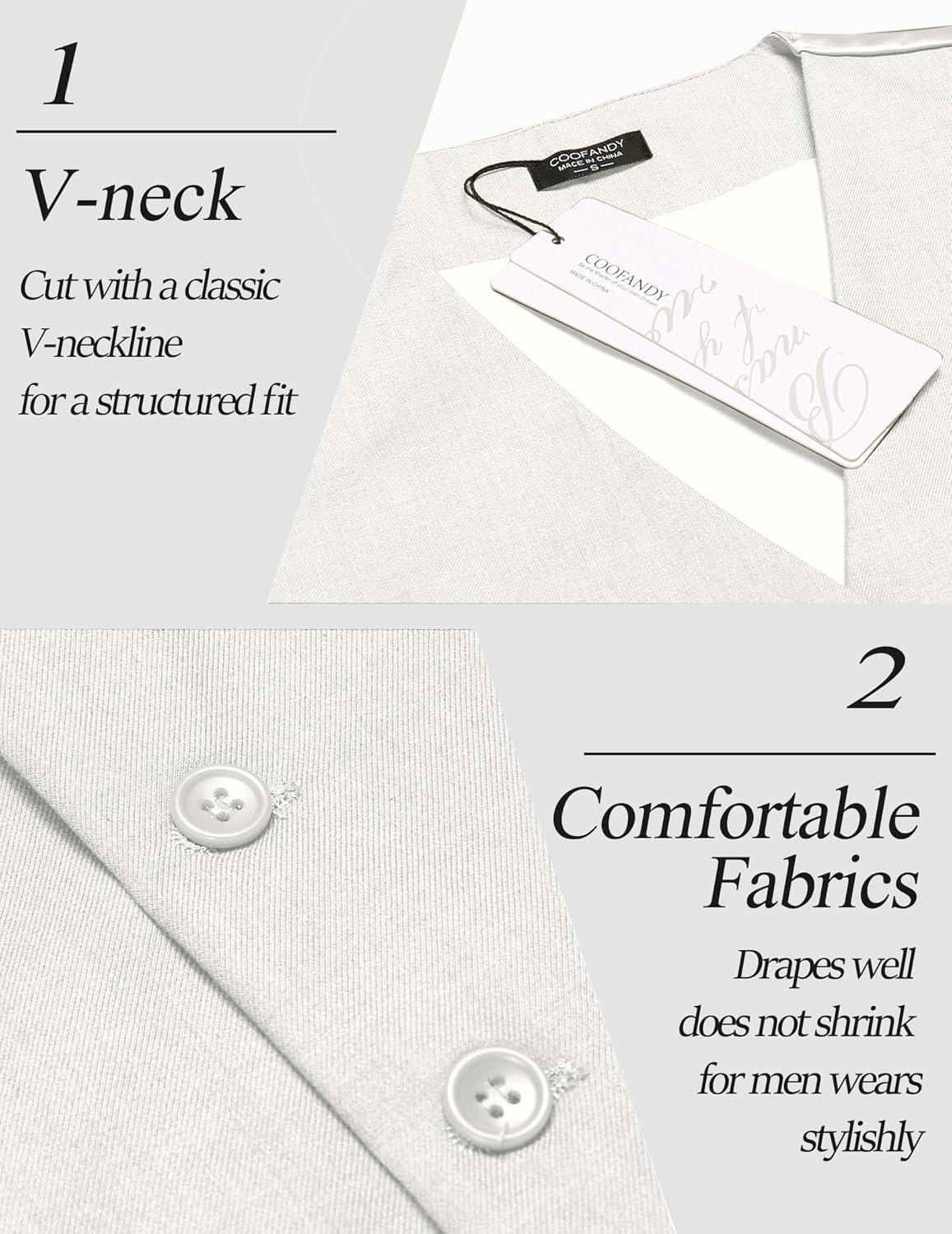 COOFANDY Men’s Suit Vest Slim Fit Casual Business Vests Lightweight V-Neck Formal Dress Waistcoat for Wedding Prom(Light Grey)