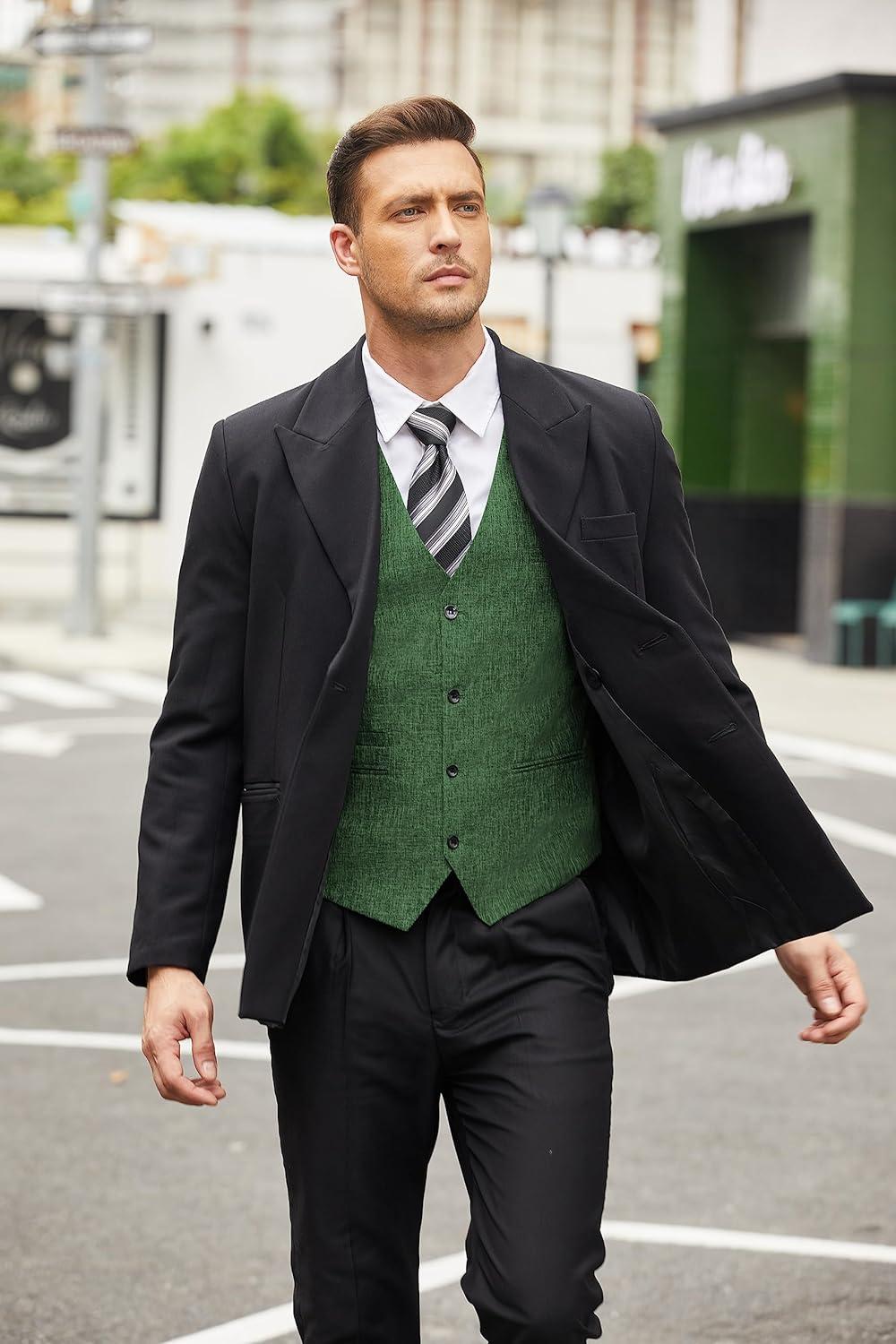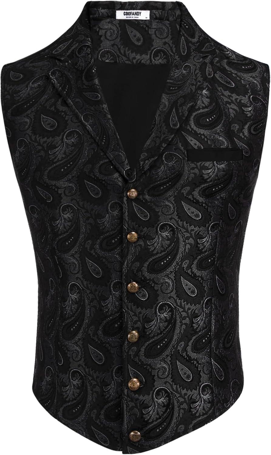 • COOFANDY Mens Suit Vest Paisley Floral Victorian Vests Gothic Steampunk Formal Waistcoat Tuxedo Vests with Notched Lapels(Green)