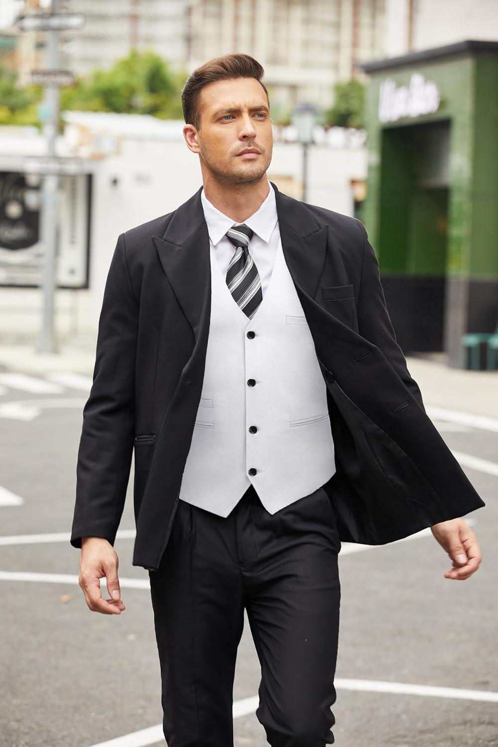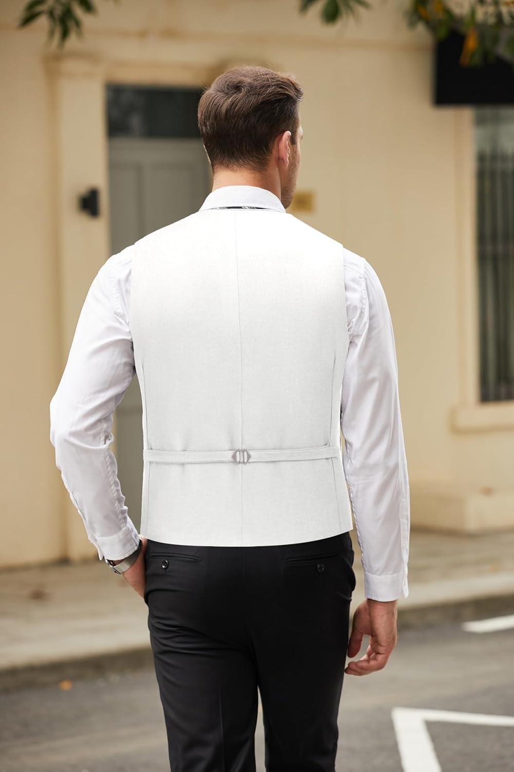 COOFANDY Men’s Casual Business Vests Lightweight Waistcoat Slim Fit Suit Vest(White)