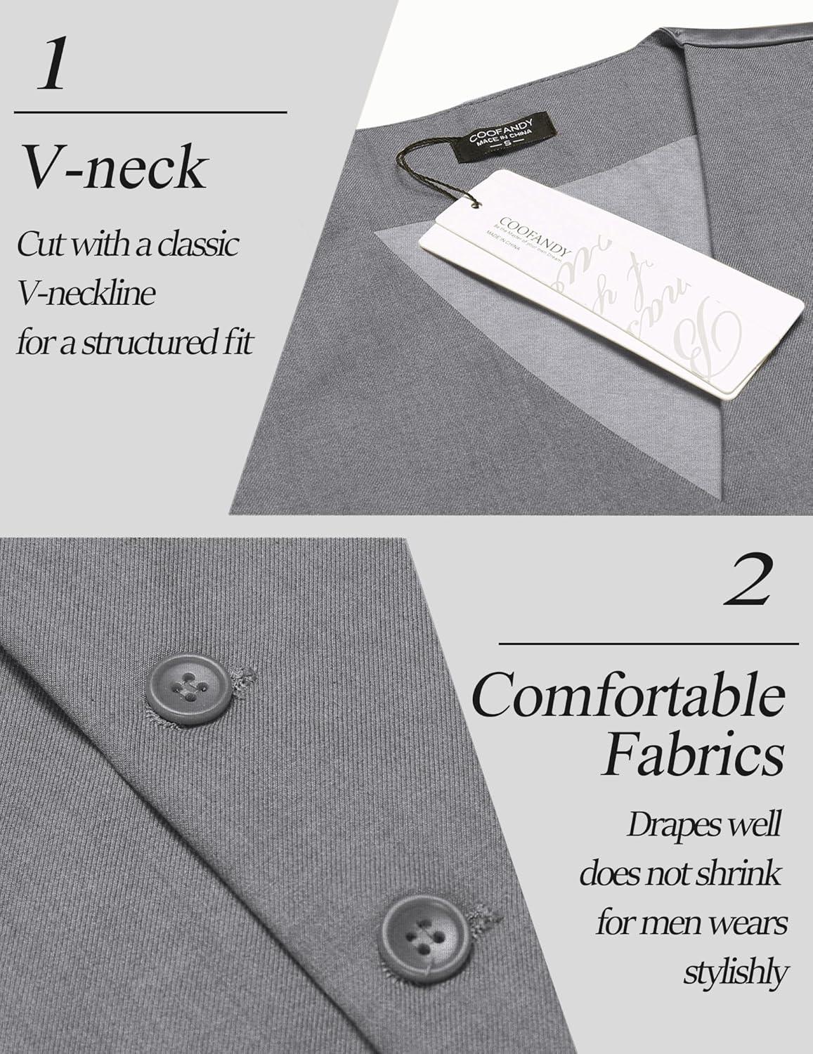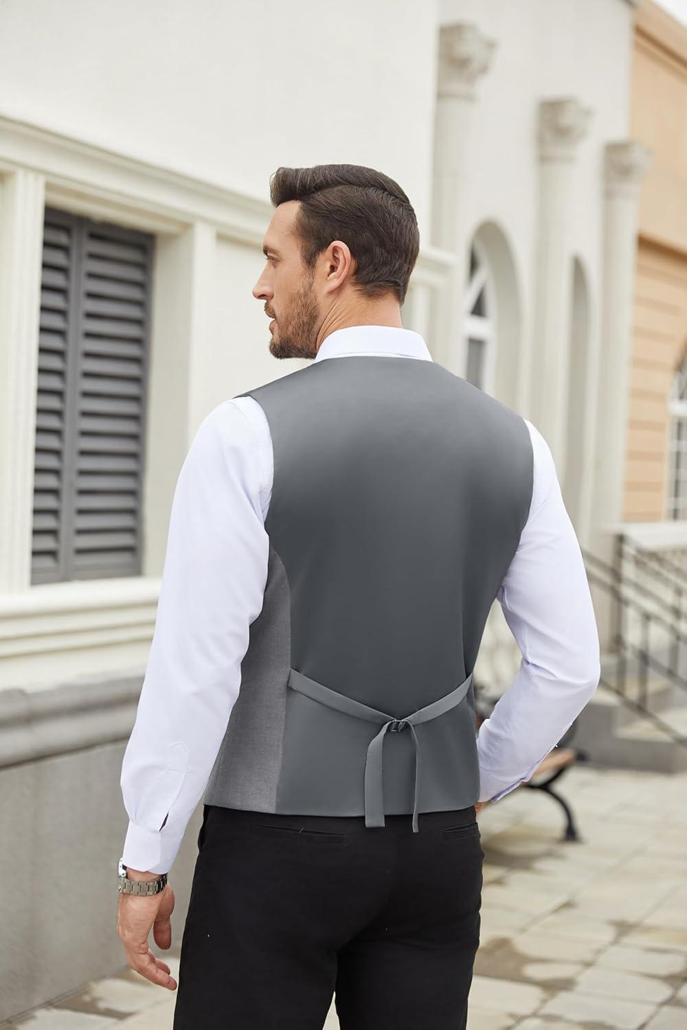 COOFANDY Men’s Suit Vest Slim Fit Casual Business Vests Lightweight V-Neck Formal Dress Waistcoat for Wedding Prom(Grey)