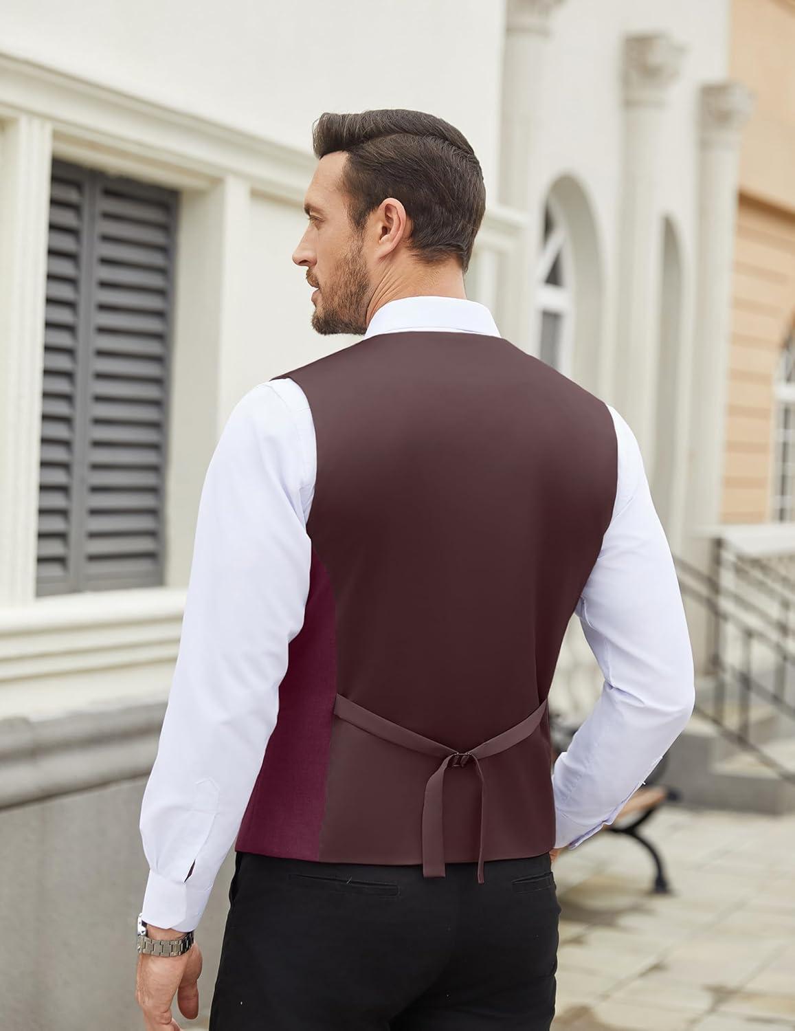 COOFANDY Men’s Suit Vest Slim Fit Business Formal Waistcoat Casual Dress Vest(Wine Red)