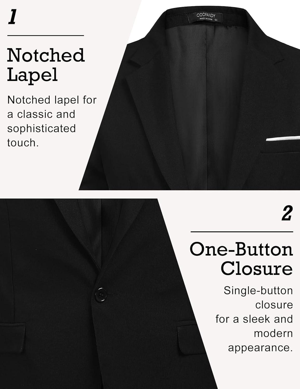 COOFANDY Men Tuxedo Jacket Slim Fit Blazer Suit Jacket Prom Dinner Party Wedding(Black)