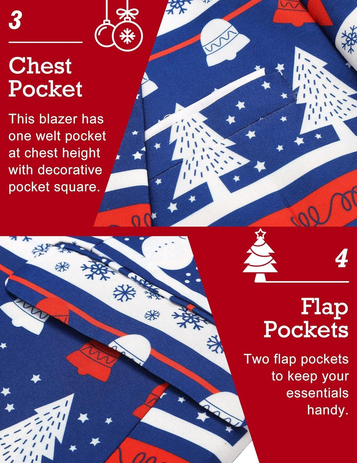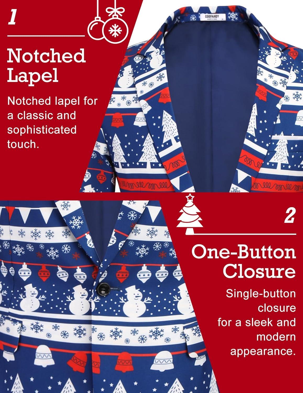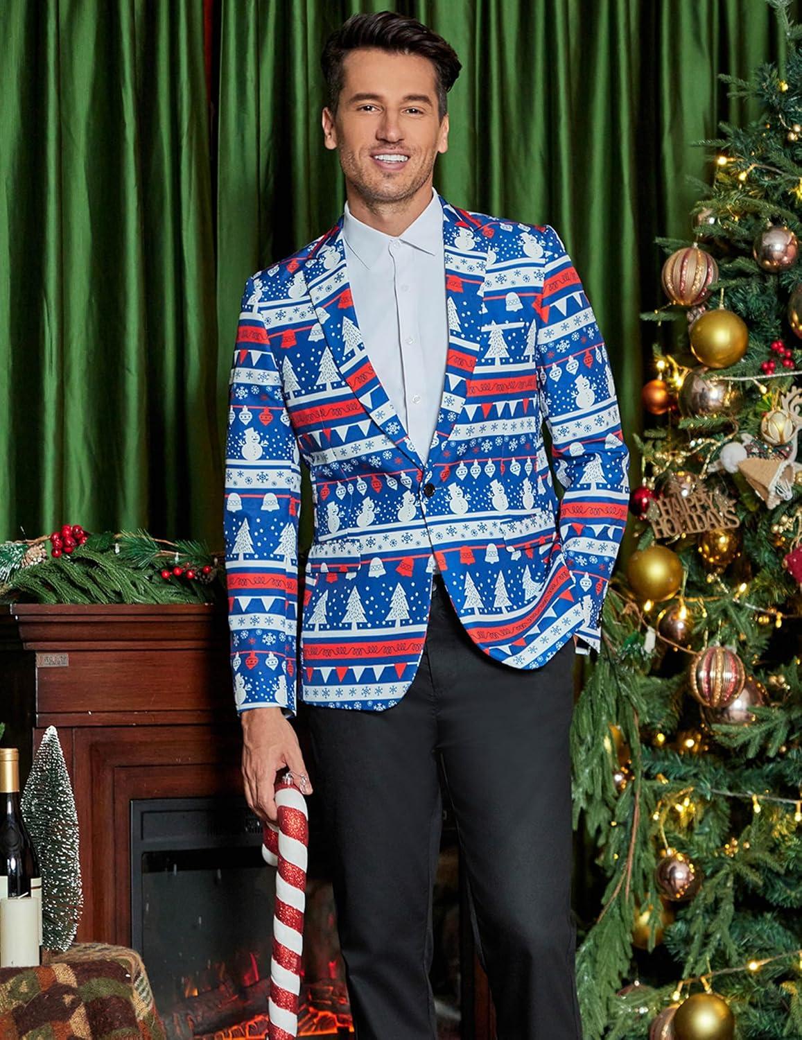 COOFANDY Men’s Christmas Blazer Jacket One Button Halloween Sport Coat Christmas Party Holiday Jacket(Christmas Blazer – Snowman & Tree)