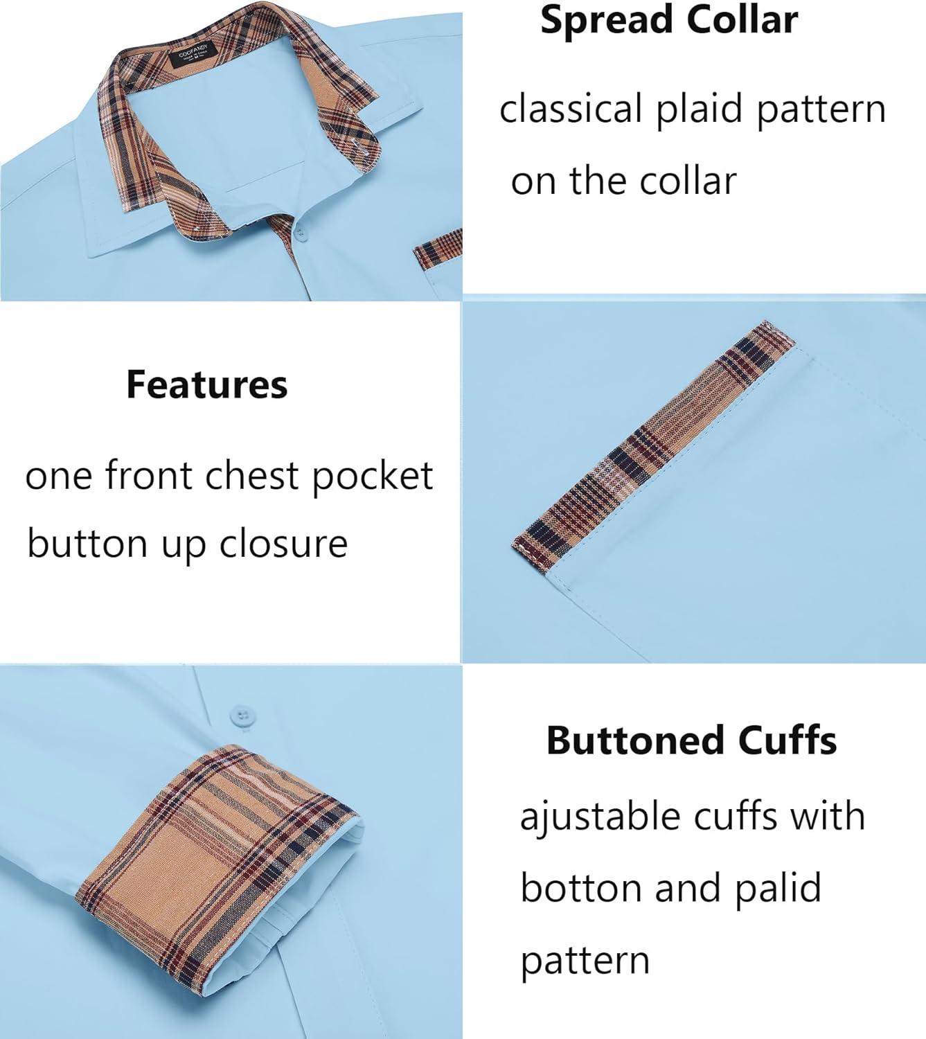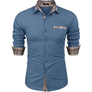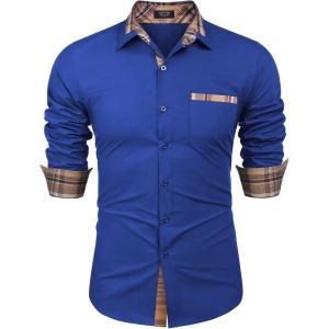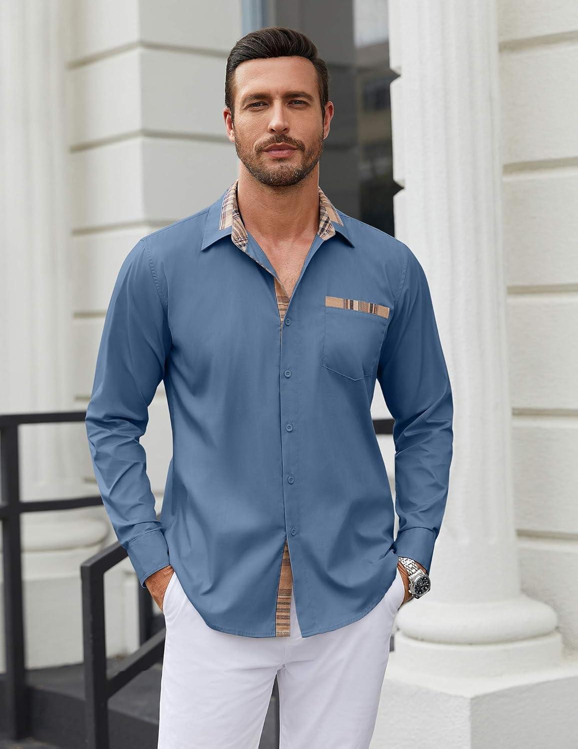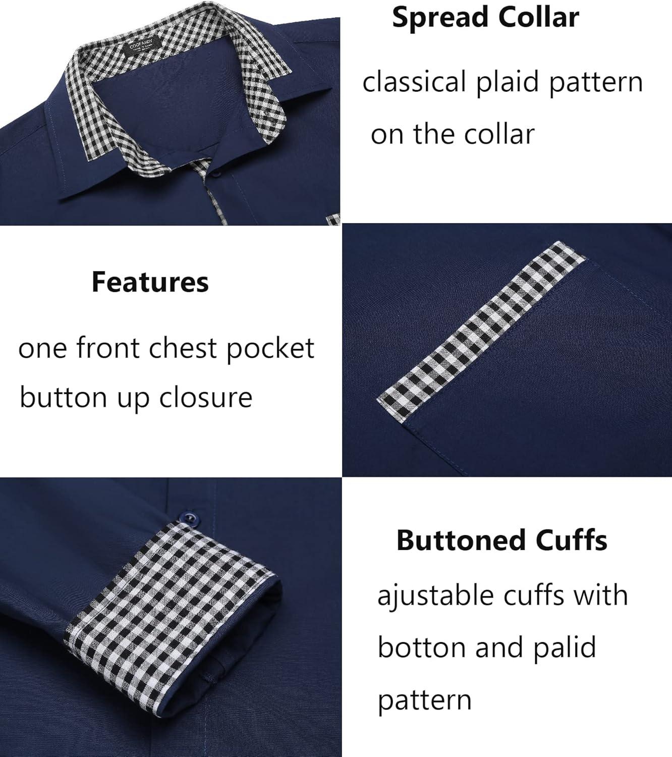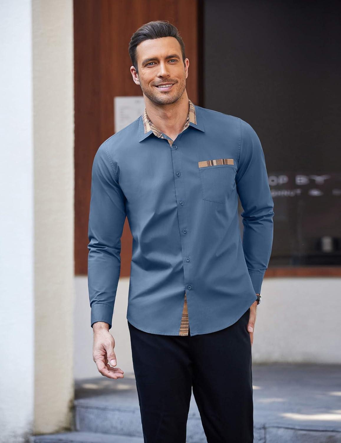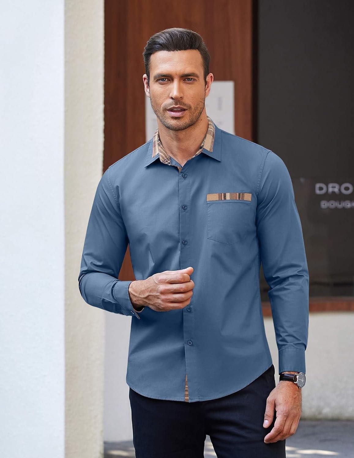 COOFANDY Mens Dress Shirts Wrinkle Free Long Sleeve Button Down Shirts Formal Business Shirt(Blue Middle Plaid)