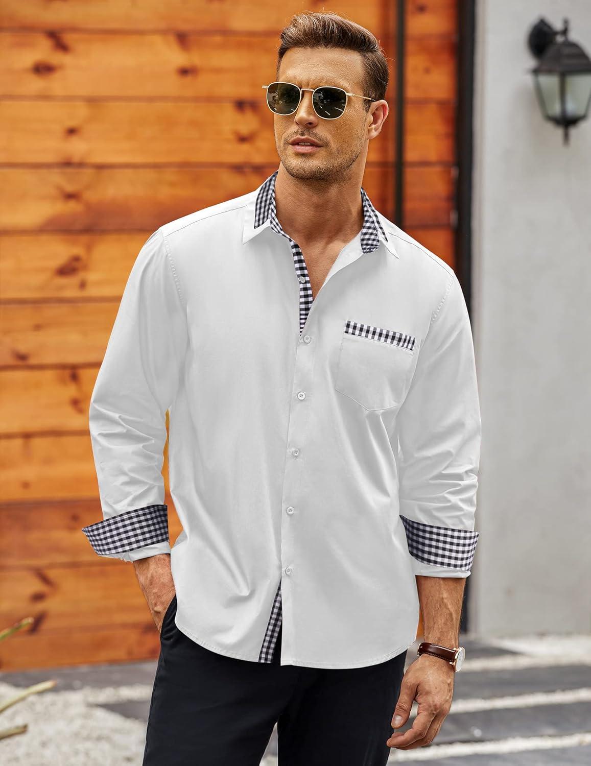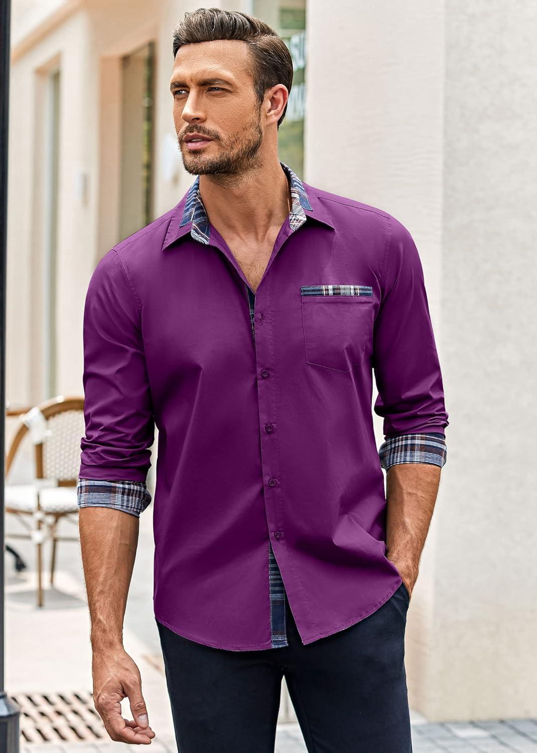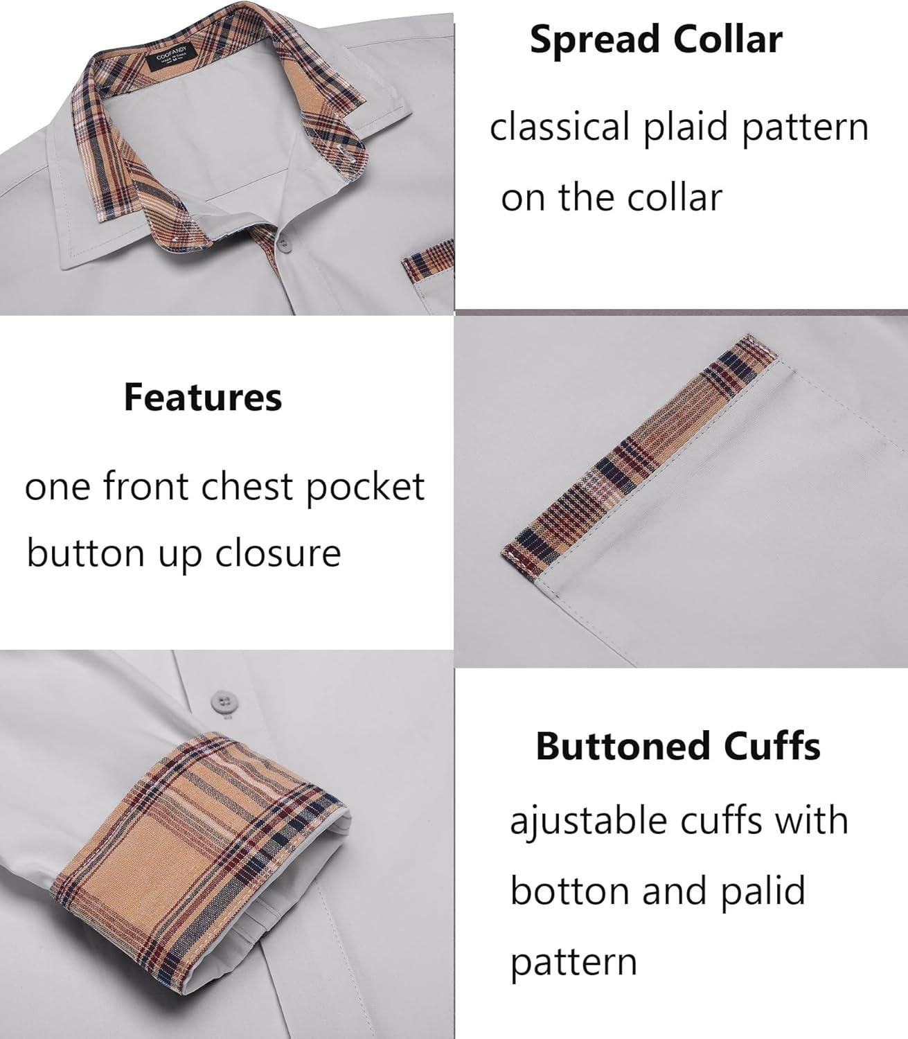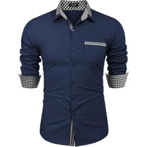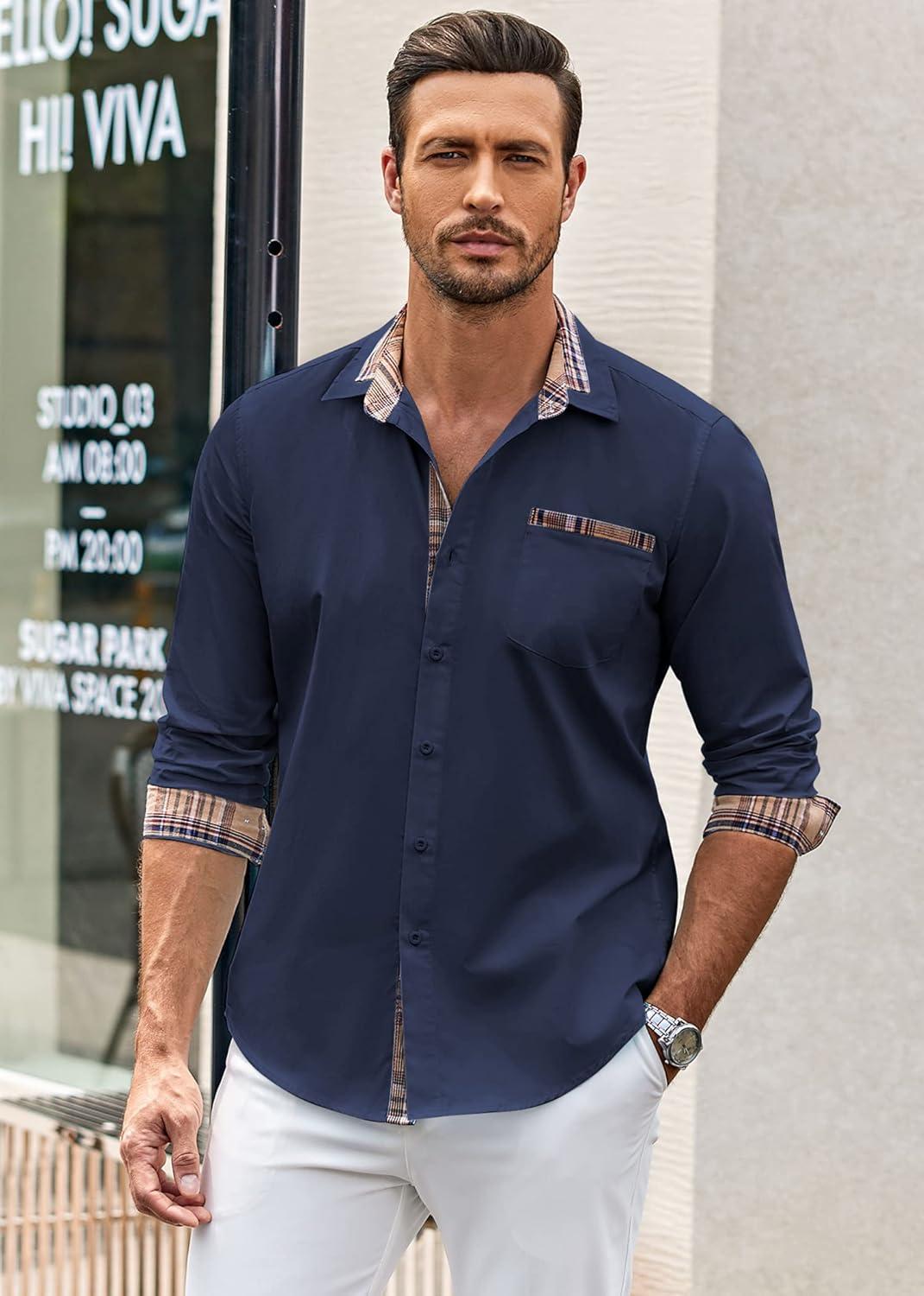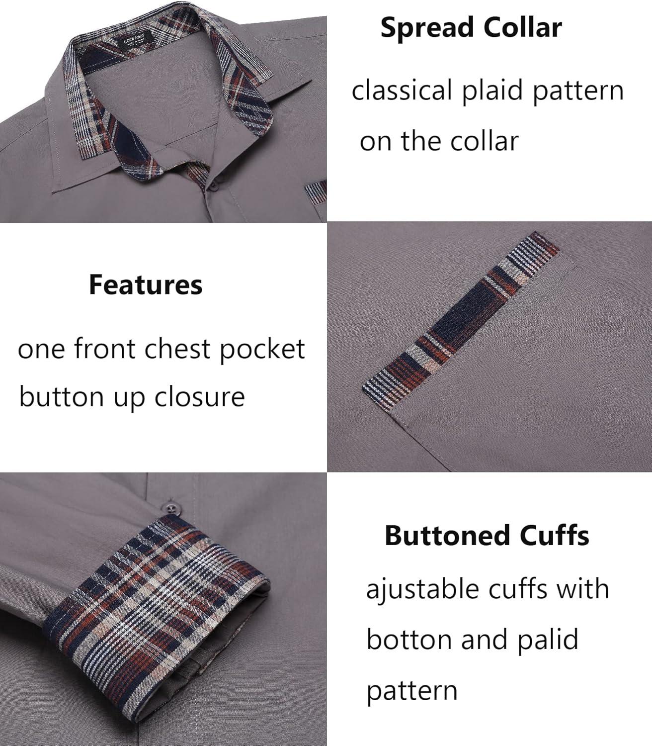 COOFANDY Mens Dress Shirts Wrinkle Free Long Sleeve Button Down Shirts Formal Business Shirt(Blue Middle Plaid)