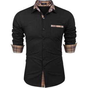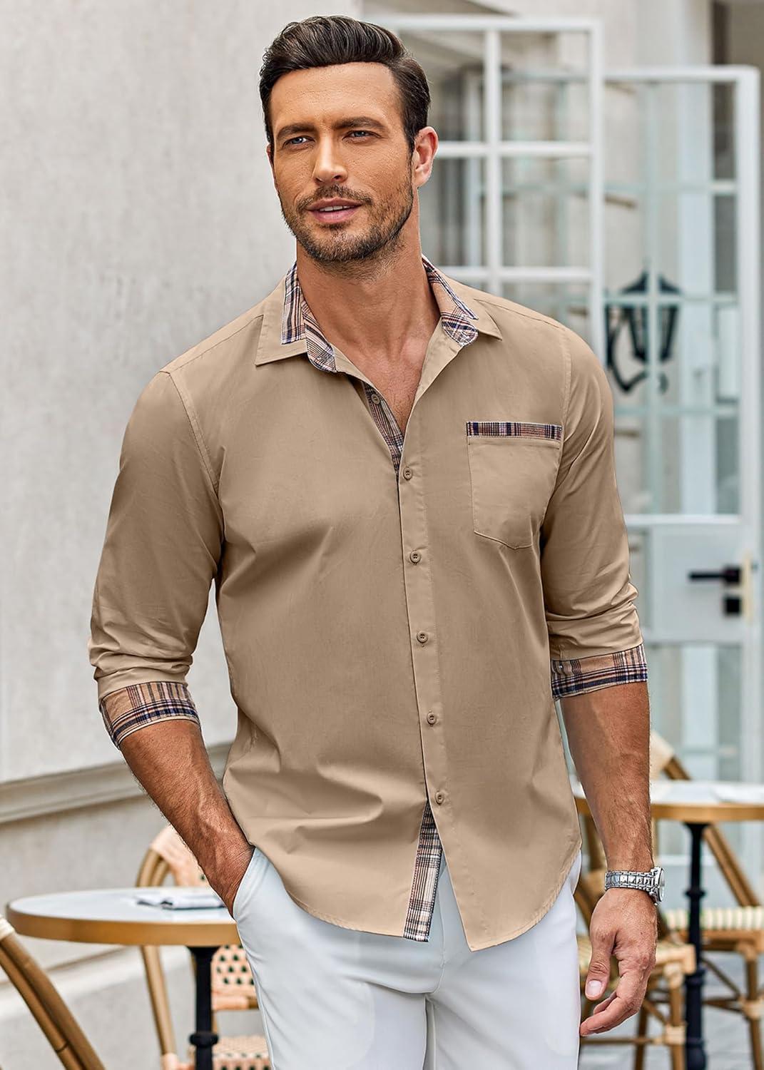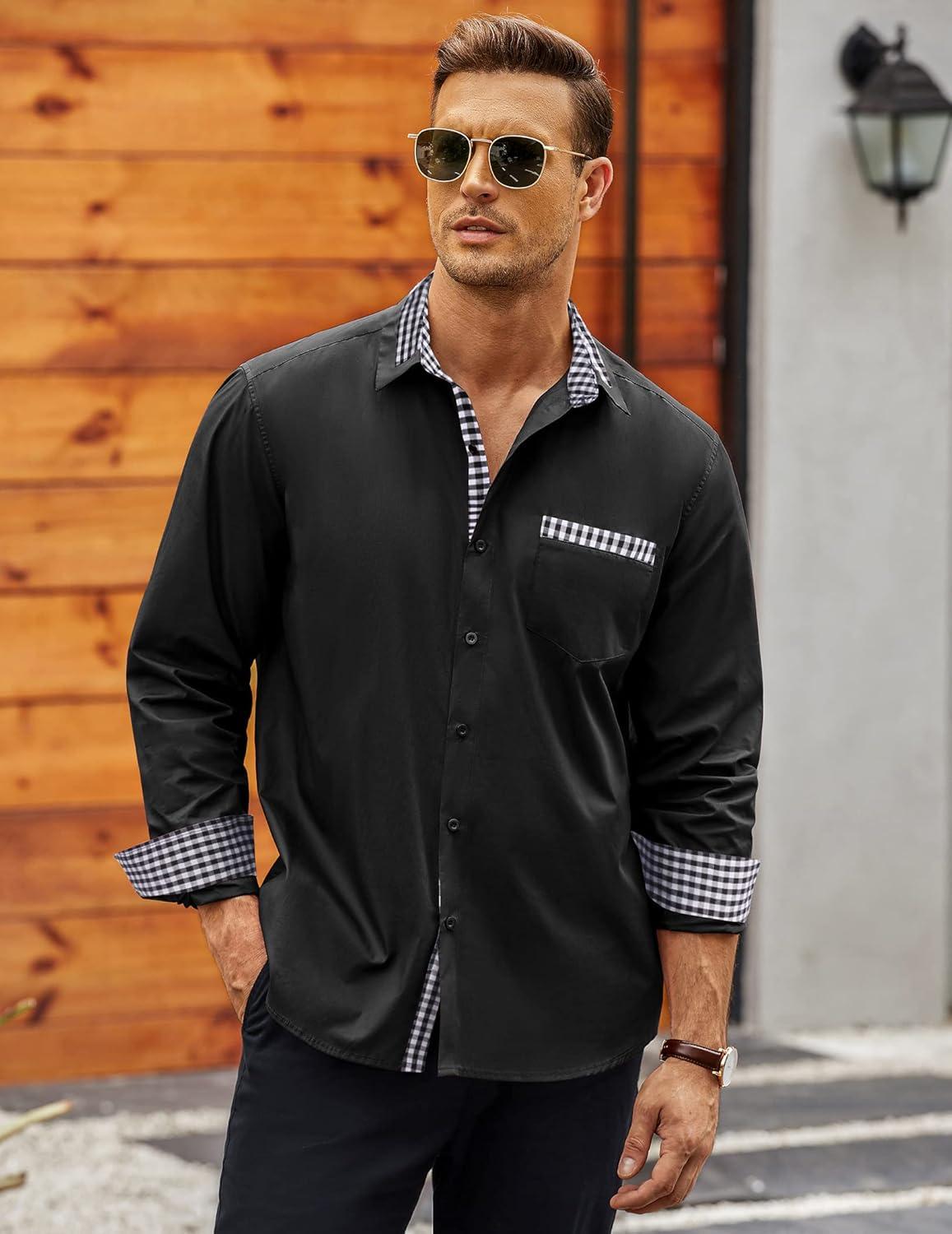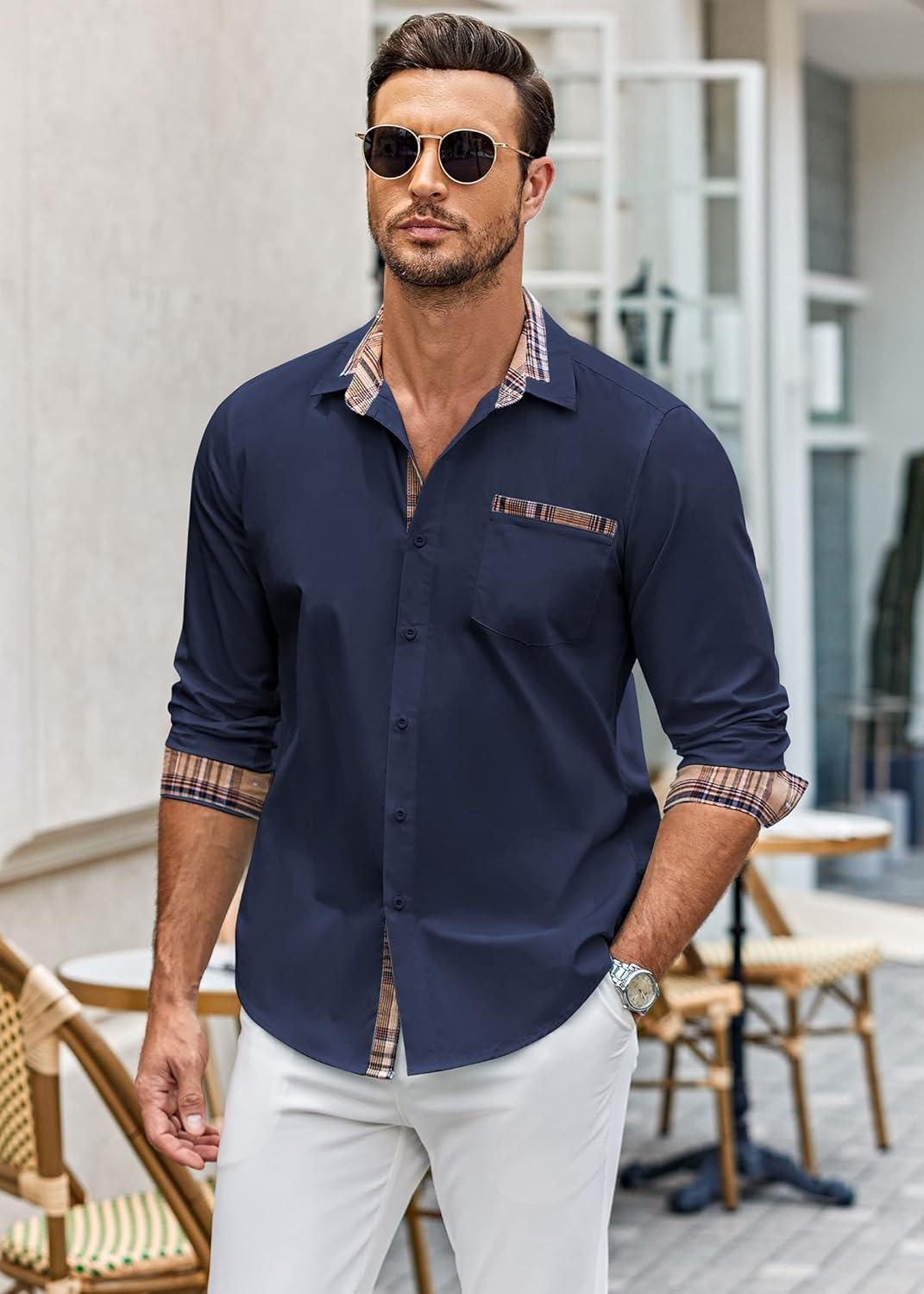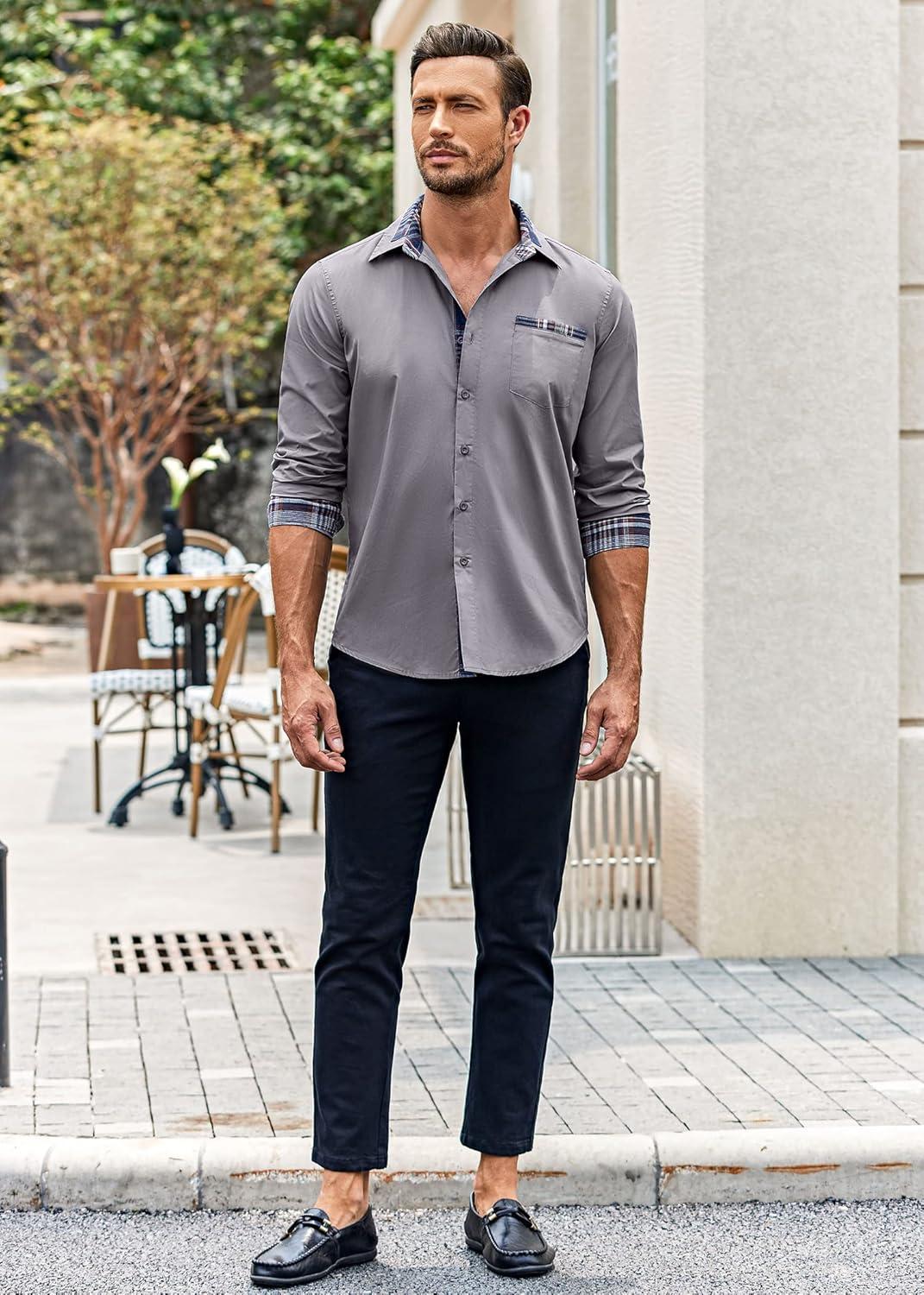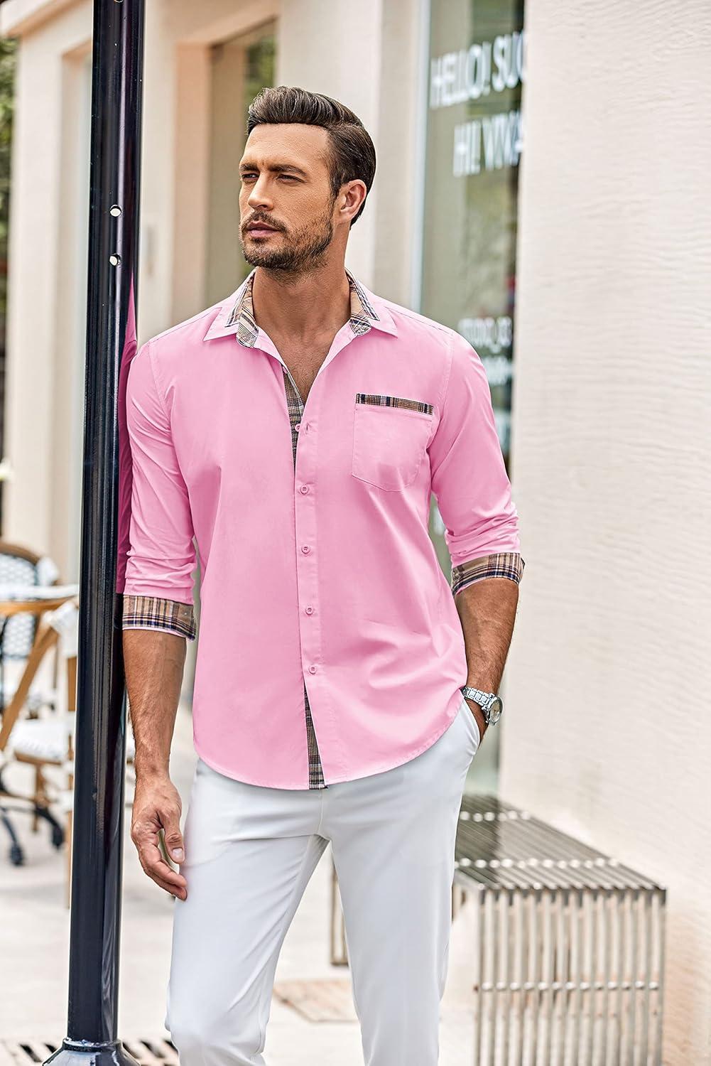 COOFANDY Mens Dress Shirts Wrinkle Free Long Sleeve Button Down Shirts Formal Business Shirt(Blue Middle Plaid)