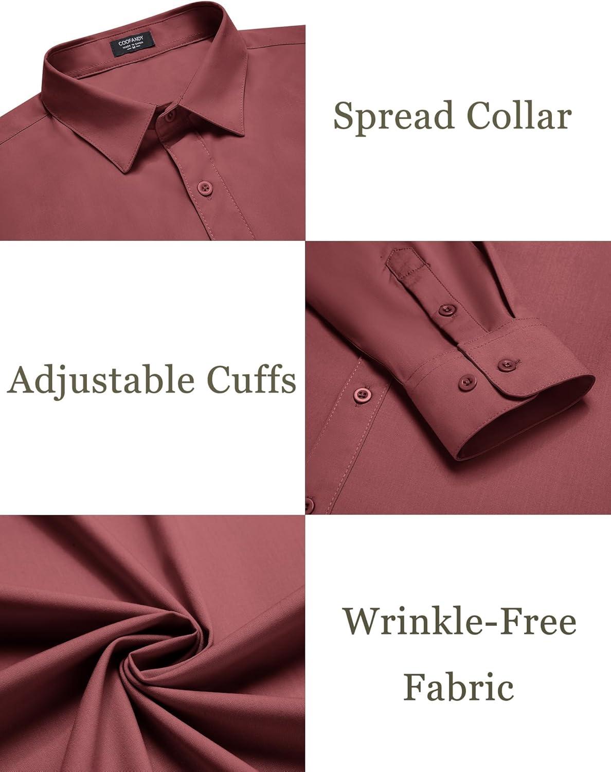 • COOFANDY Mens Casual Button Down Shirt Untucked Long Sleeve Stretch Denim Dress Shirt(Purple Red)