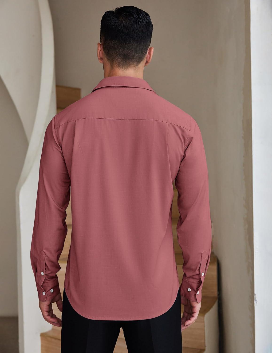 • COOFANDY Mens Casual Button Down Shirt Untucked Long Sleeve Stretch Denim Dress Shirt(Pink)