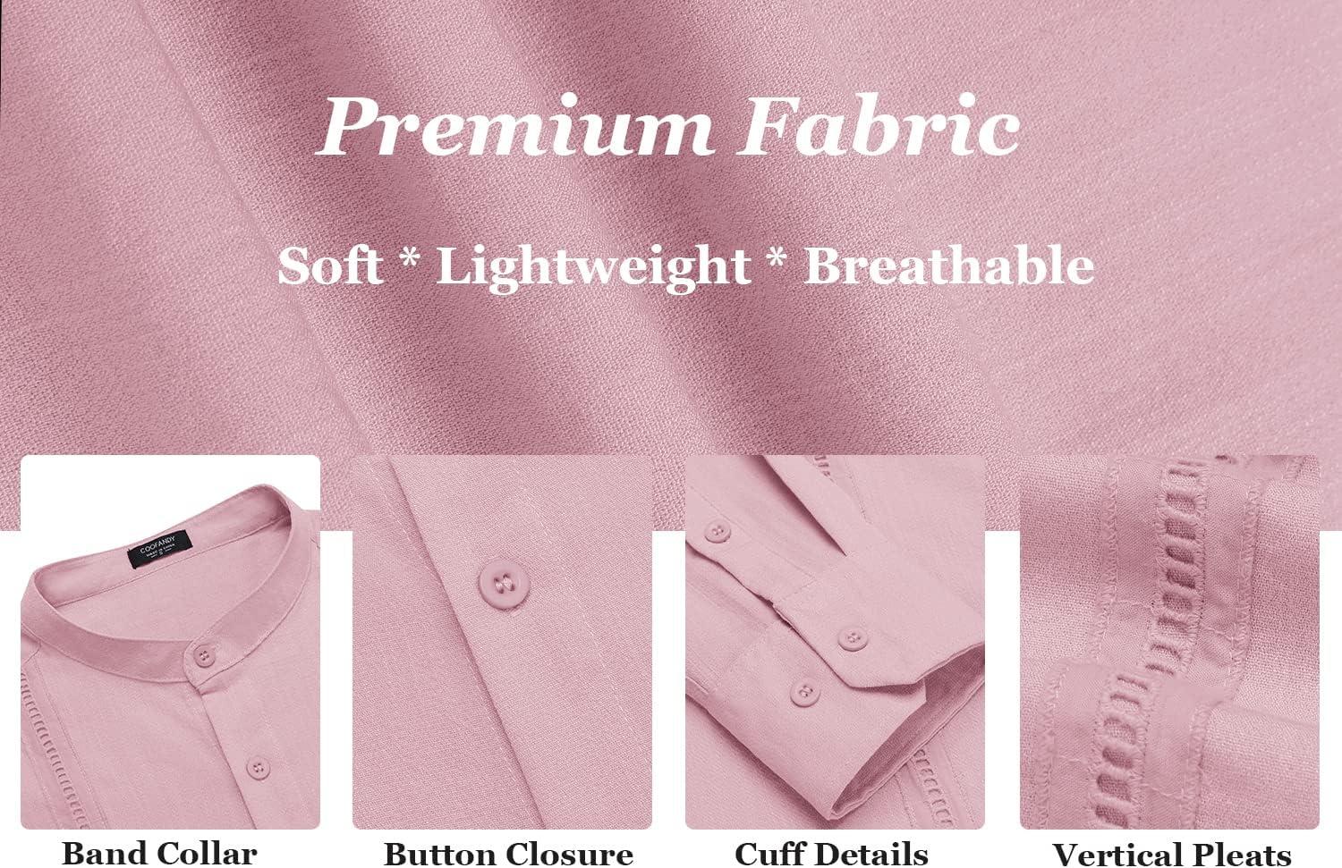 COOFANDY Men’s Cuban Guayabera Shirts Casual Long Sleeve Button Down Shirts Band Collar Linen Summer Beach Shirts(Baby Blue)
