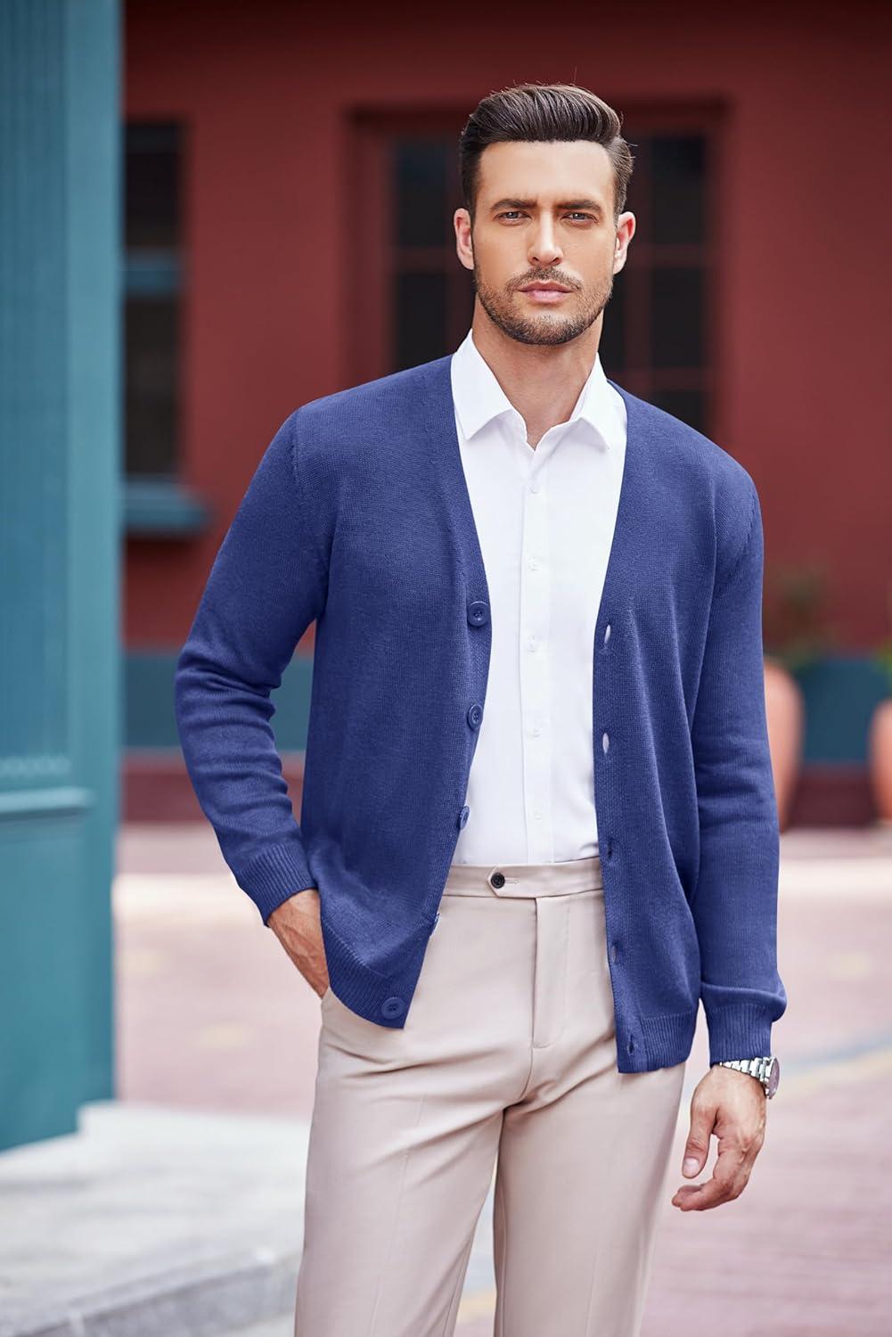 • COOFANDY Men’s V Neck Cardigan Sweater Casual Lightweight Button Down Knitted Cardigan Sweater(All White)