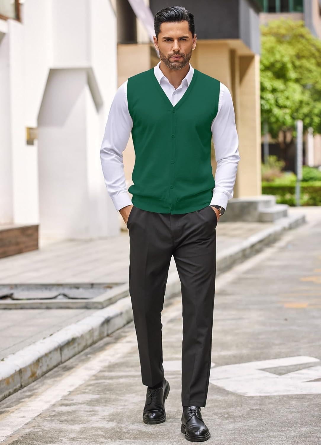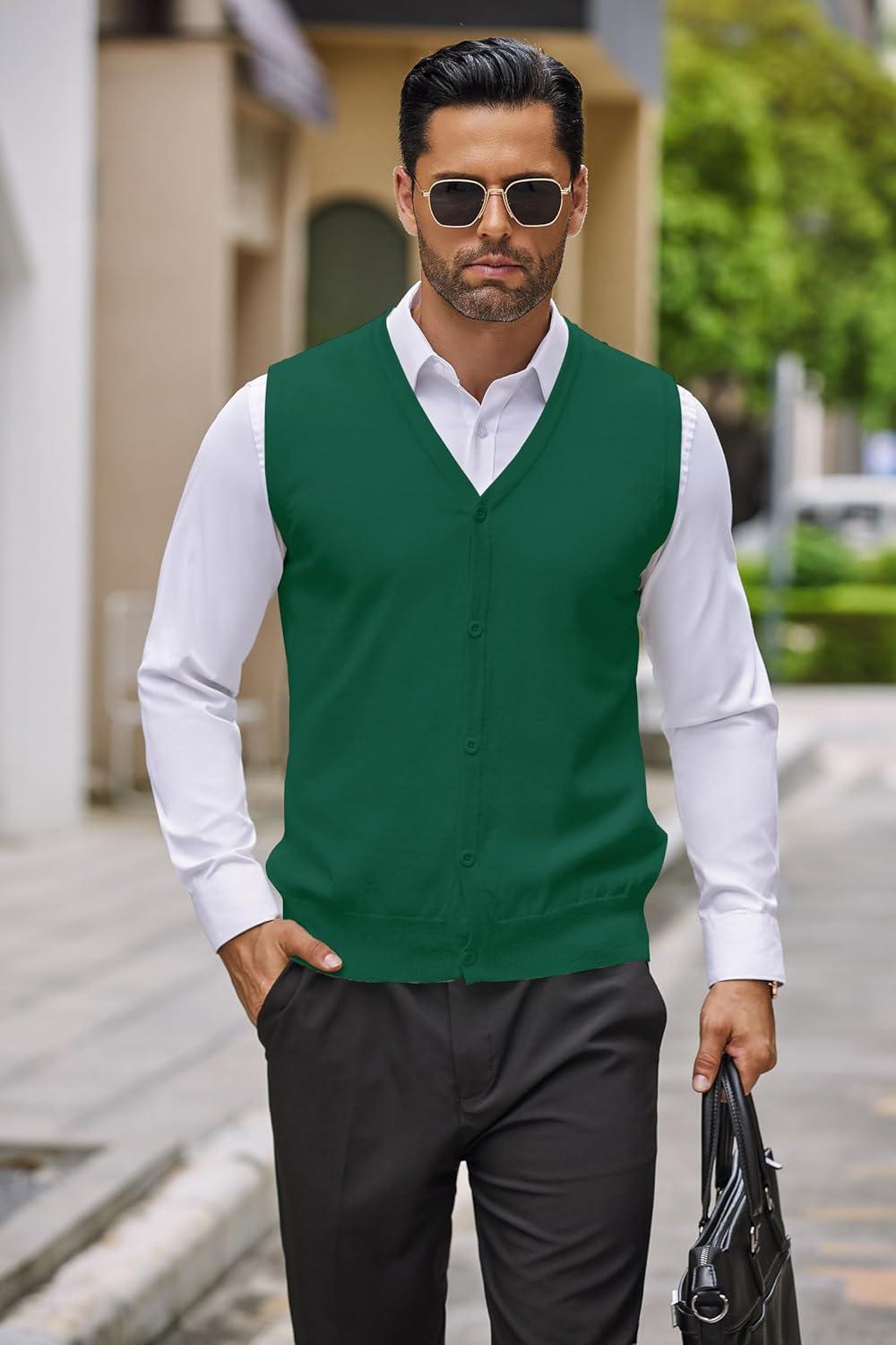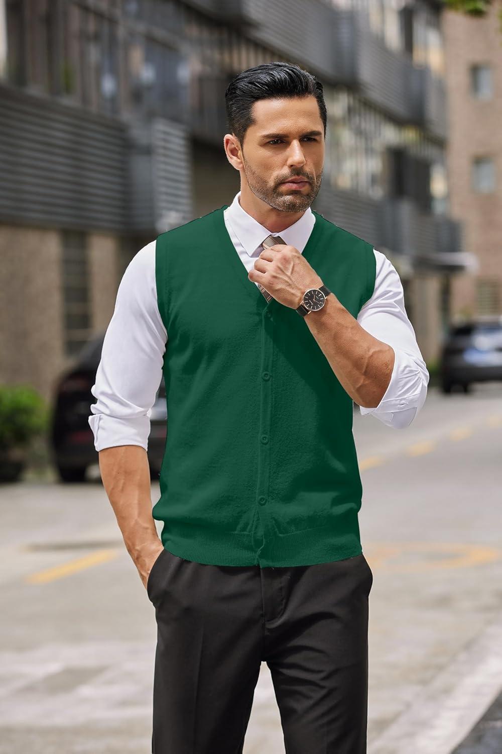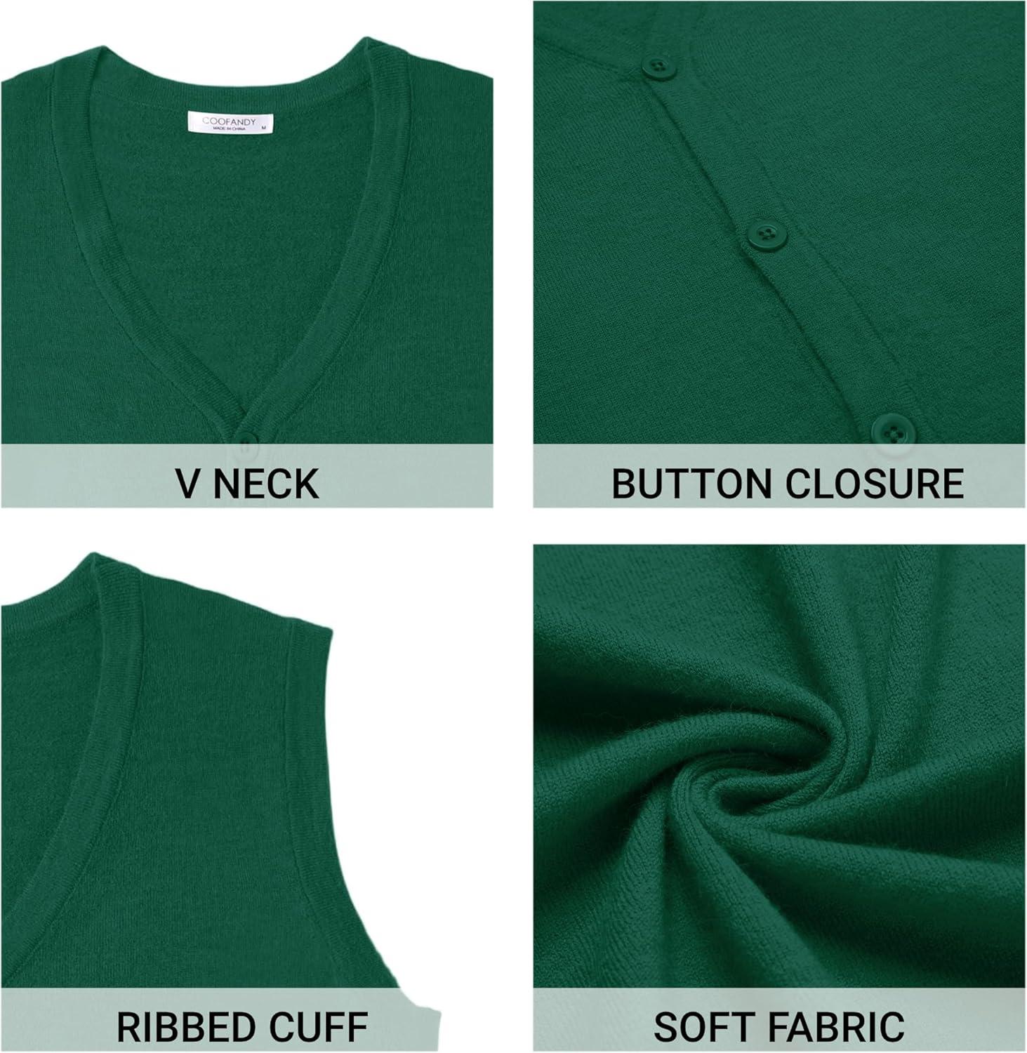 • COOFANDY Men’s Sweater Vest V Neck Casual Sleeveless Knitted Button Cardigan Vest(Dark Green)