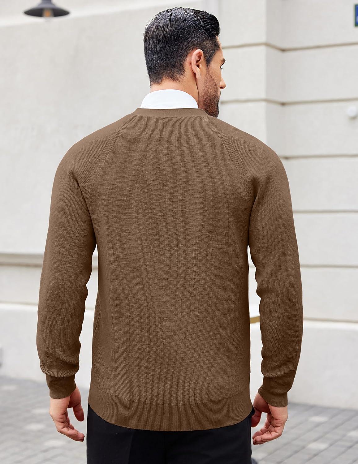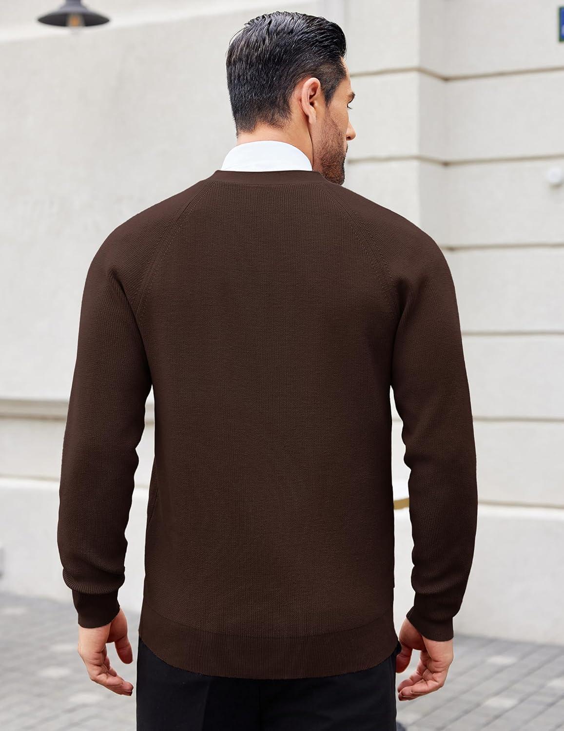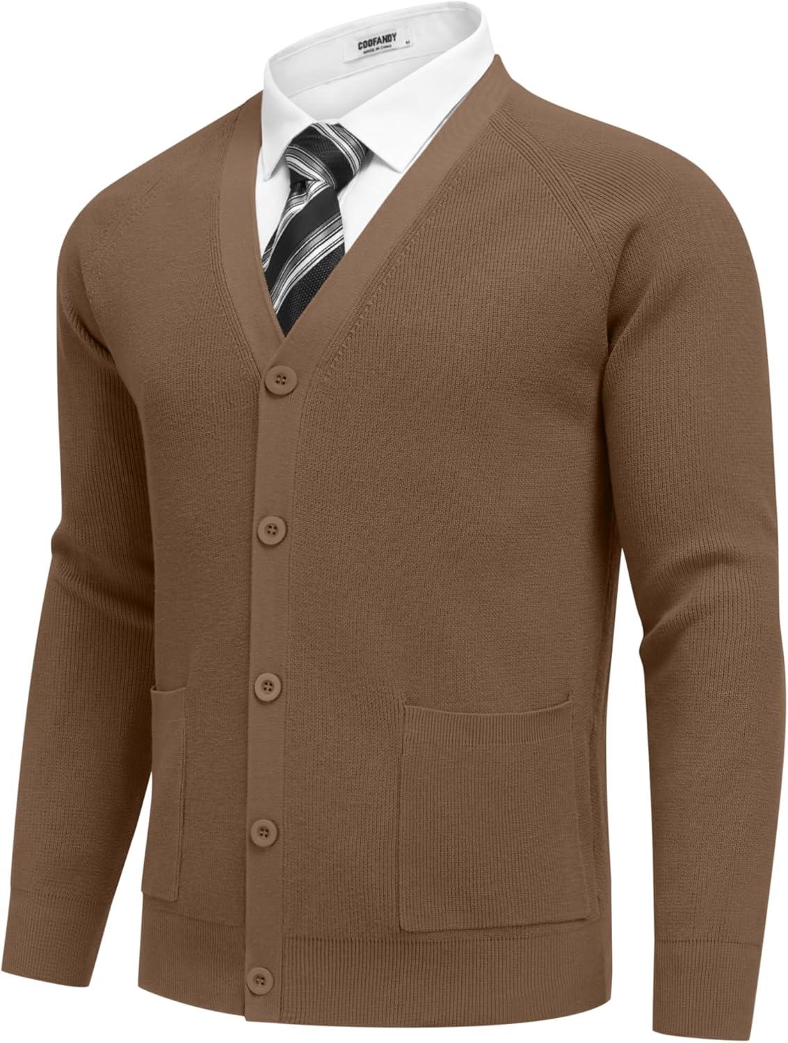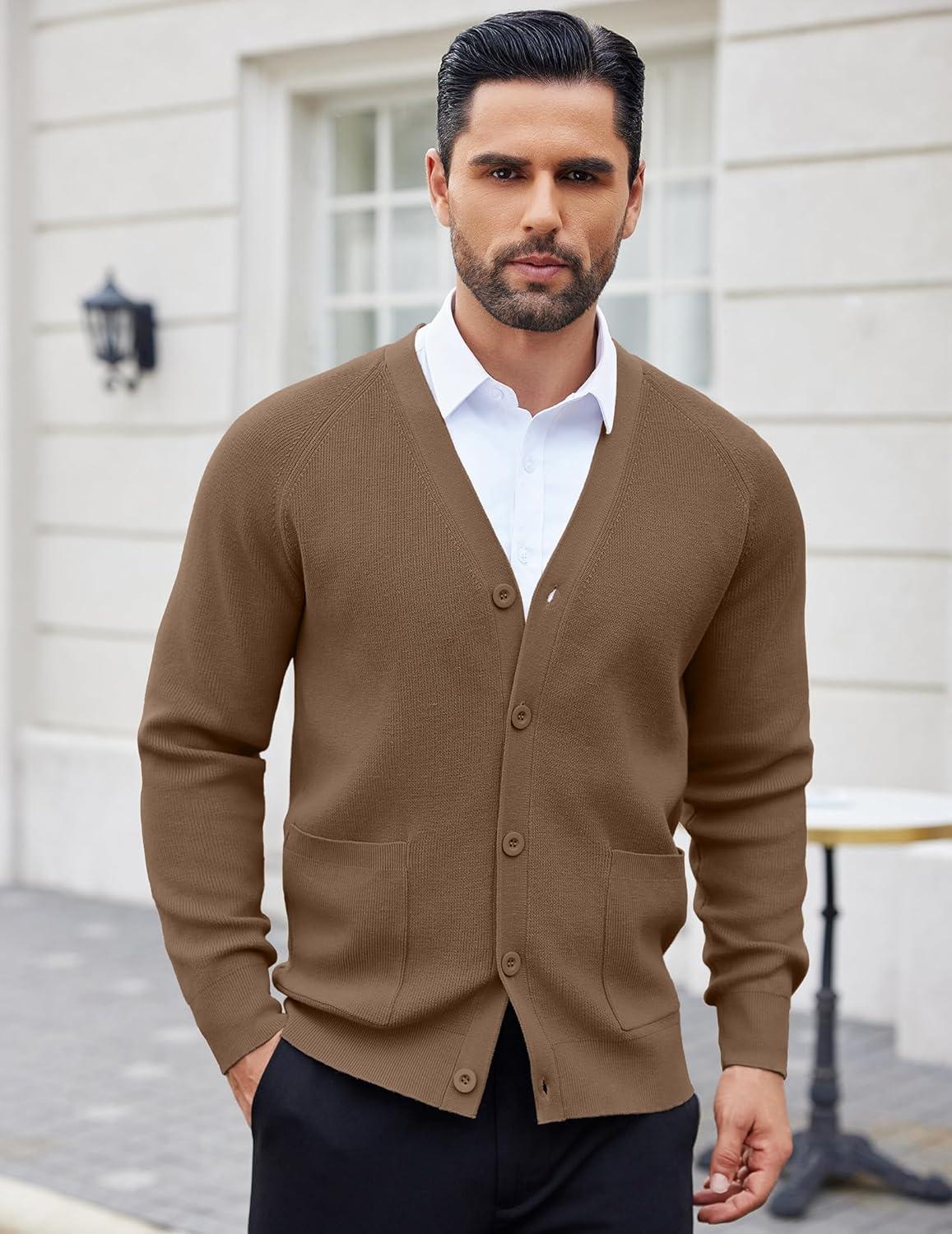 COOFANDY Men’s Cardigan Sweaters with Button Lightweight Casual V Neck Long Sleeve Pockets Knitted Sweater(Brown)