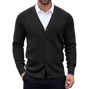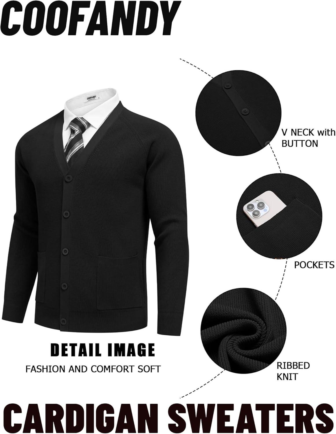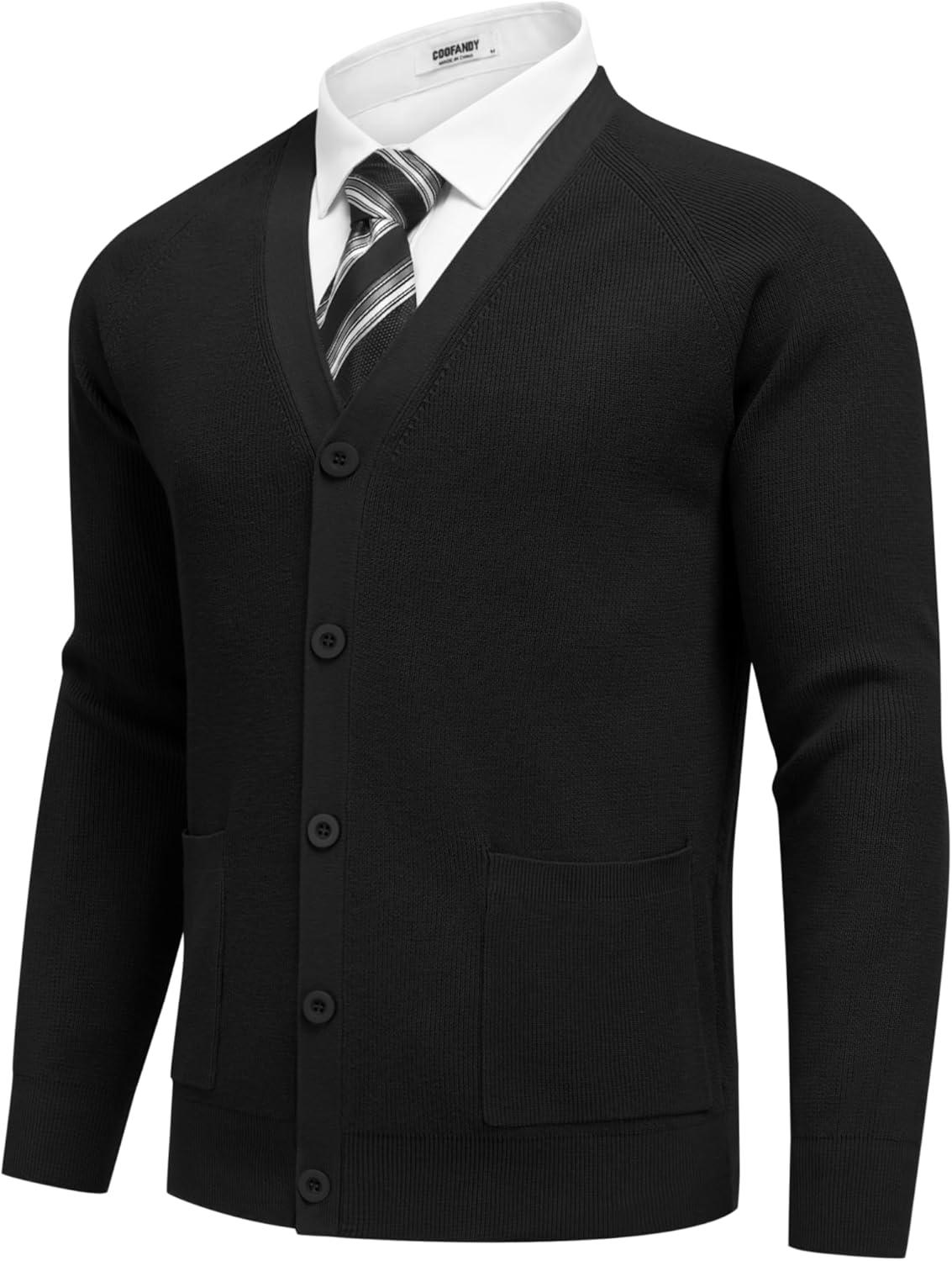 COOFANDY Men’s Cardigan Sweaters with Button Lightweight Casual V Neck Long Sleeve Pockets Knitted Sweater(Black)