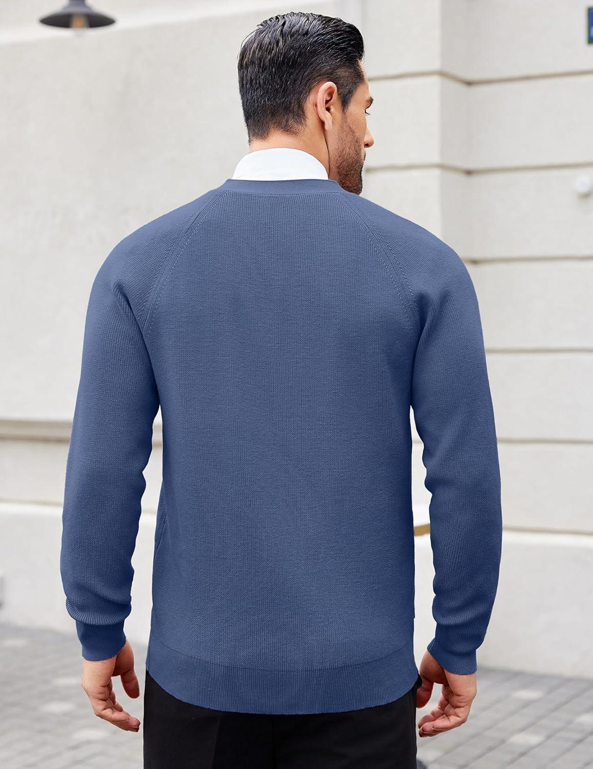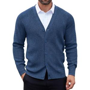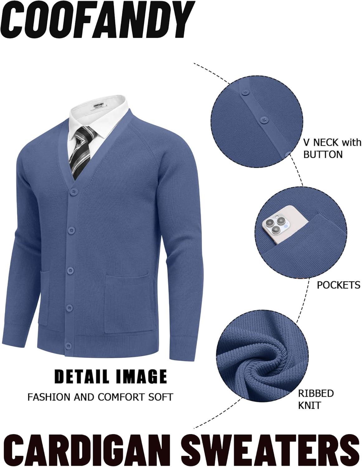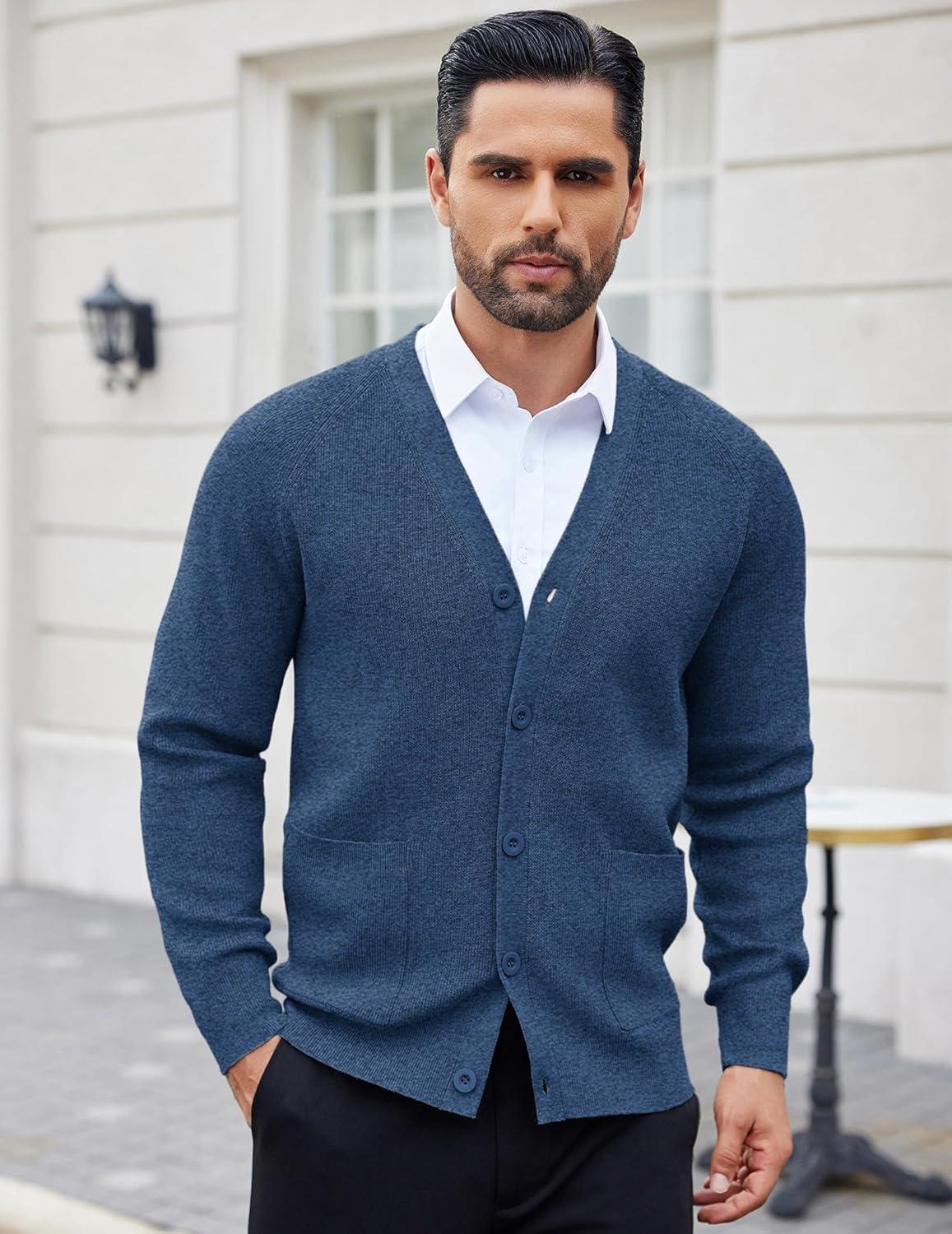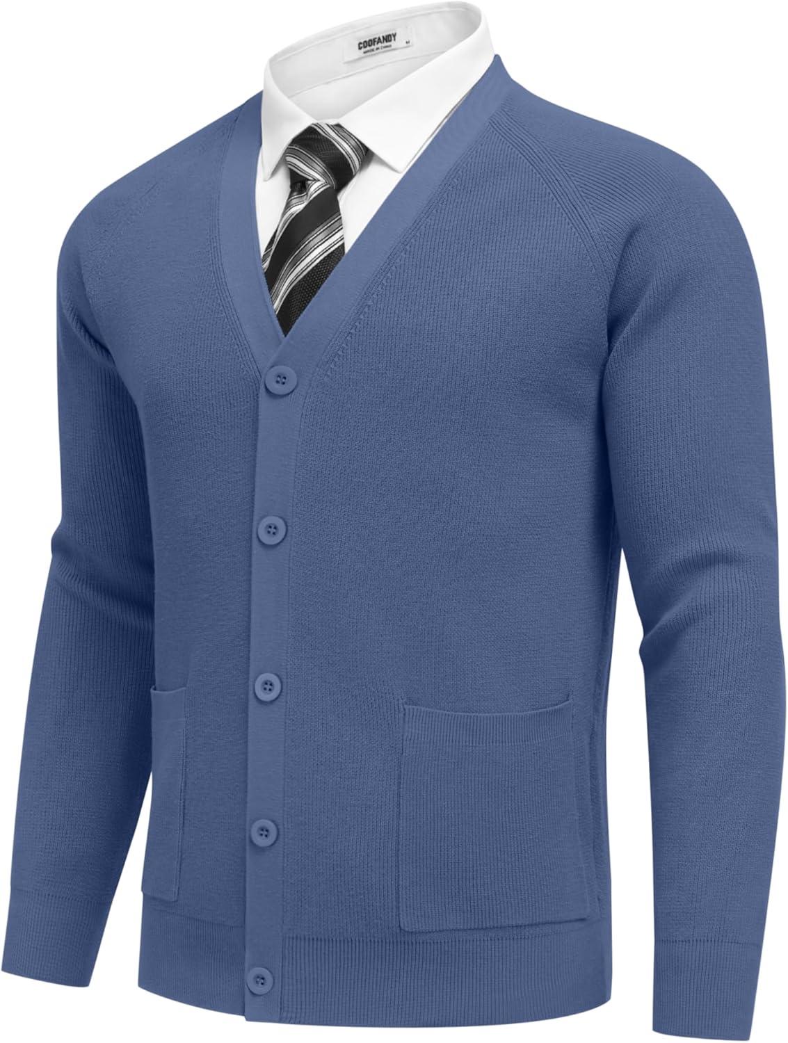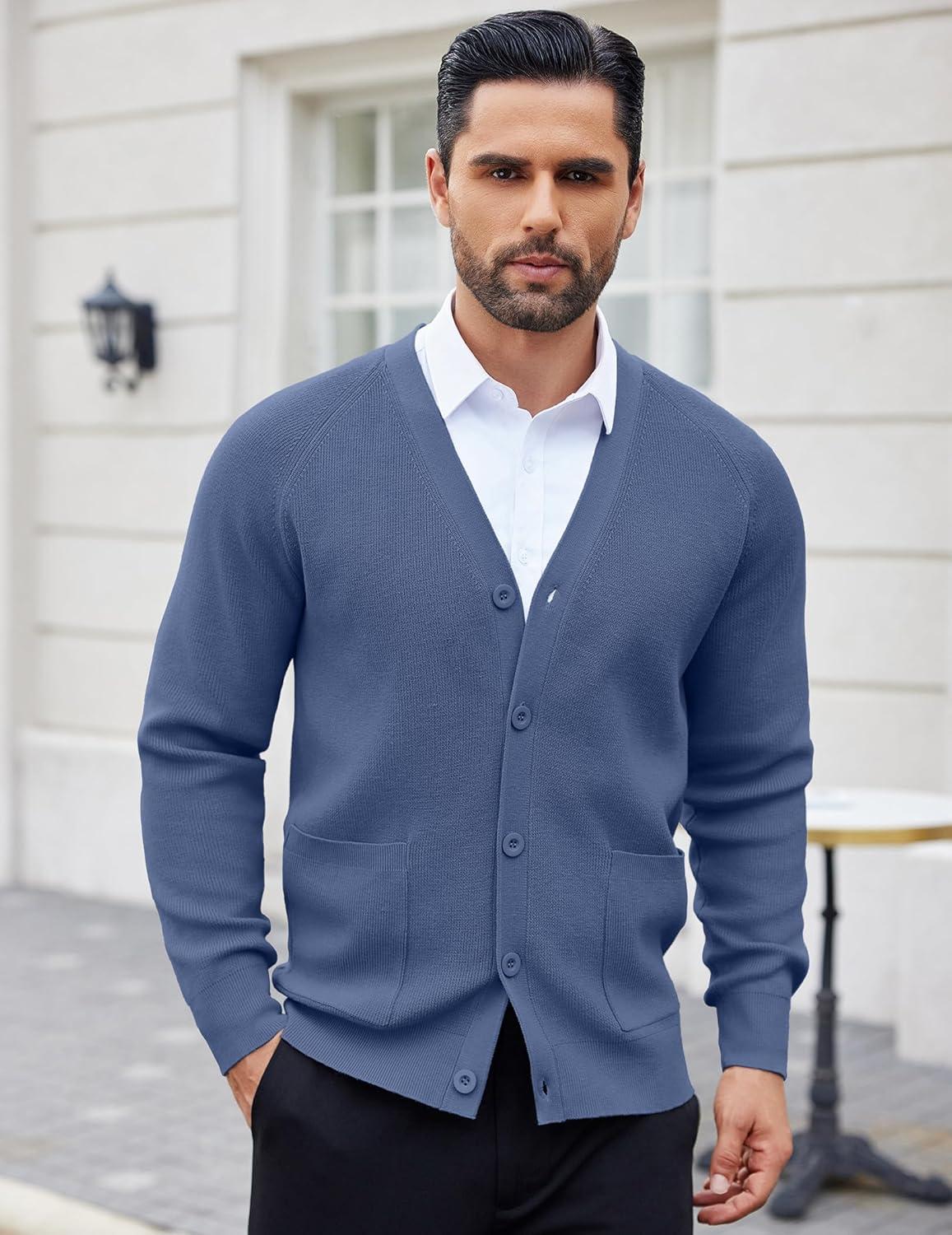 COOFANDY Men’s Cardigan Sweaters with Button Lightweight Casual V Neck Long Sleeve Pockets Knitted Sweater(Dusty Blue)