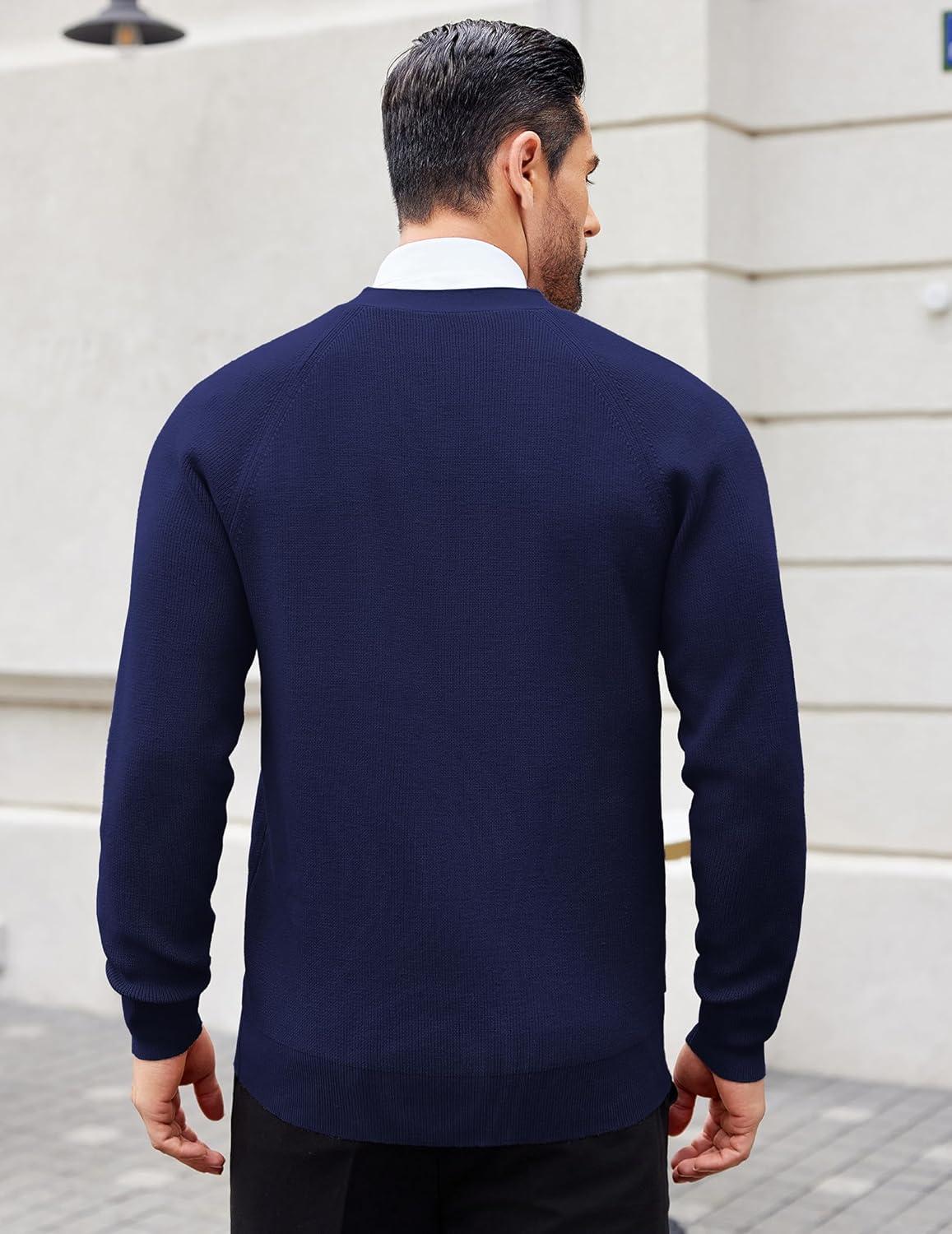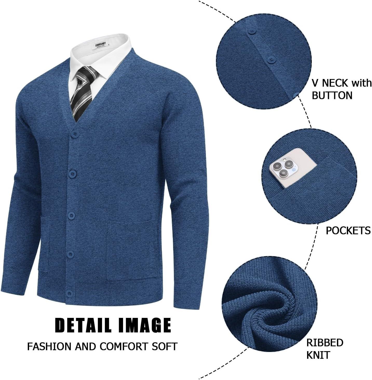 COOFANDY Men’s Cardigan Sweaters with Button Lightweight Casual V Neck Long Sleeve Pockets Knitted Sweater(Blue)
