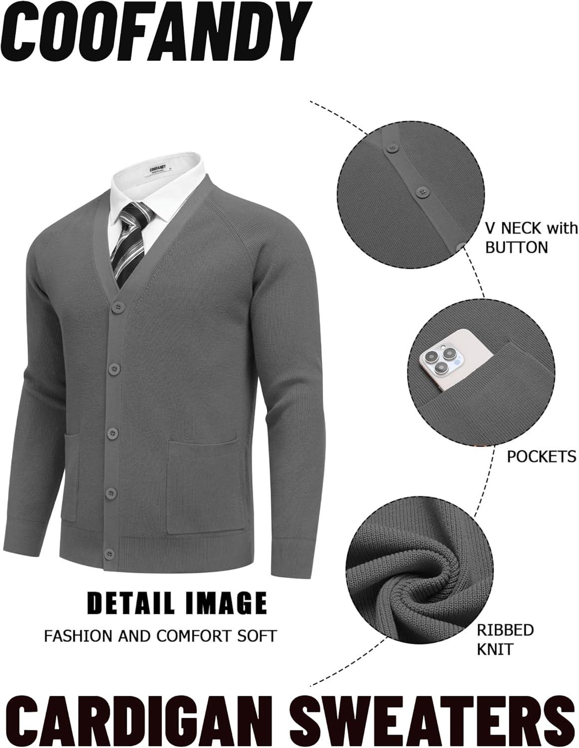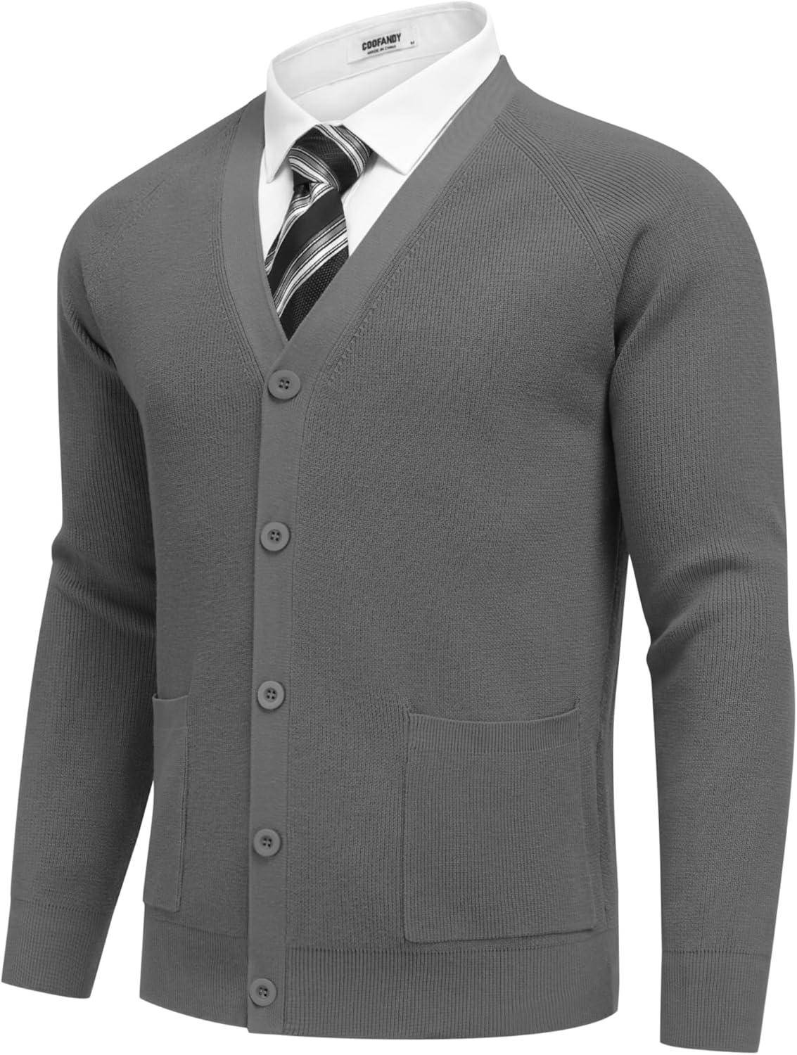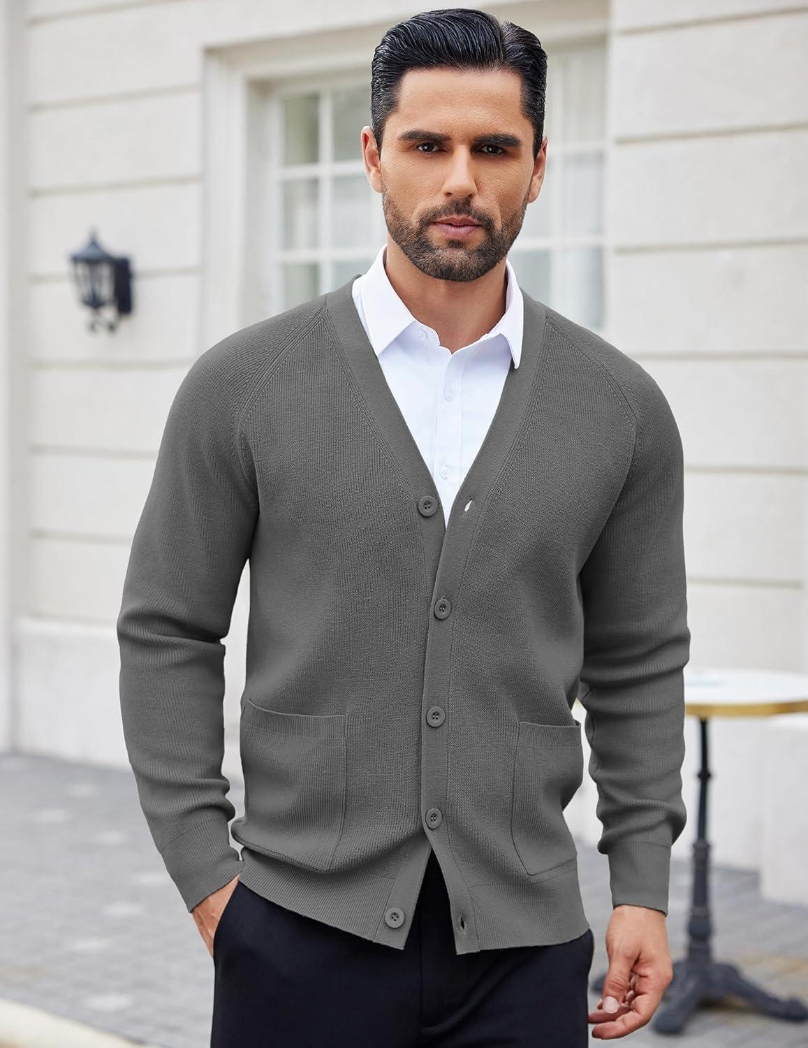 COOFANDY Men’s Cardigan Sweaters with Button Lightweight Casual V Neck Long Sleeve Pockets Knitted Sweater(Dark Grey)