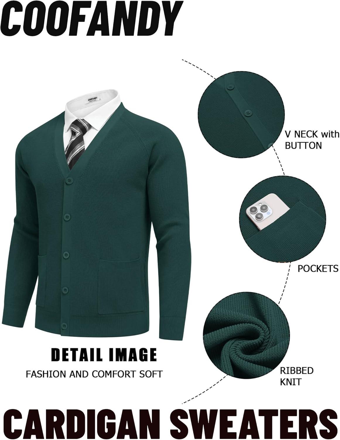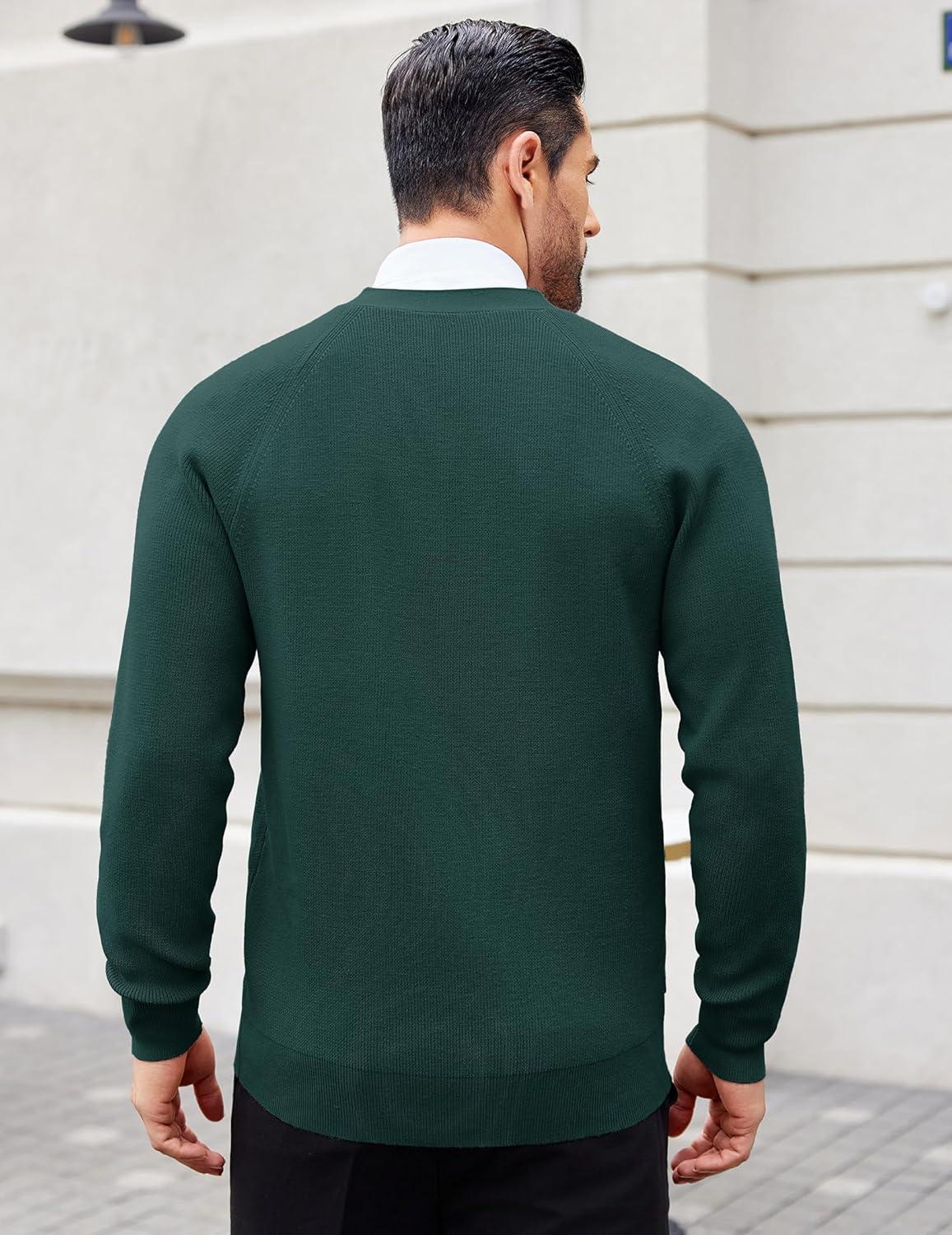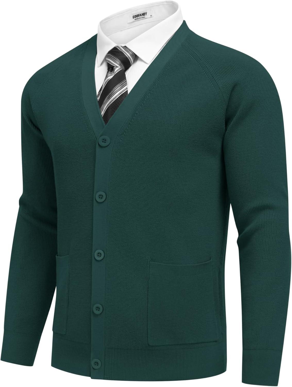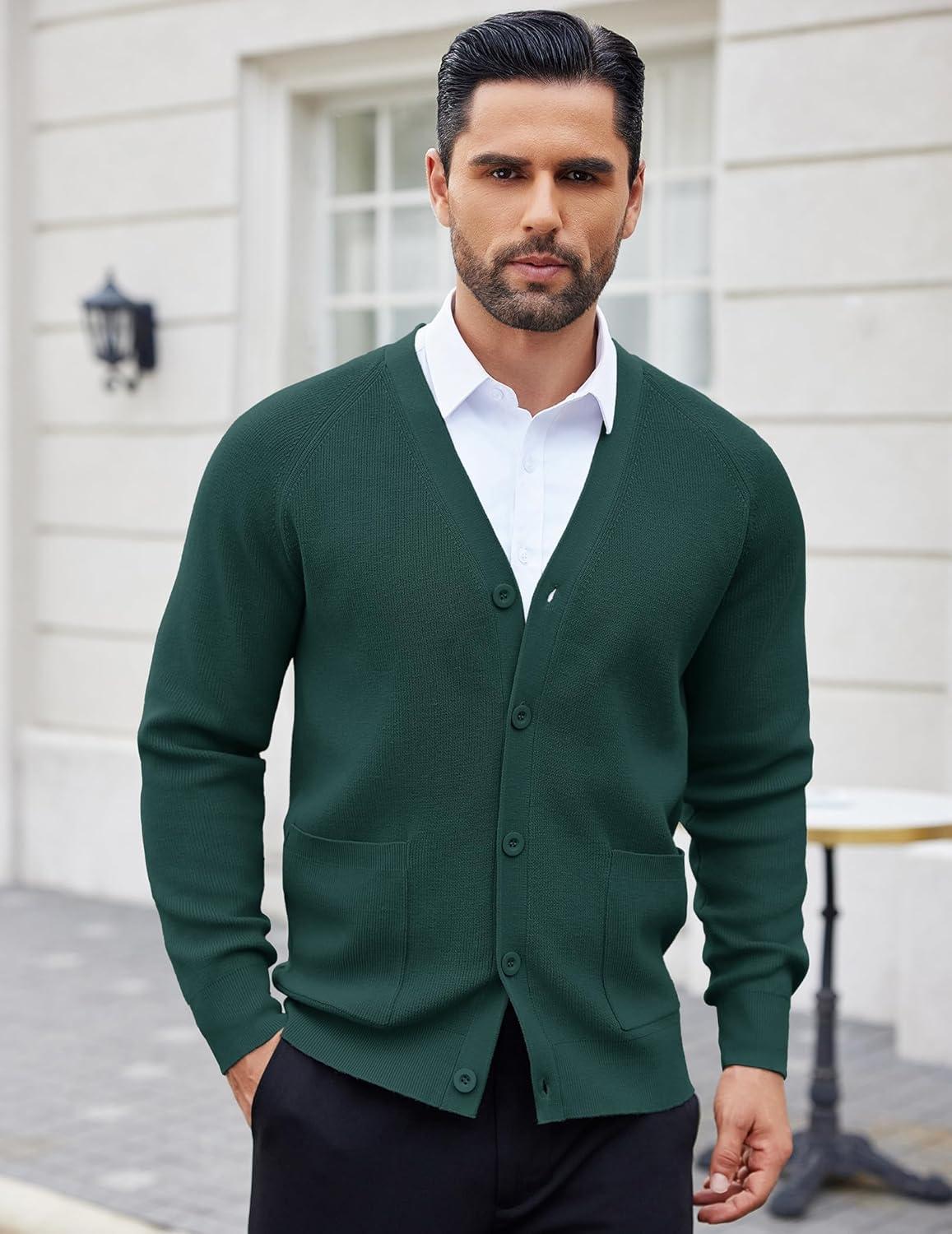 COOFANDY Men’s Cardigan Sweaters with Button Lightweight Casual V Neck Long Sleeve Pockets Knitted Sweater(Green)