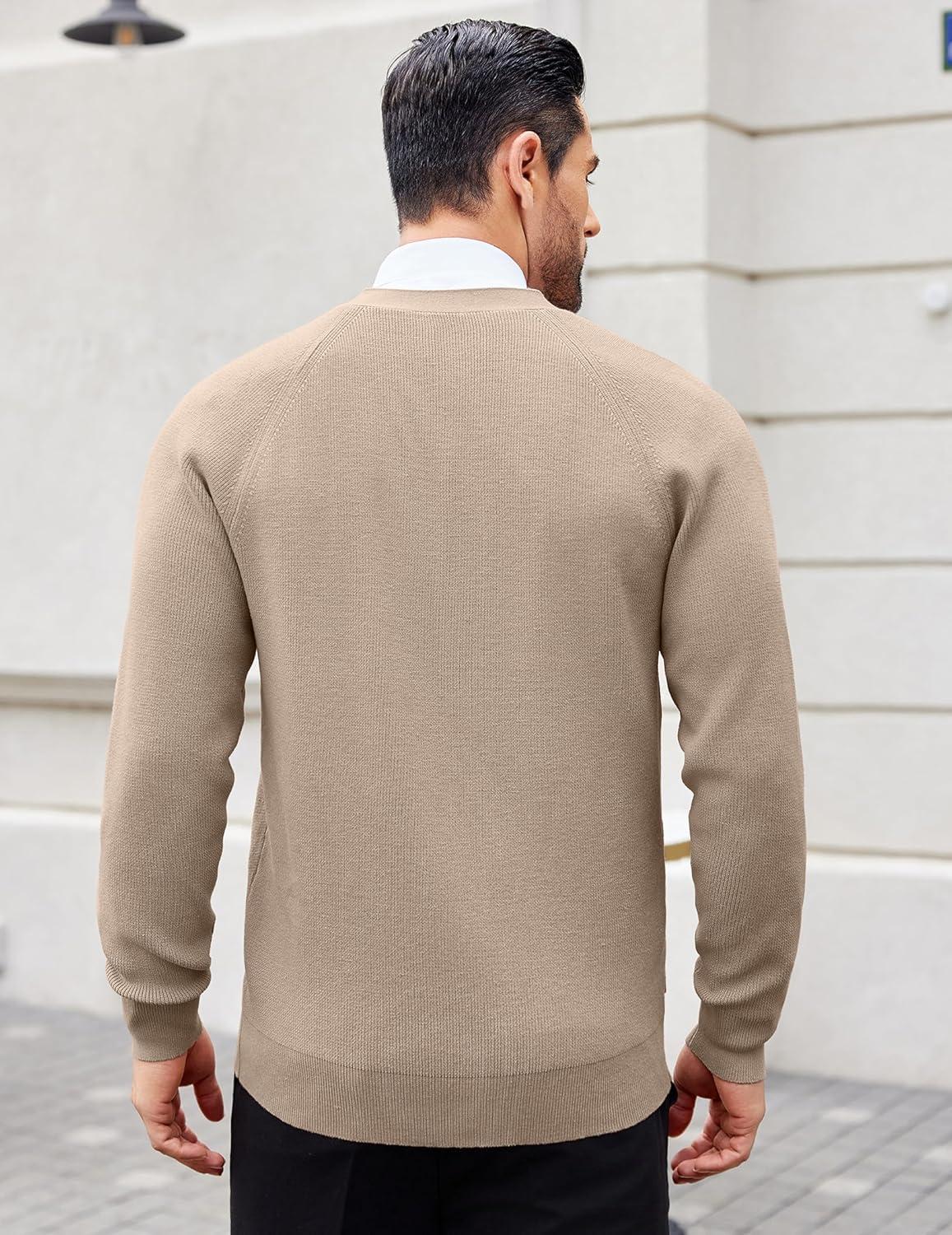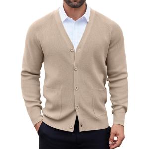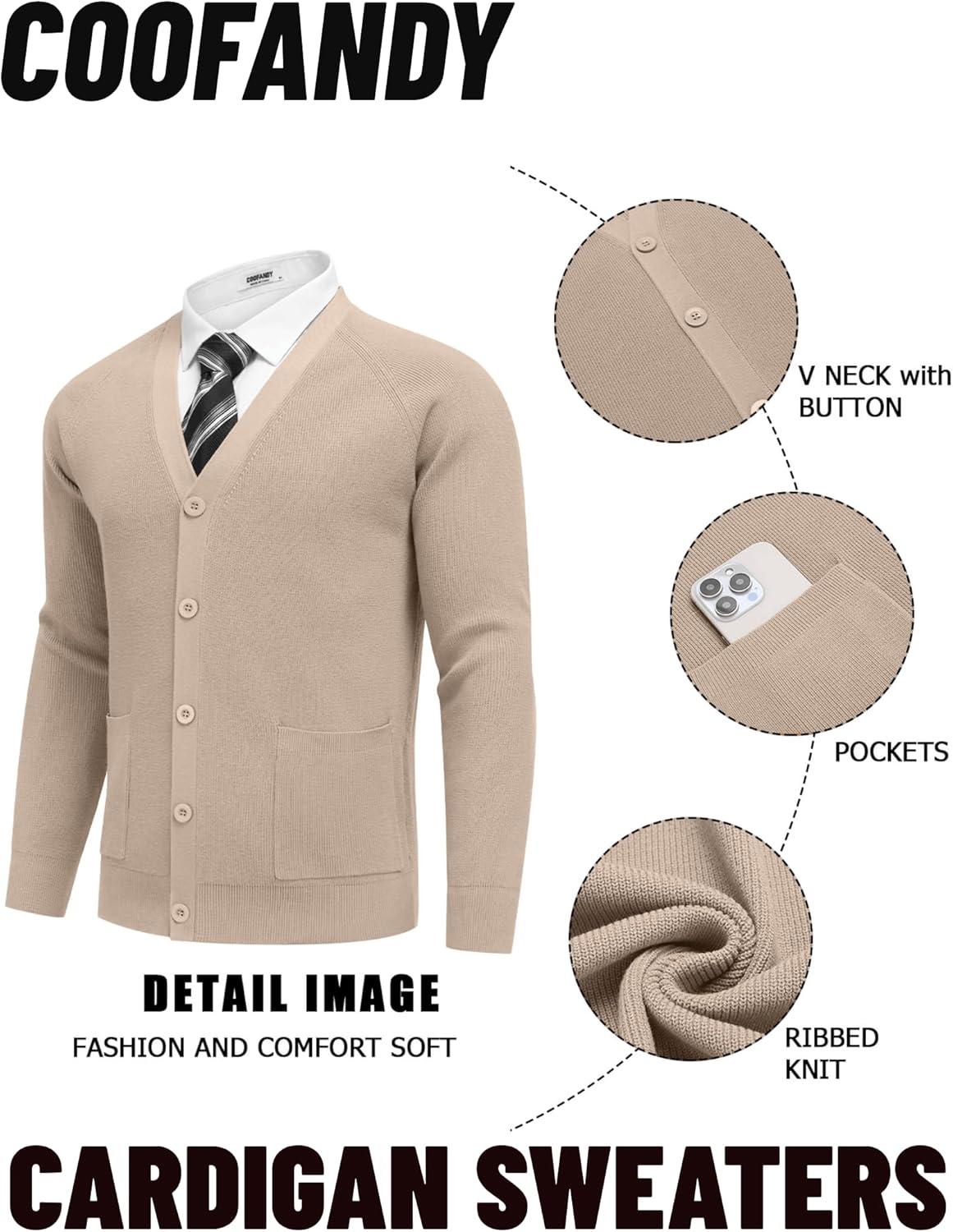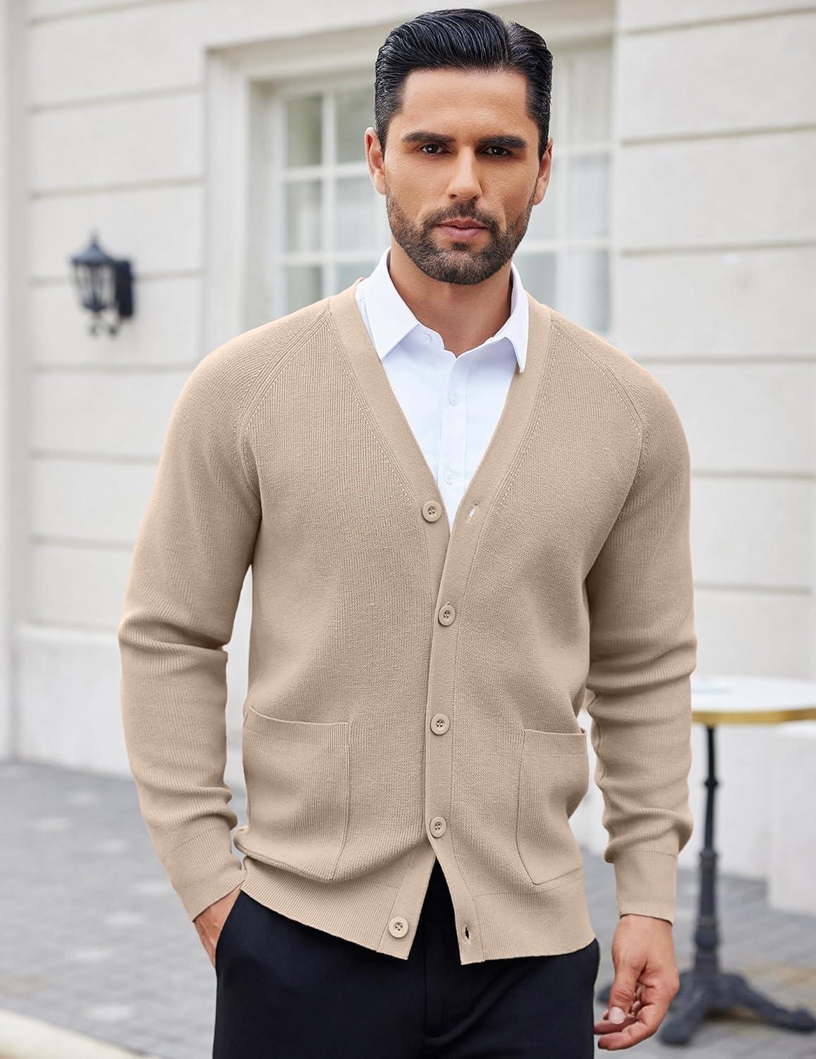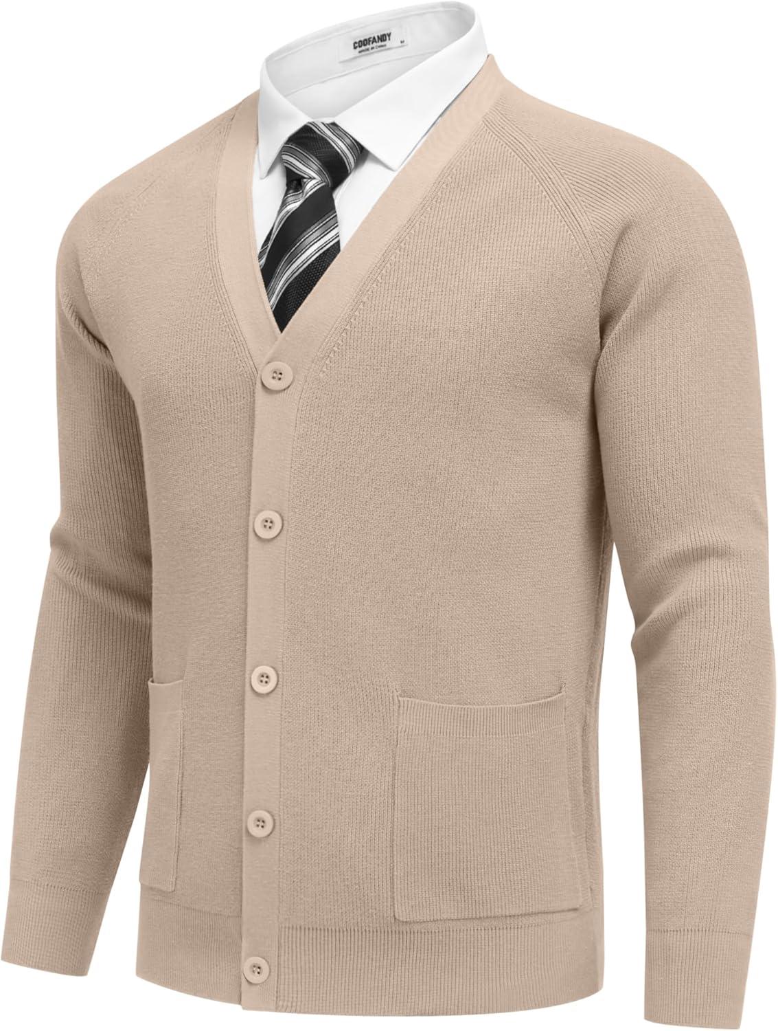COOFANDY Men’s Cardigan Sweaters with Button Lightweight Casual V Neck Long Sleeve Pockets Knitted Sweater(Kahki)