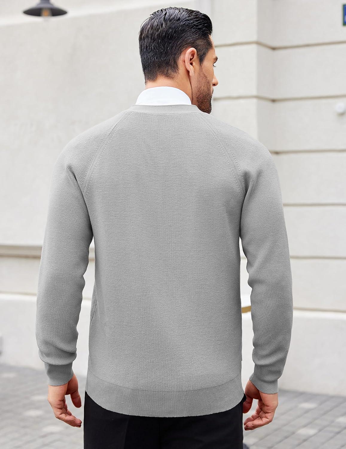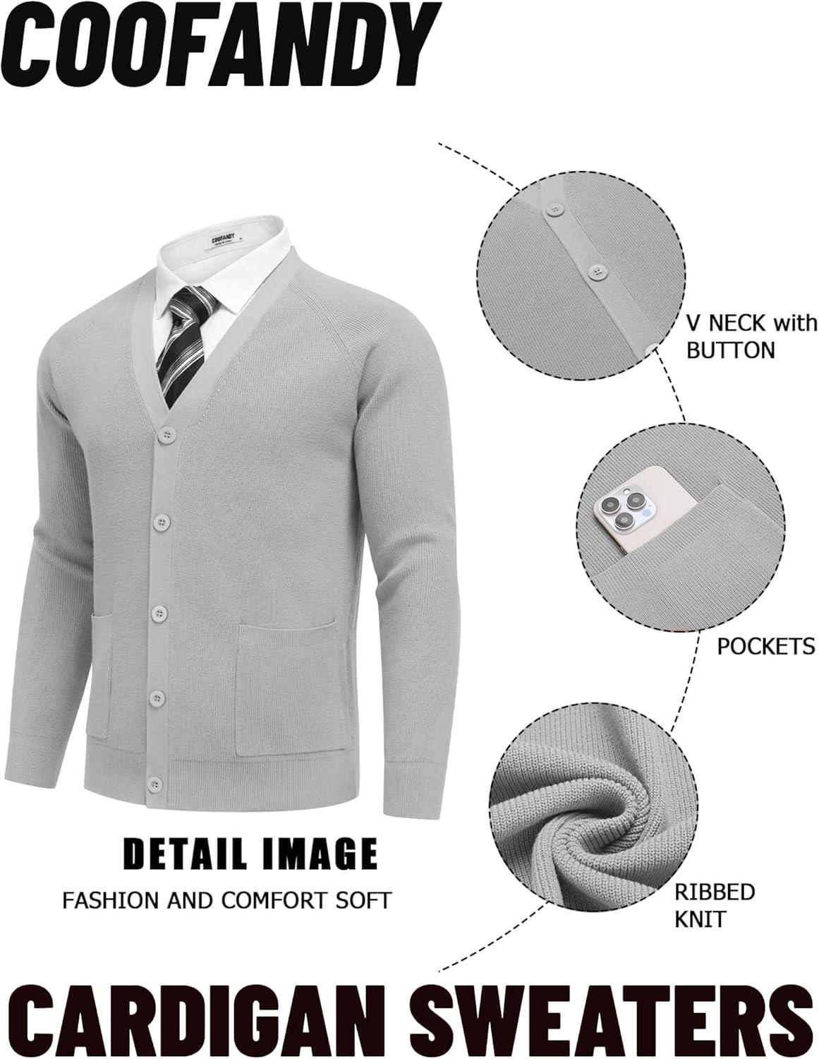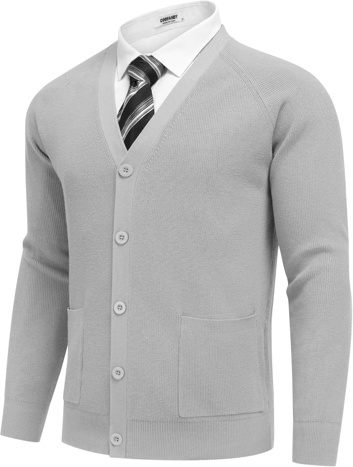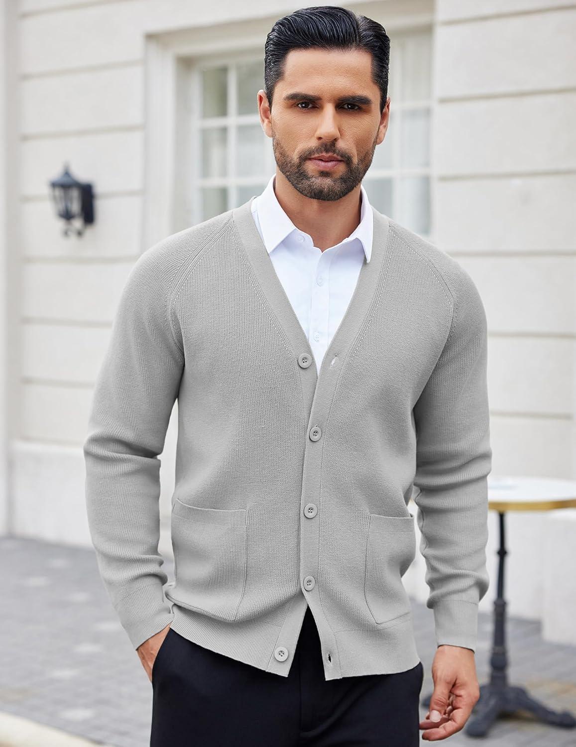 COOFANDY Men’s Cardigan Sweaters with Button Lightweight Casual V Neck Long Sleeve Pockets Knitted Sweater(Light Grey)