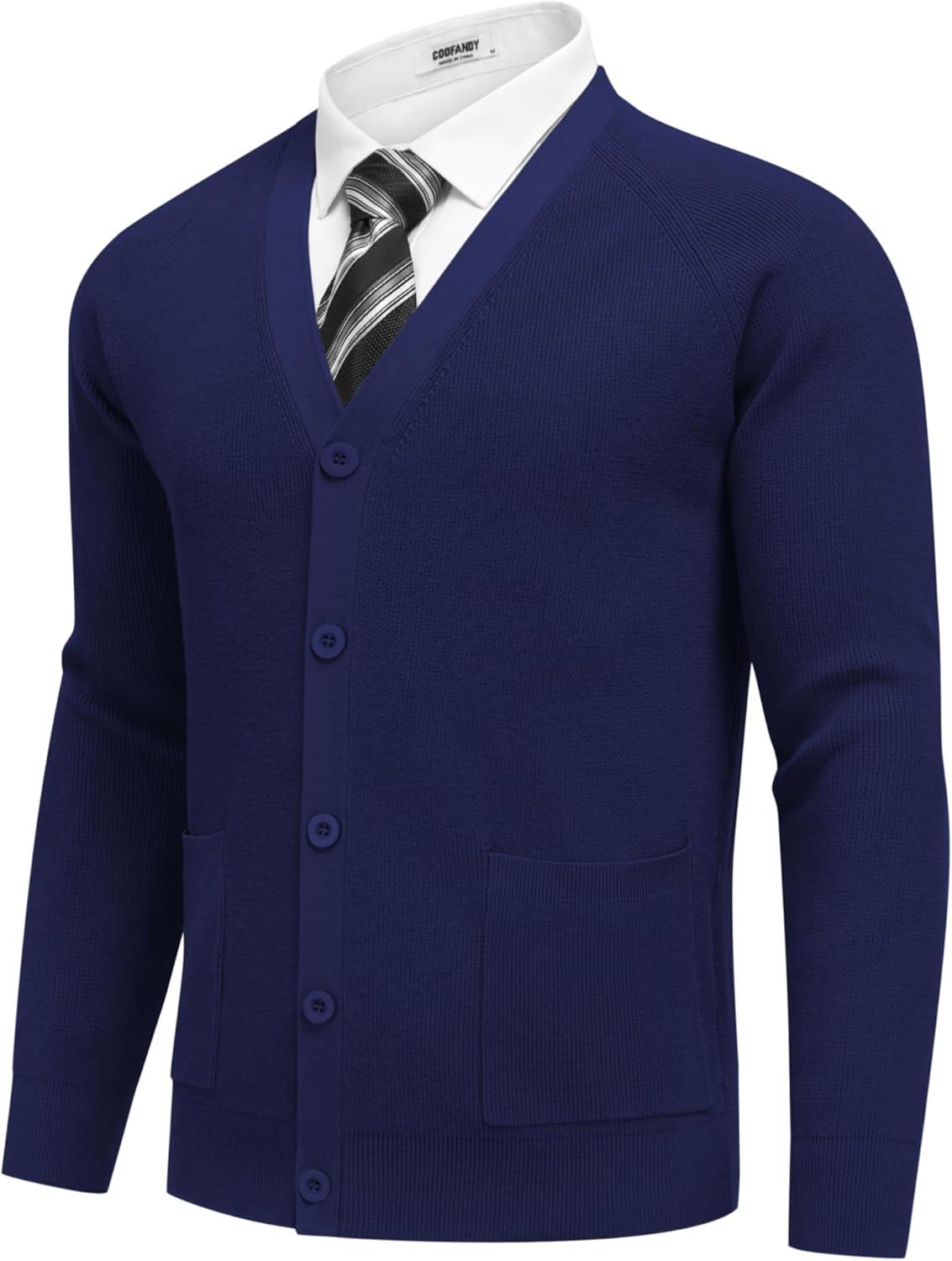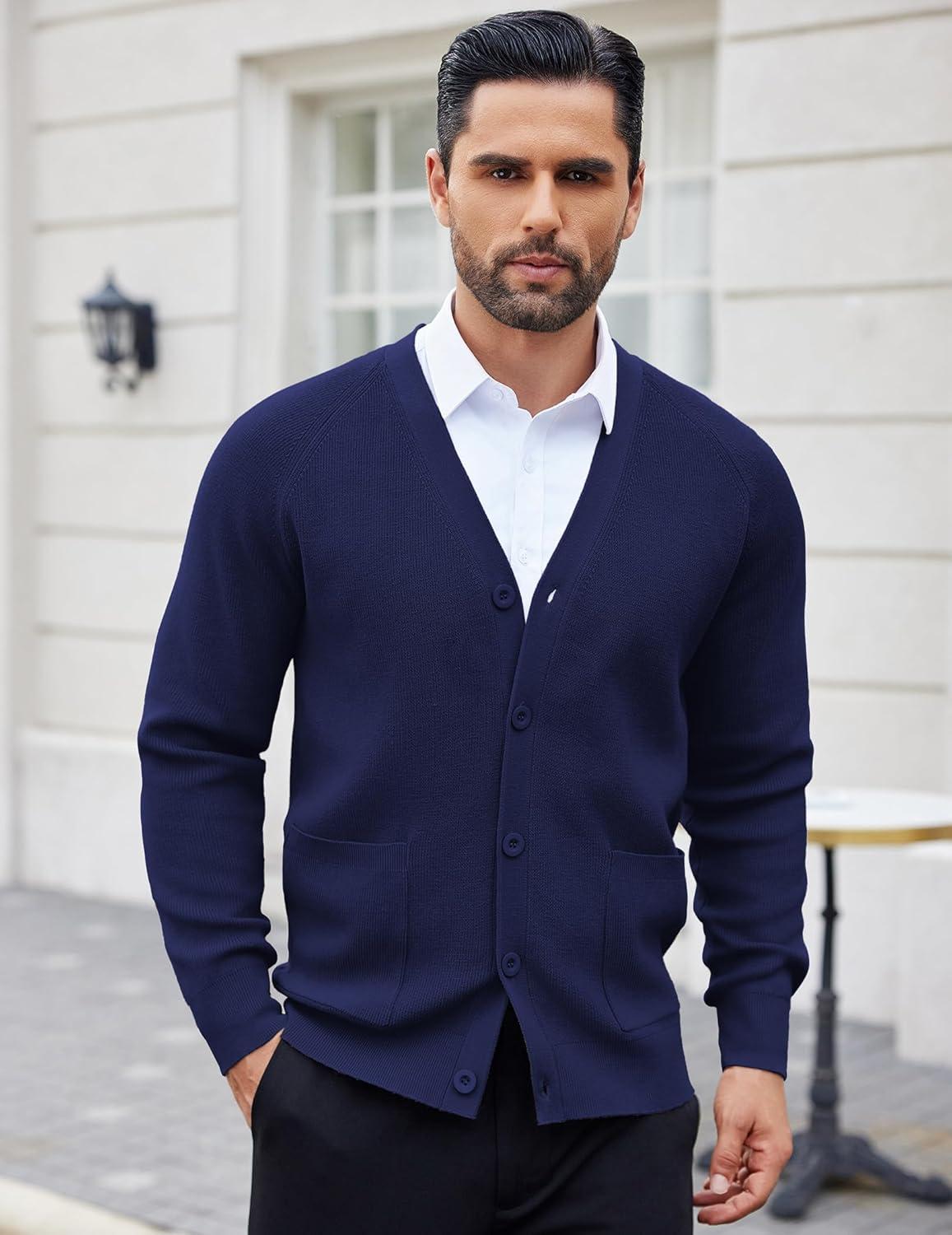 COOFANDY Men’s Cardigan Sweaters with Button Lightweight Casual V Neck Long Sleeve Pockets Knitted Sweater(Navy Blue)
