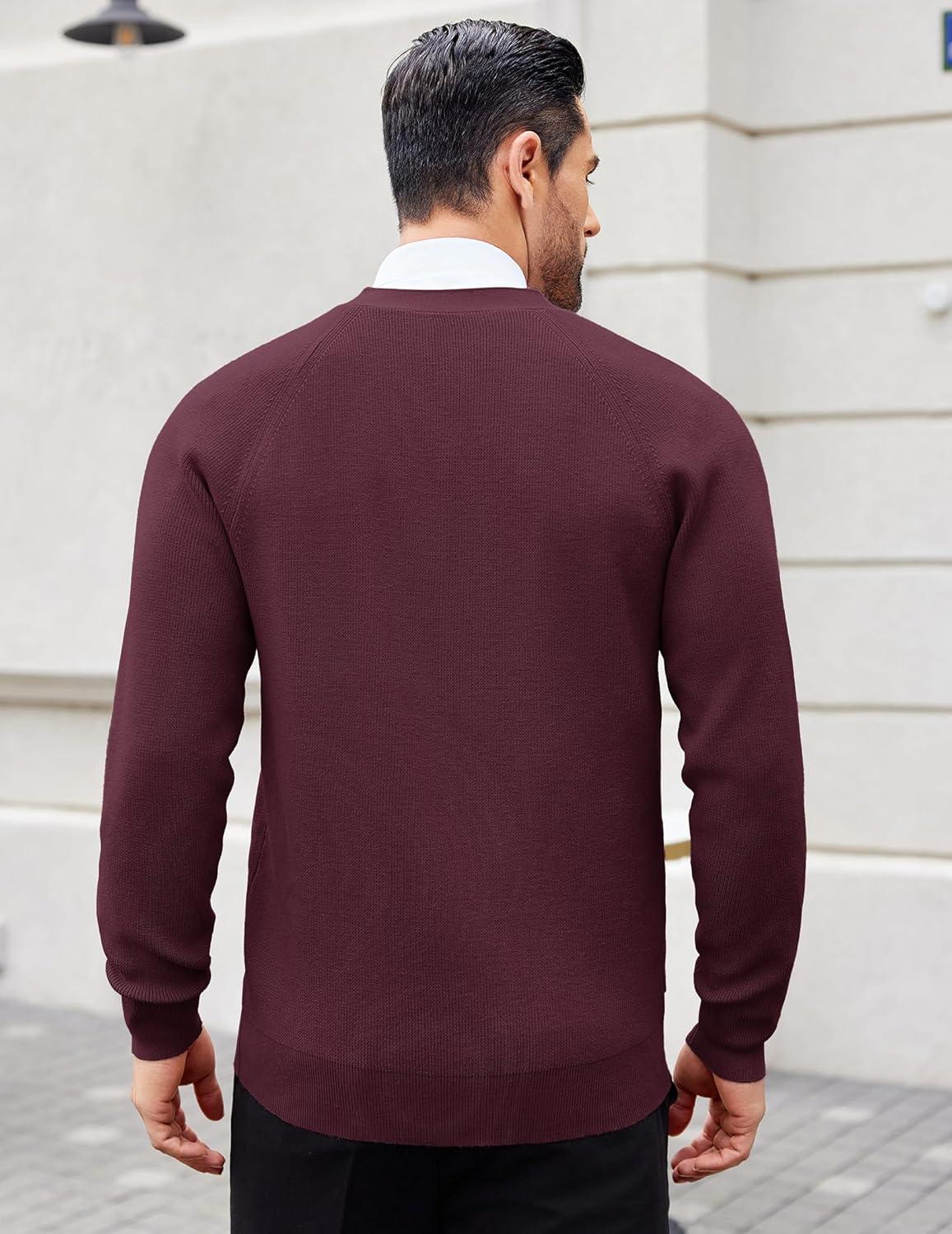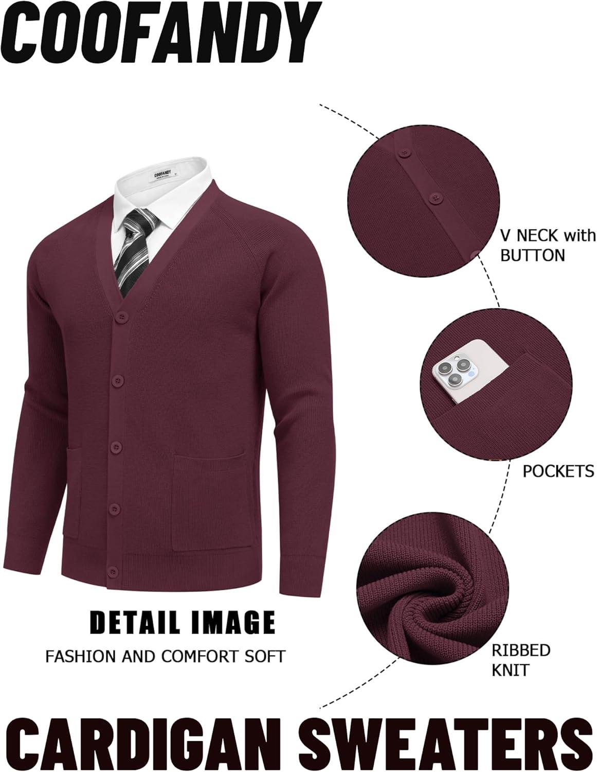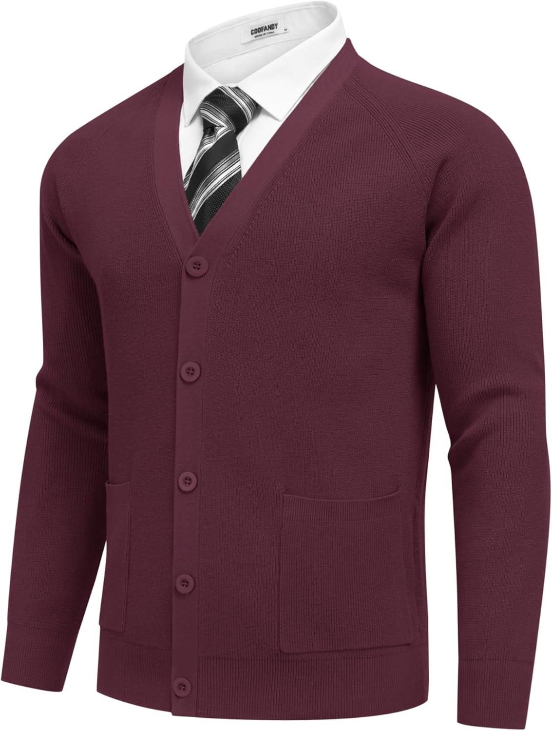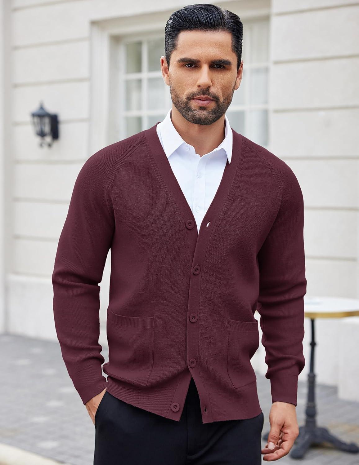 COOFANDY Men’s Cardigan Sweaters with Button Lightweight Casual V Neck Long Sleeve Pockets Knitted Sweater(Red)