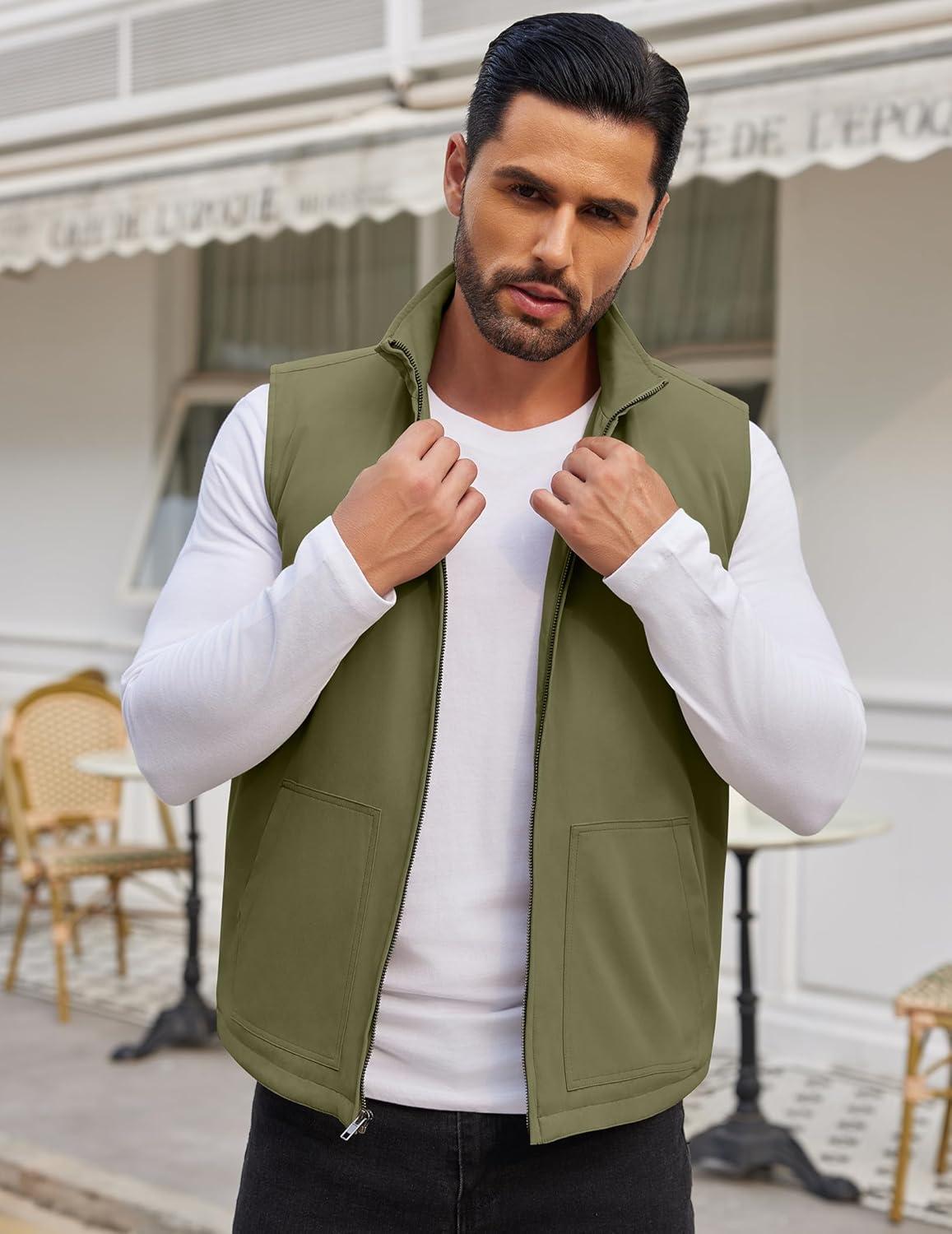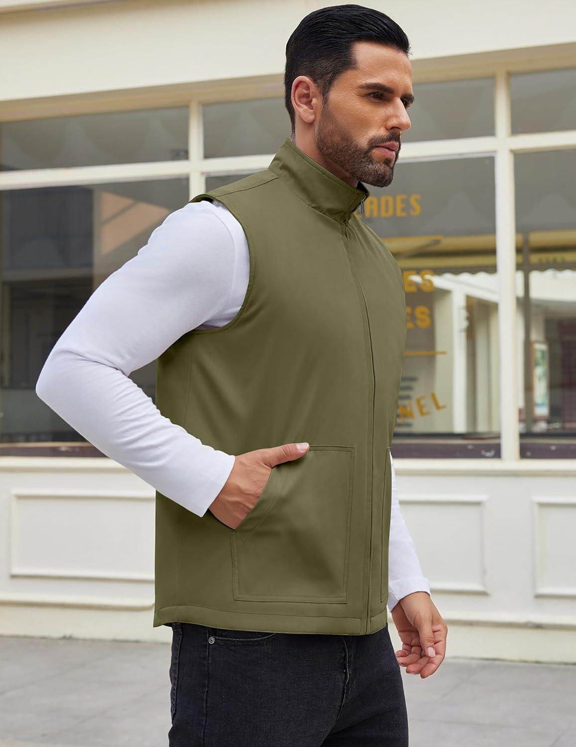 COOFANDY Men’s Casual Outerwear Vest Lightweight Zip Up Sleeveless Jacket Outdoor Work Hiking Travel Golf Vest with Pockets(Army Green)
