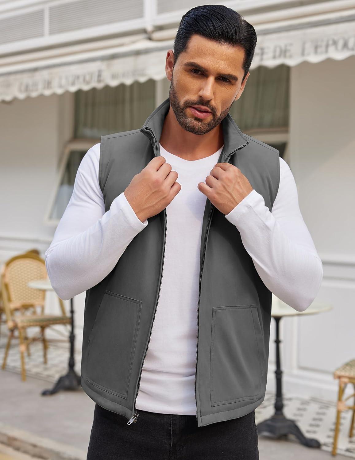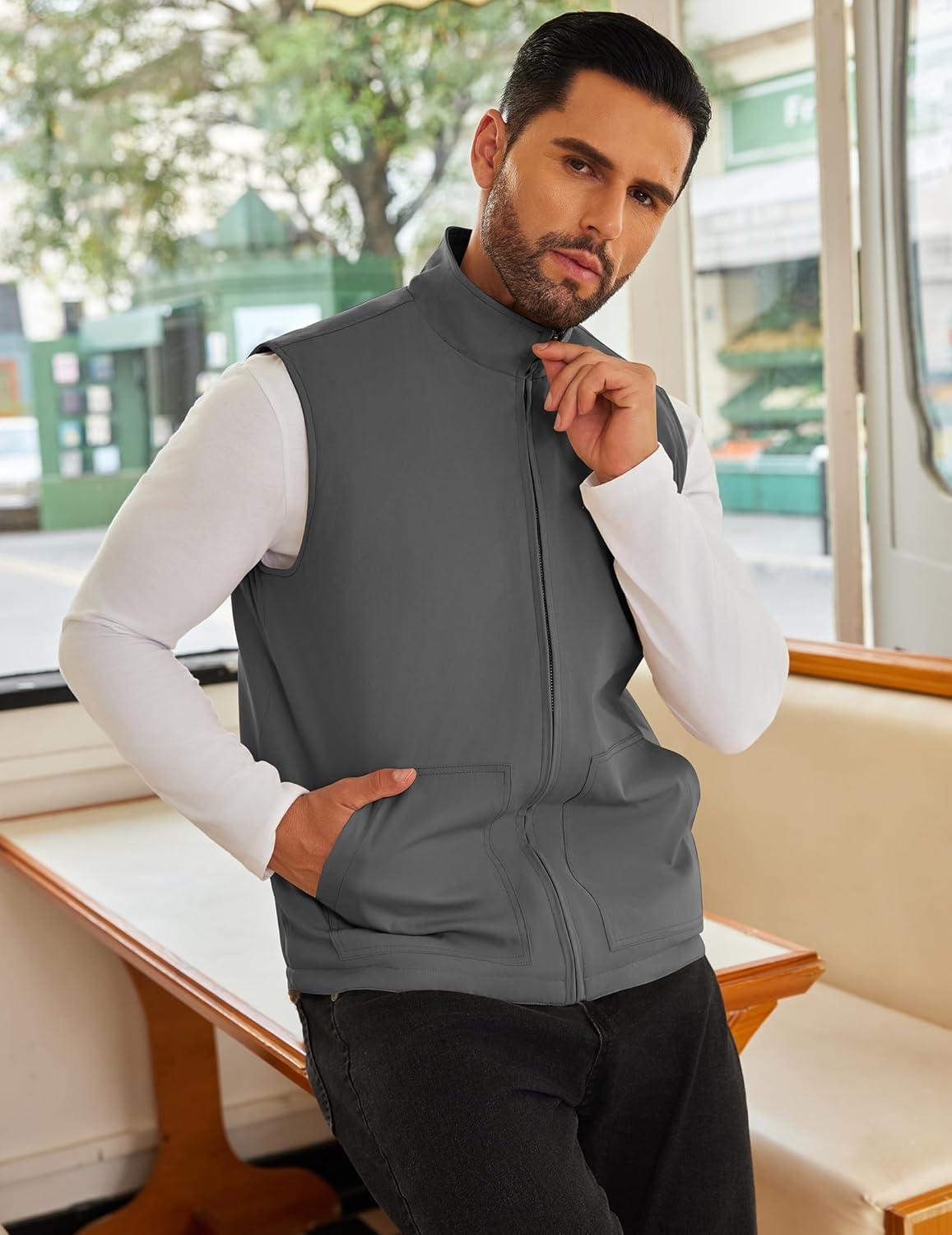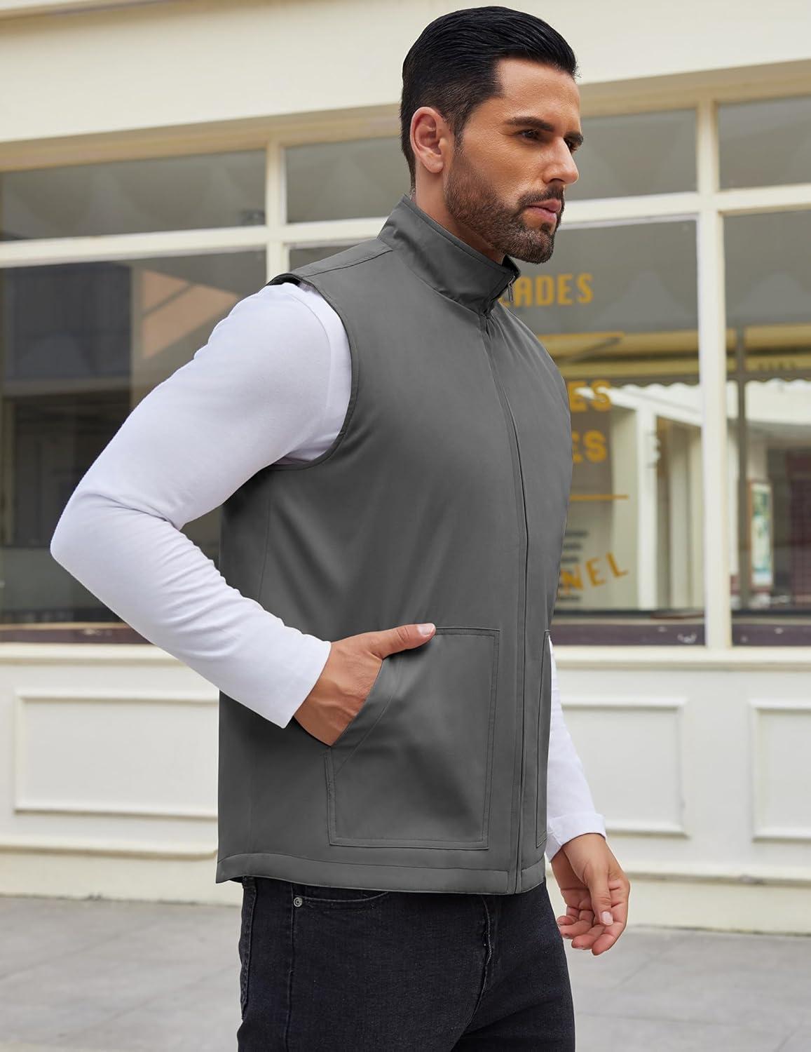 COOFANDY Men’s Casual Outerwear Vest Lightweight Zip Up Sleeveless Jacket Outdoor Work Hiking Travel Golf Vest with Pockets(Dark Grey)