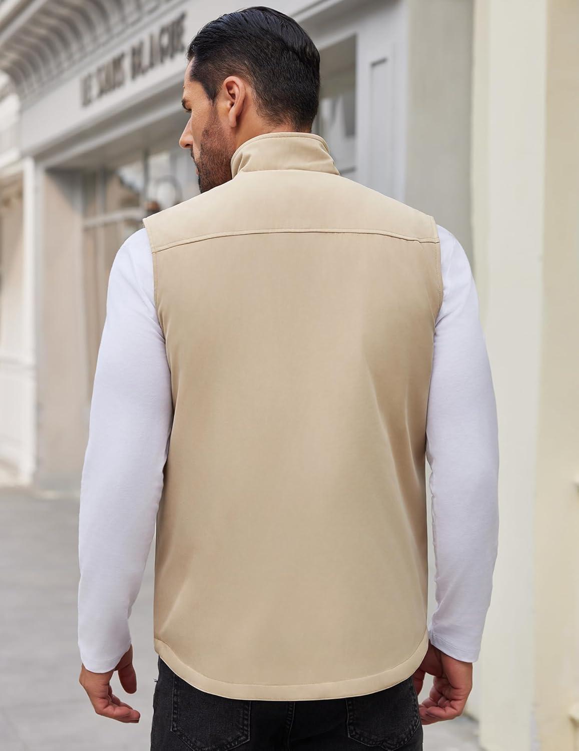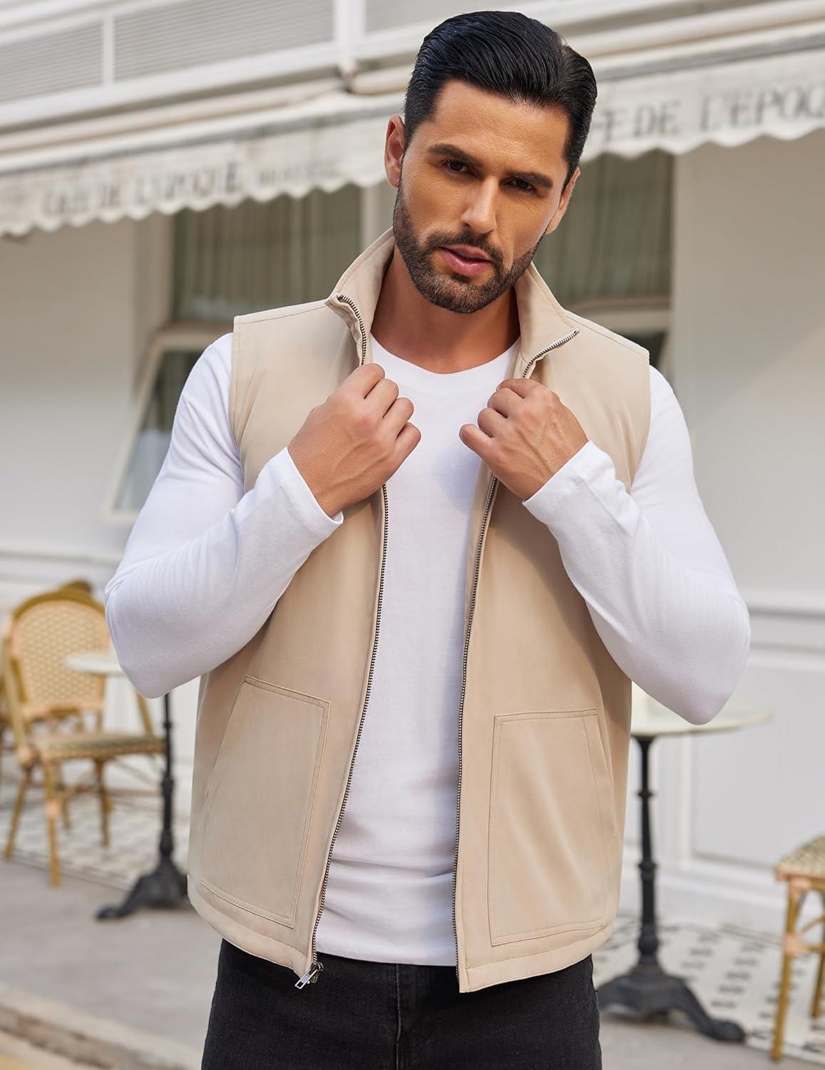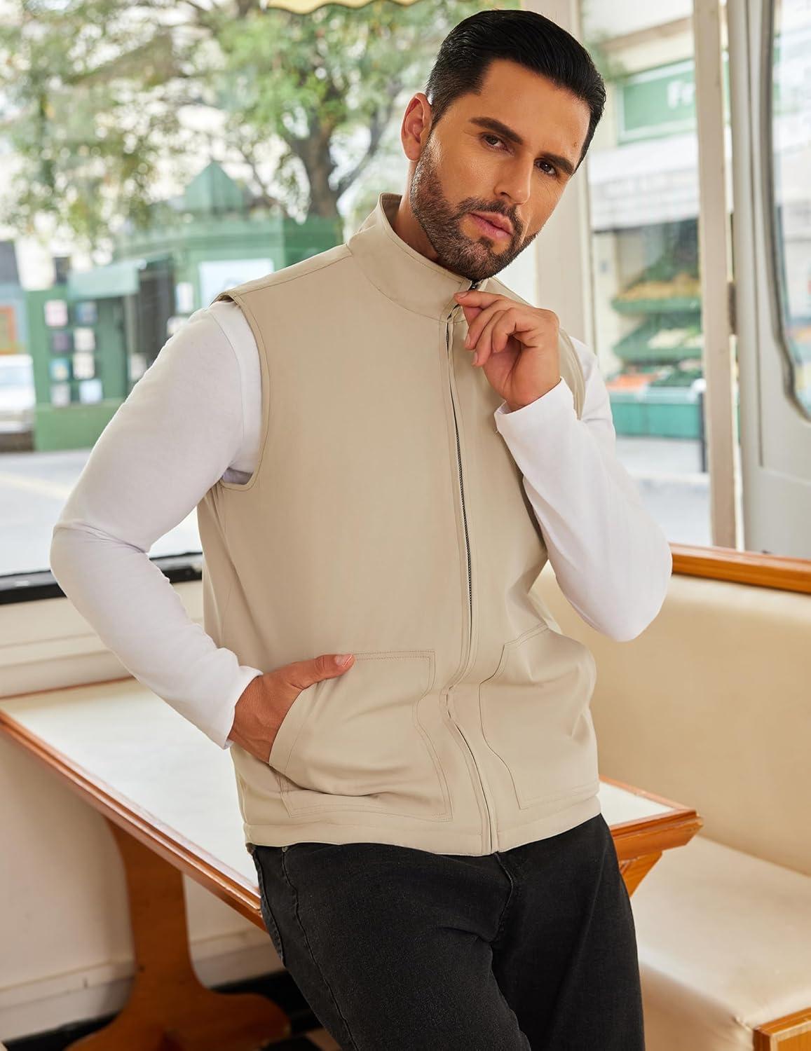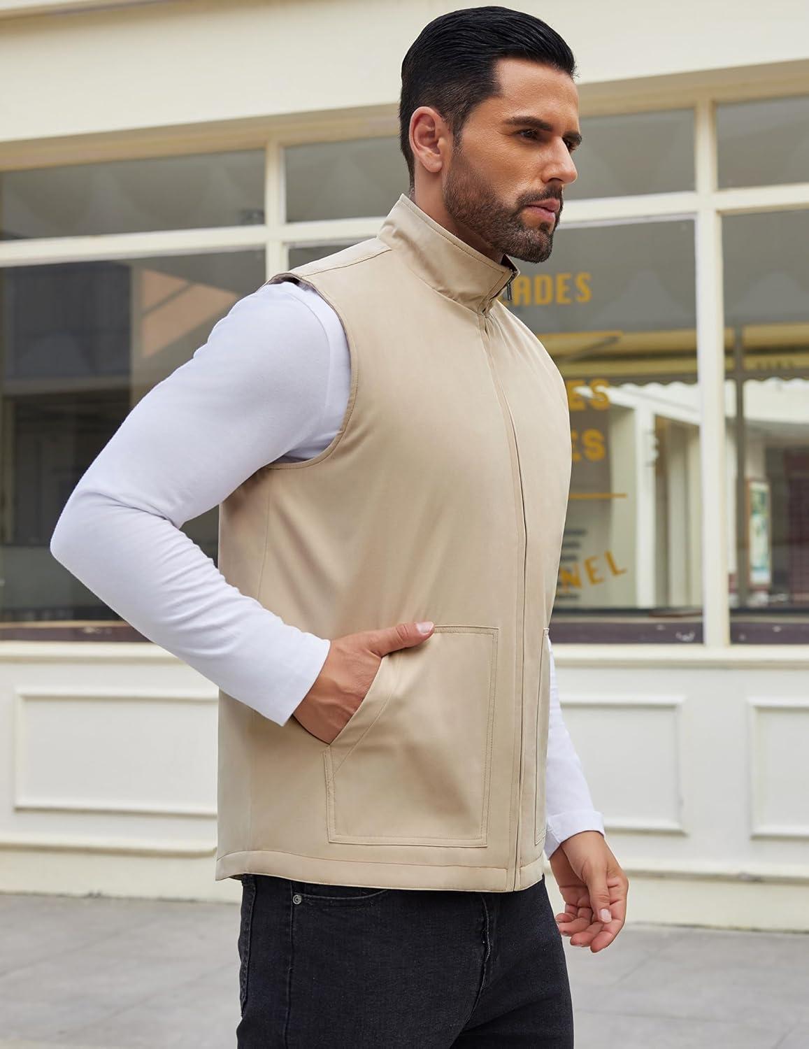 COOFANDY Men’s Casual Outerwear Vest Lightweight Zip Up Sleeveless Jacket Outdoor Work Hiking Travel Golf Vest with Pockets(Khaki)